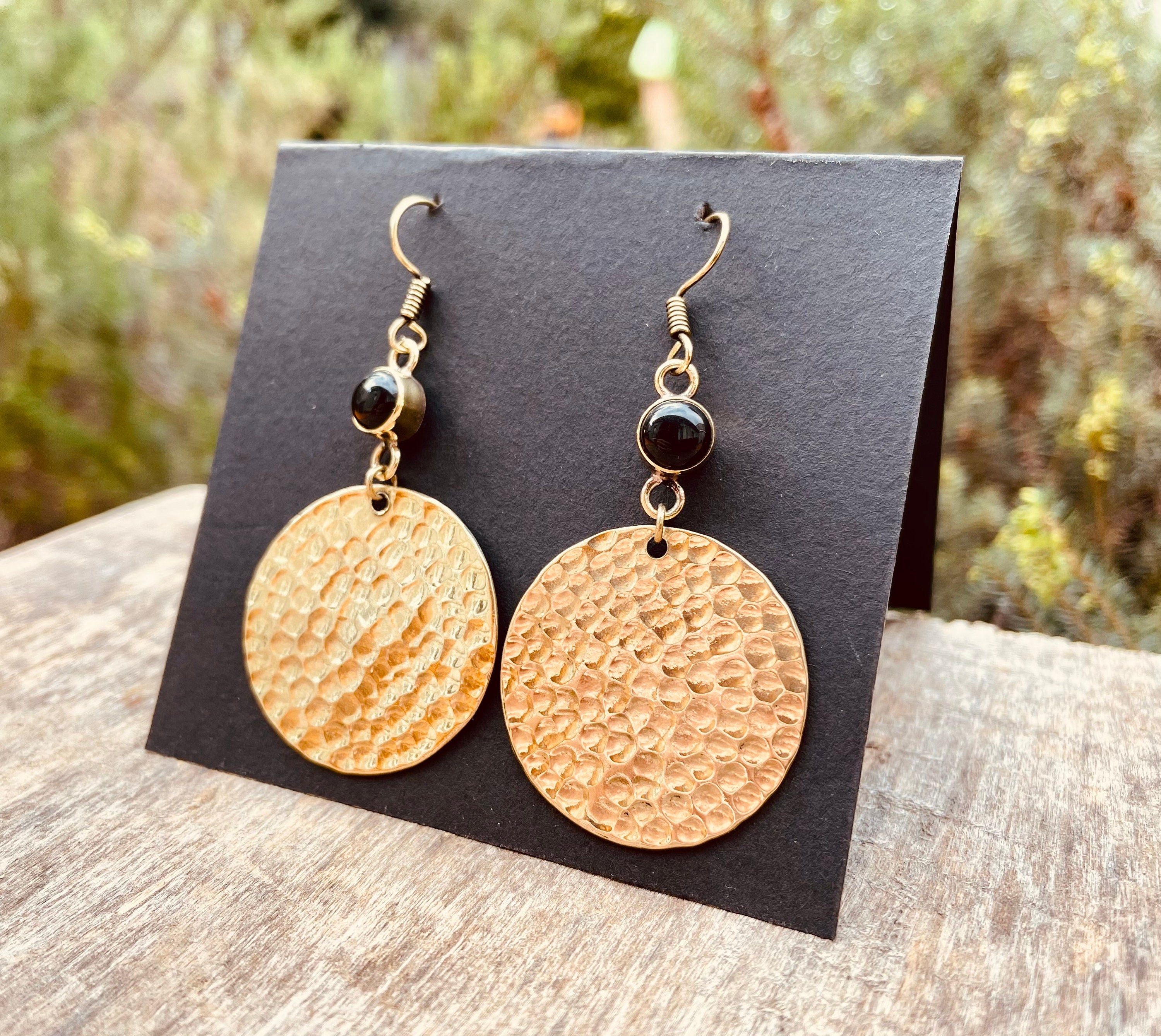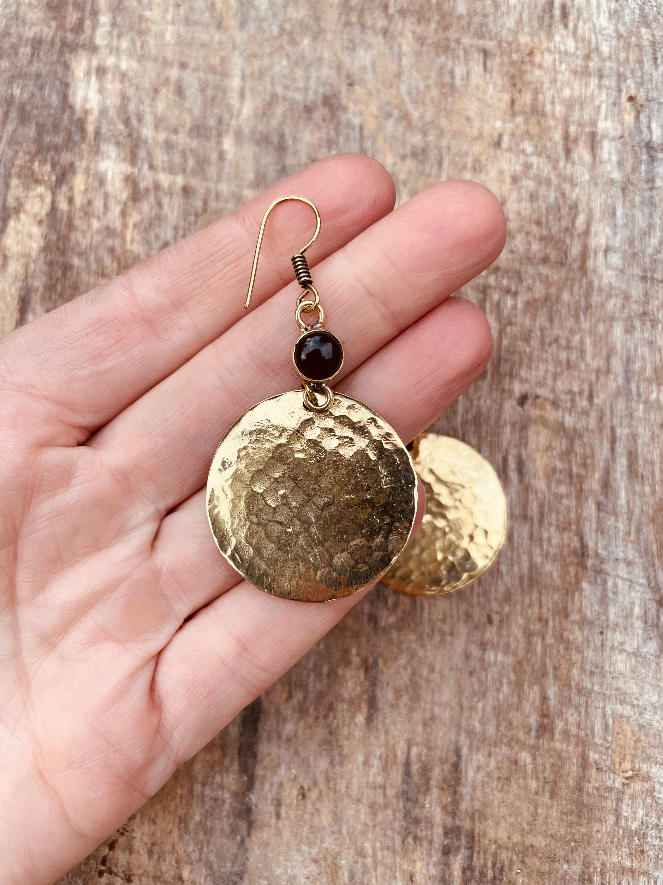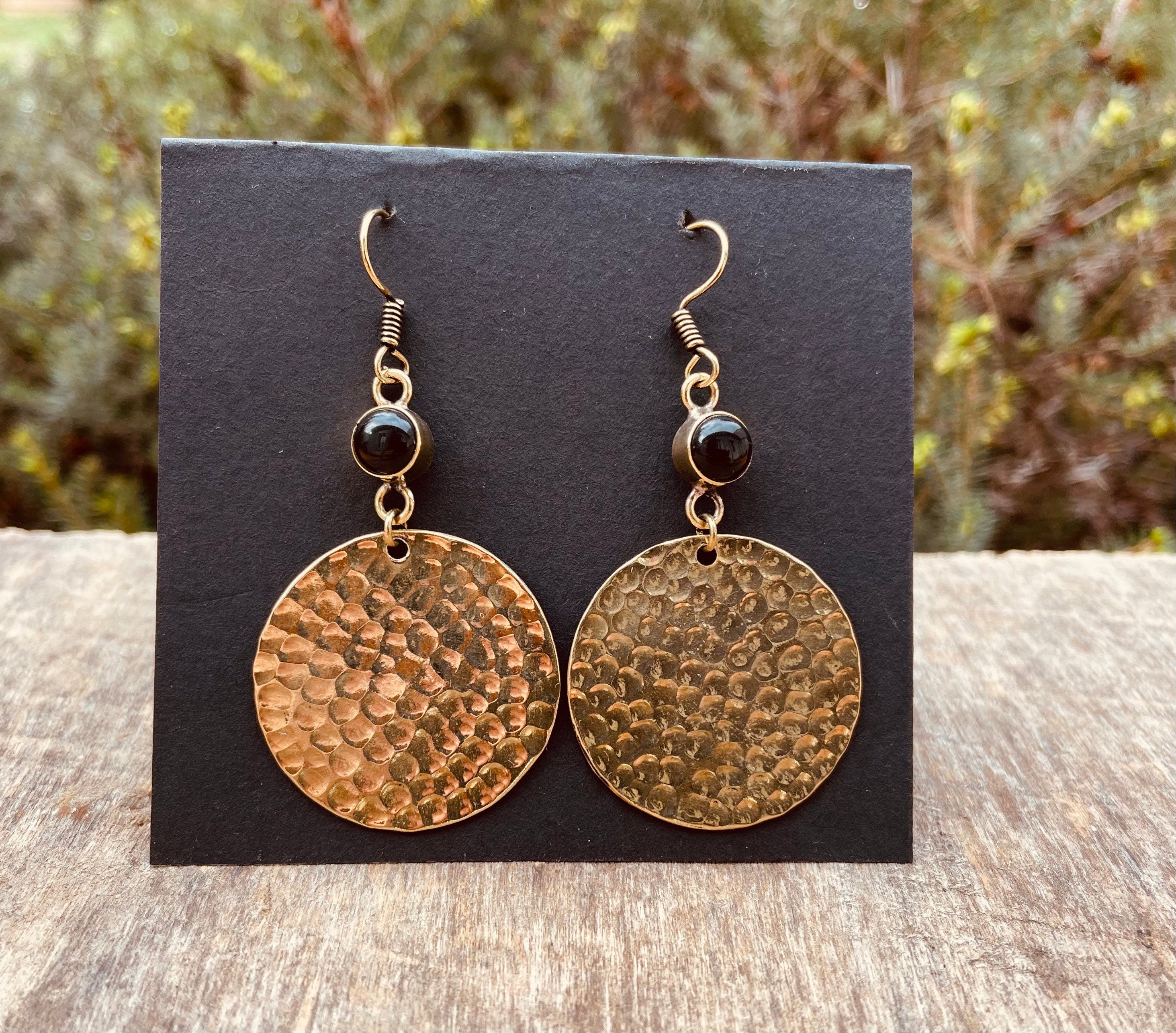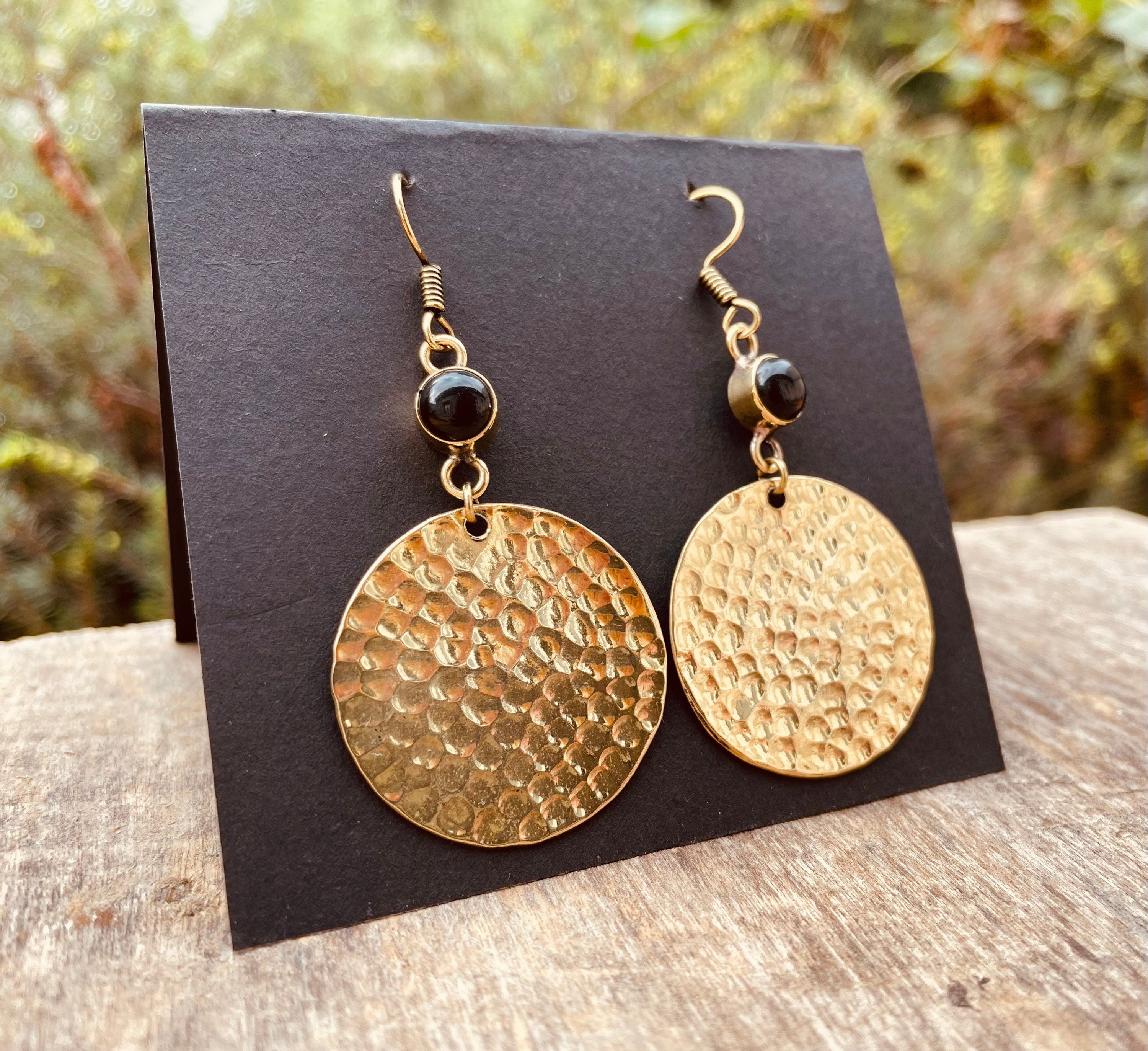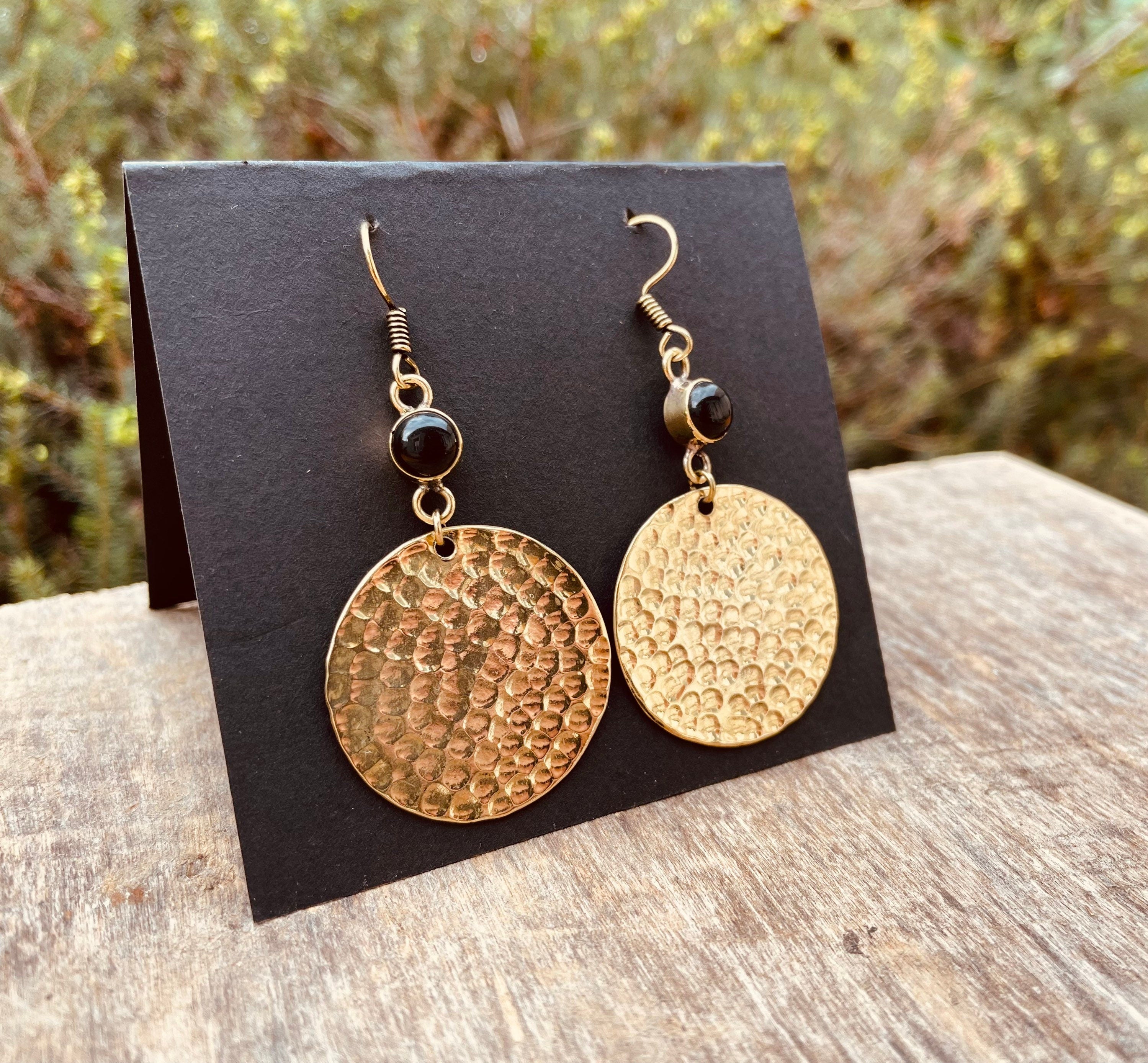 Black Onyx Modern Hammered Brass Dangle earrings Ethnic