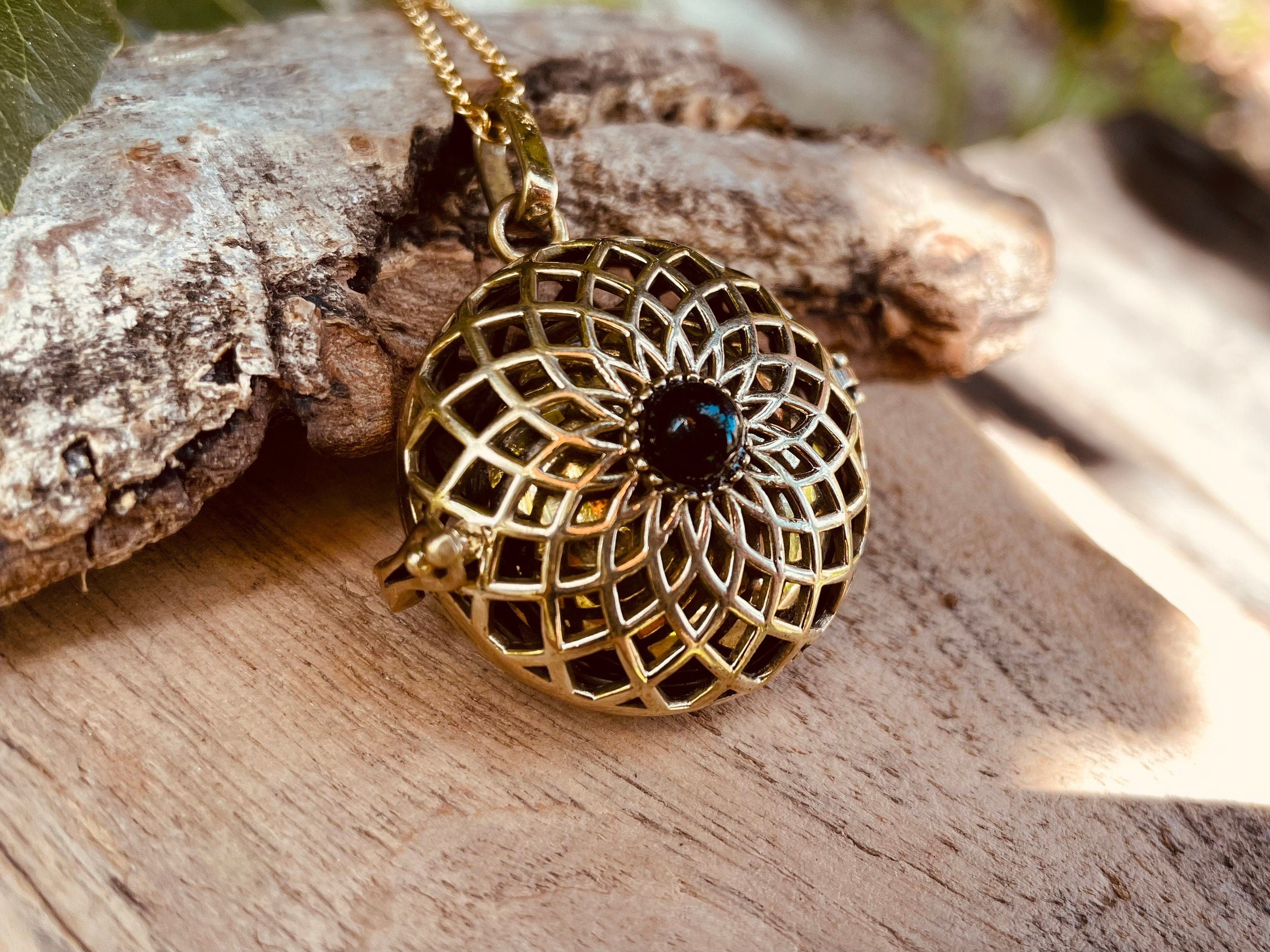 A Harmony Ball is essentially a chime pendant worn primarily as a pregnancy necklace, a lovely piece of jewelry originating from Bali in Indonesia. As the name implies a Harmony Ball can bring a sense of calm and harmony to the wearer as the pendant emits a soft but just audible chime sound with movement, creating a relaxing effect in a similar way that the sound of a rippling brook or small waves gently lapping the shore is relaxing. A harmony Ball is also known in Mexico as a Bola (Spanish for Ball) or Harmony Necklace or Pregnancy Necklace.