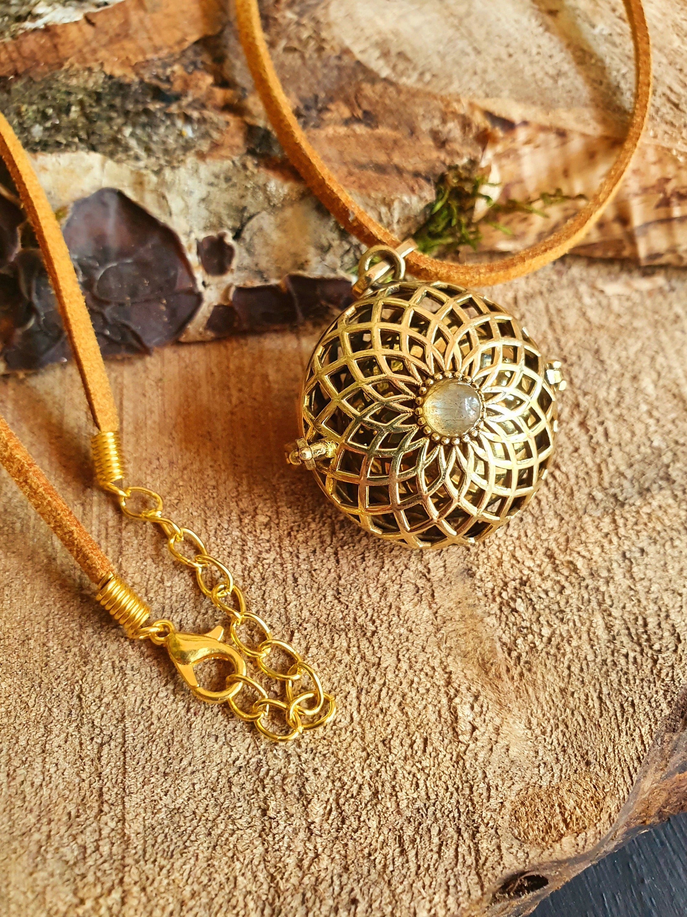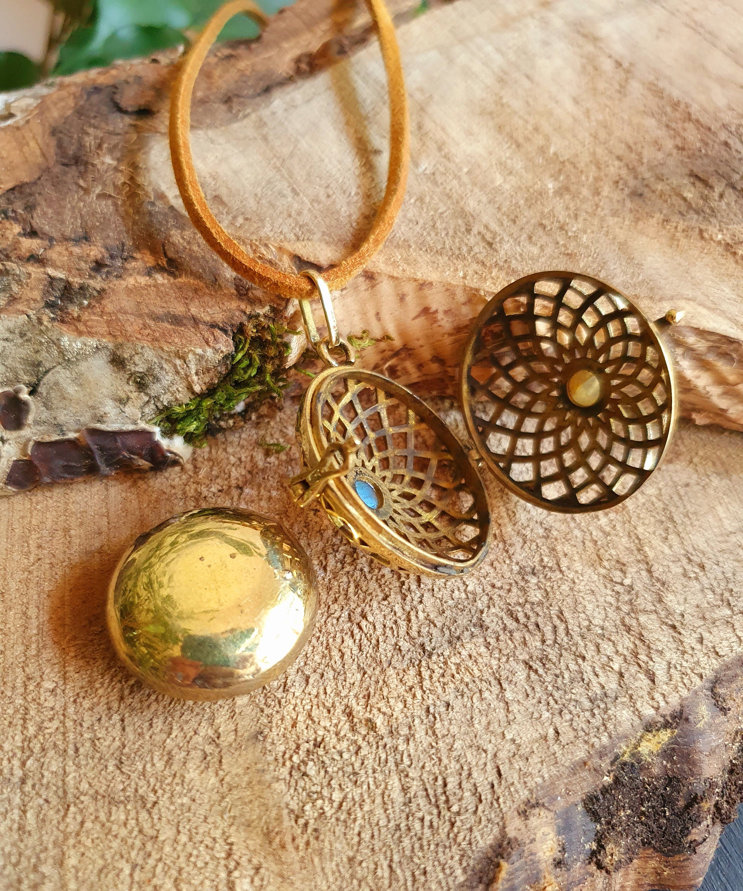 A Harmony Ball is essentially a chime pendant worn primarily as a pregnancy necklace, a lovely piece of jewelry originating from Bali in Indonesia. As the name implies a Harmony Ball can bring a sense of calm and harmony to the wearer as the pendant emits a soft but just audible chime sound with movement, creating a relaxing effect in a similar way that the sound of a rippling brook or small waves gently lapping the shore is relaxing. A harmony Ball is also known in Mexico as a Bola (Spanish for Ball) or Harmony Necklace or Pregnancy Necklace.