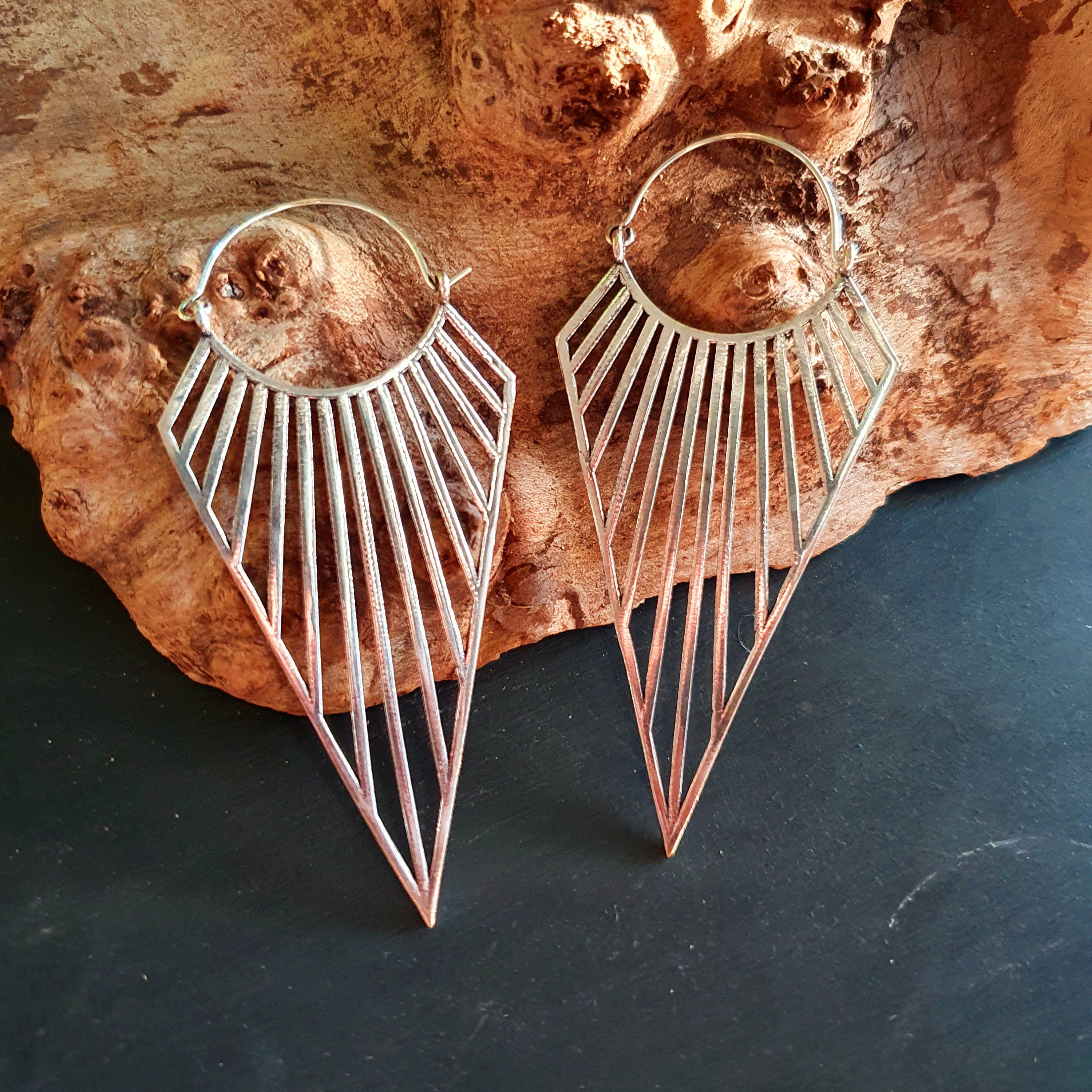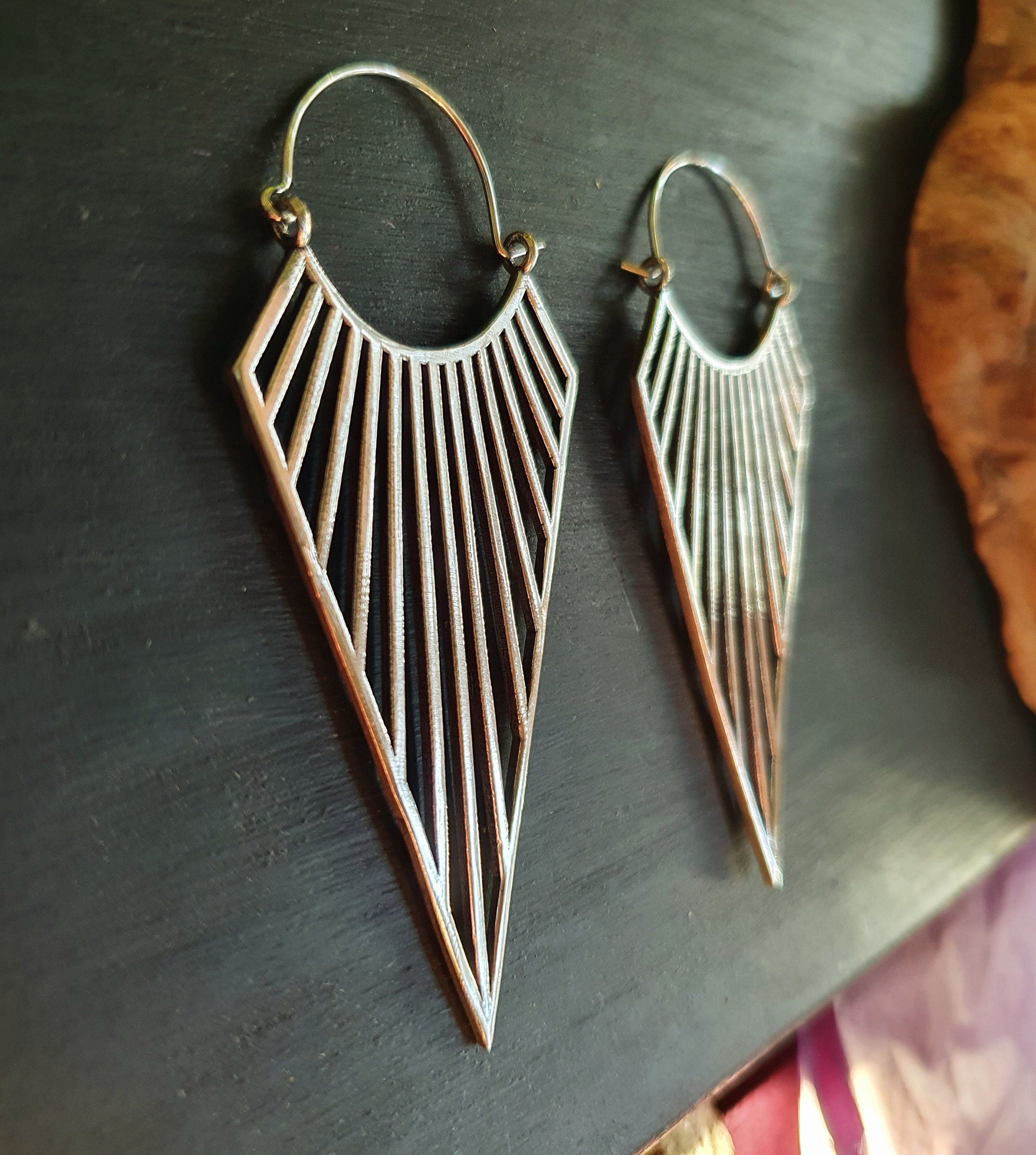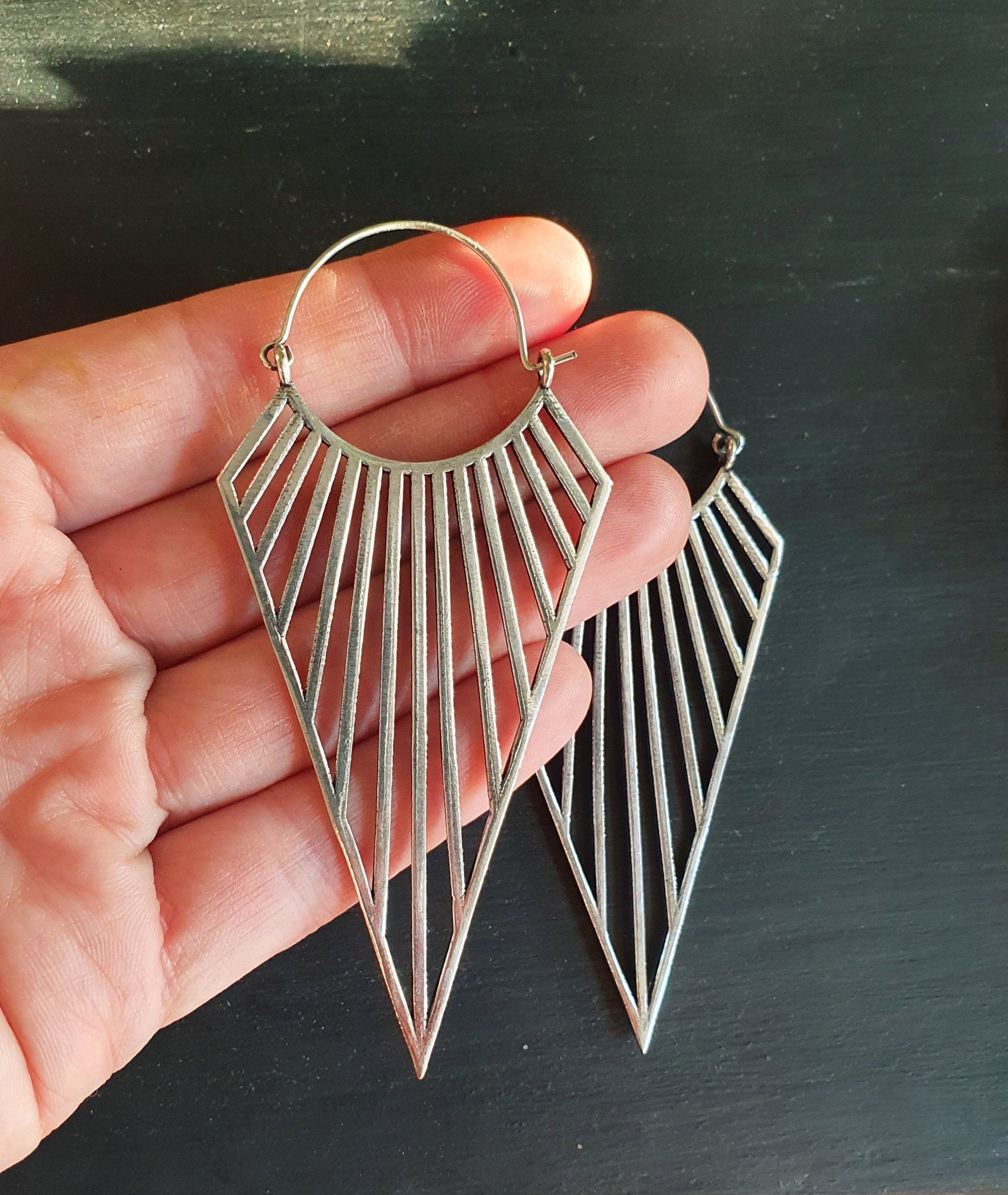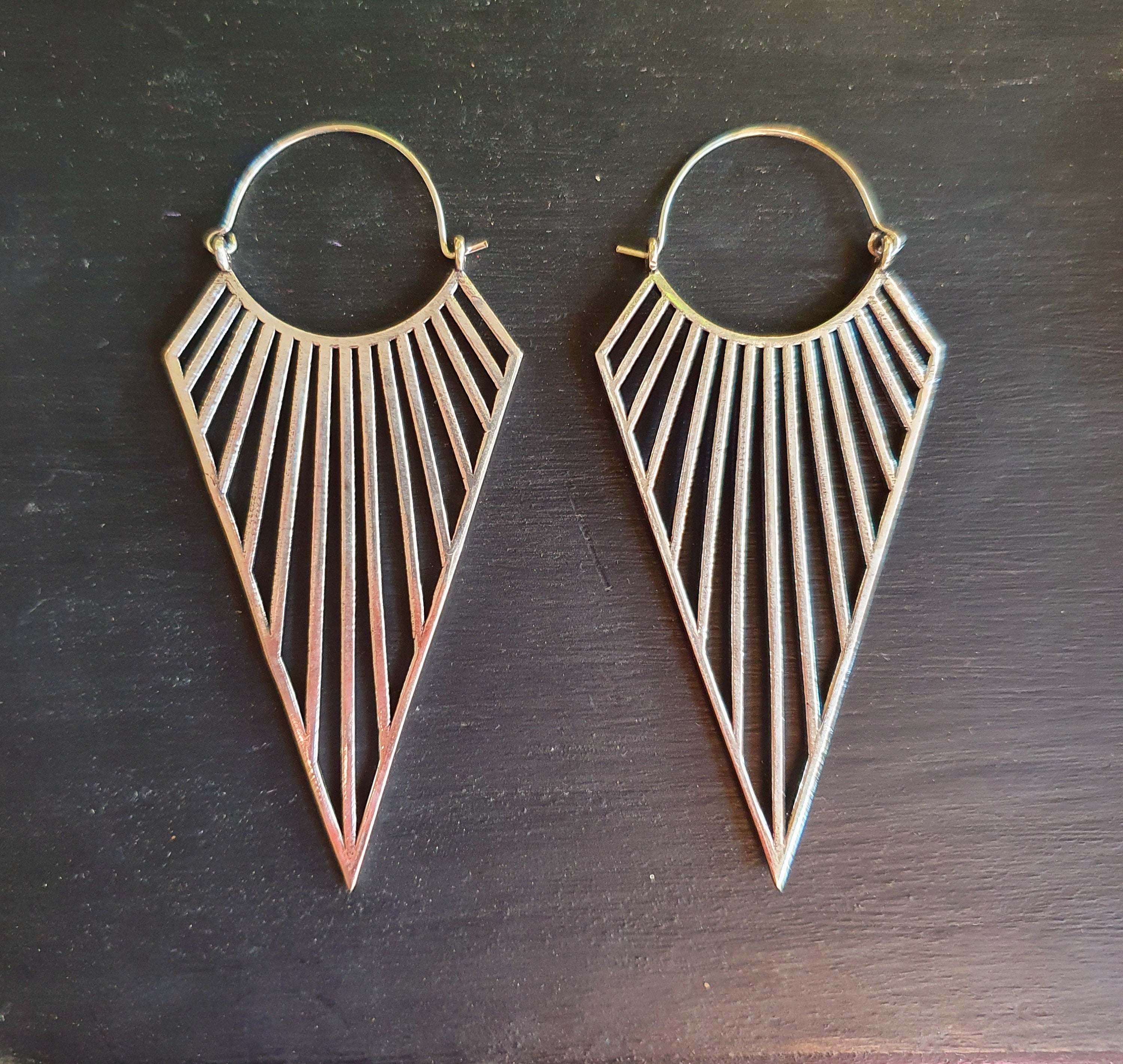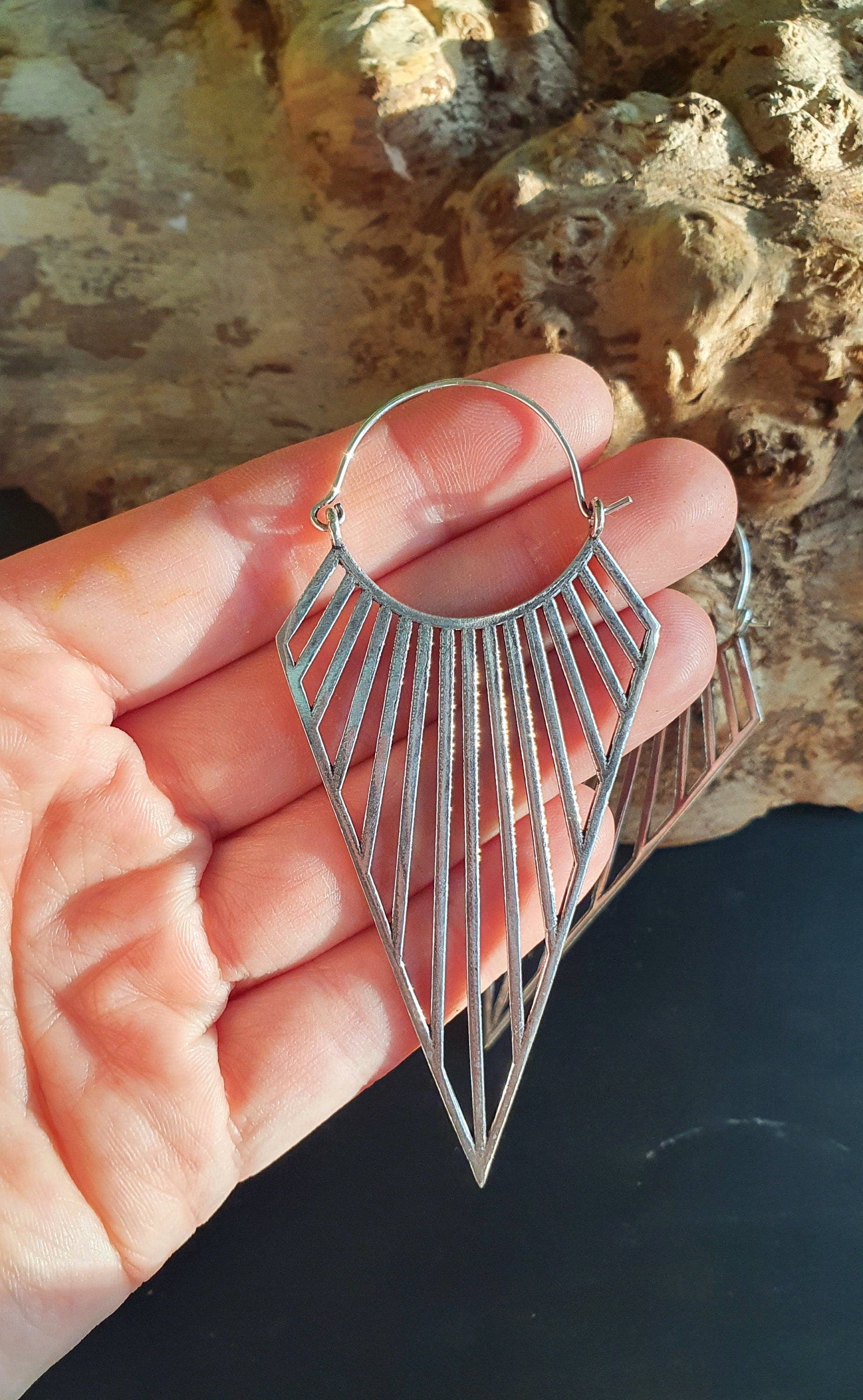 Large Triangle Drop Boho Silver Earrings