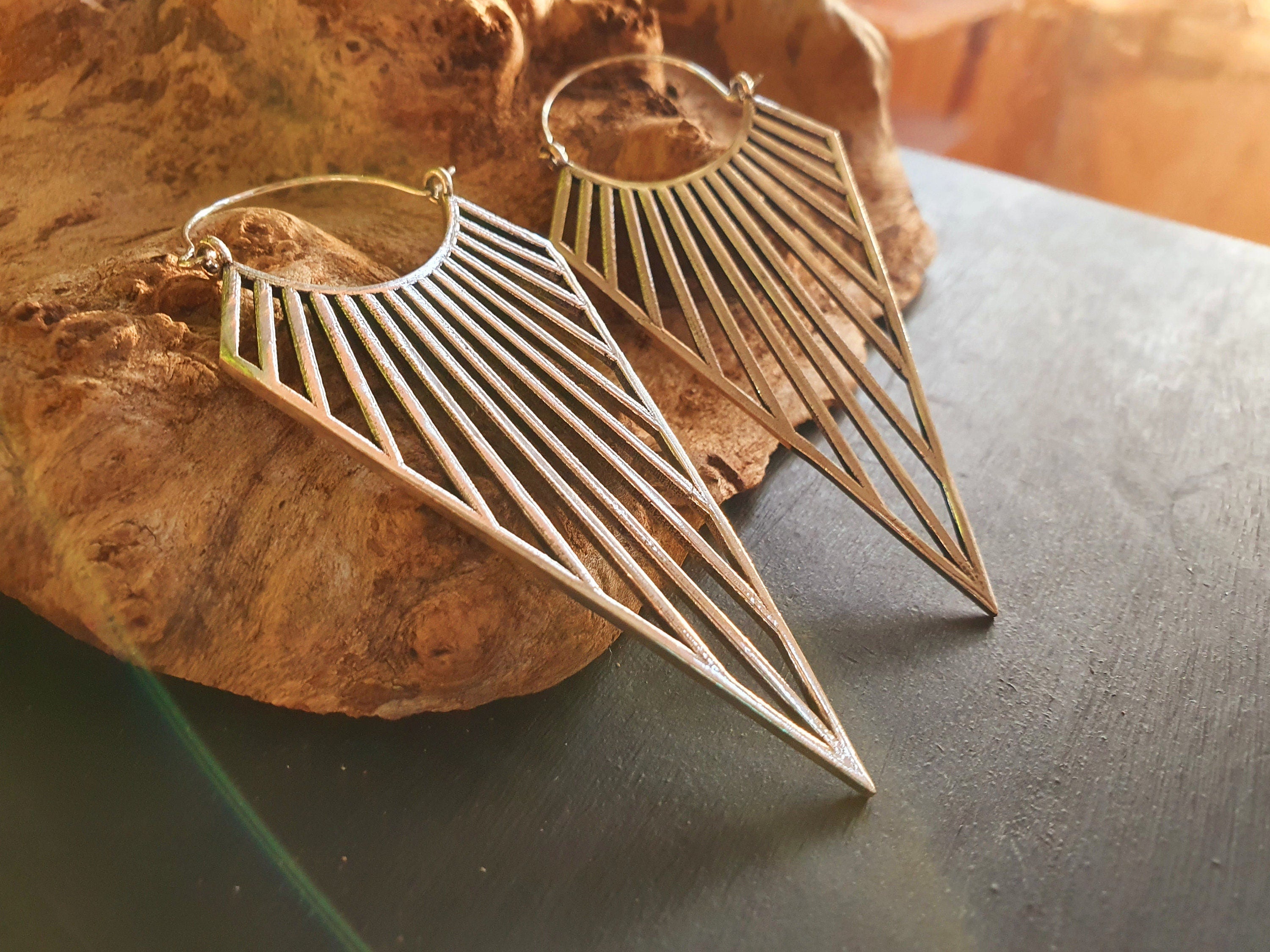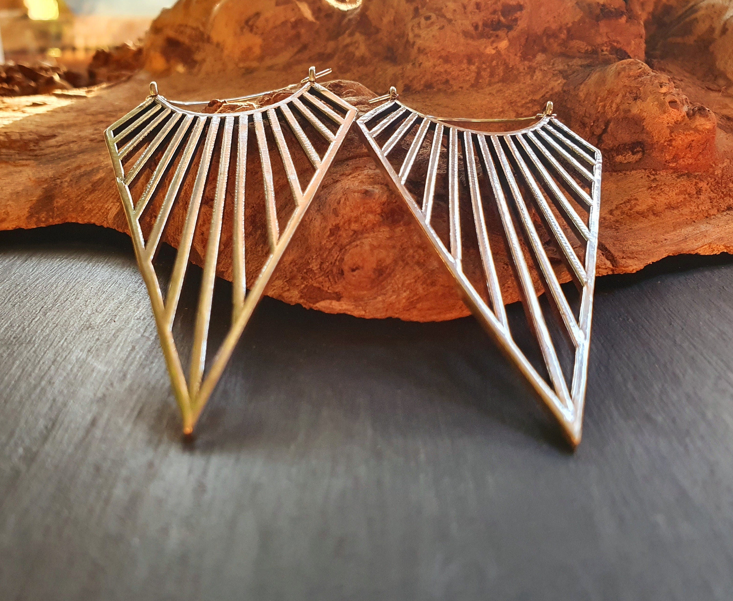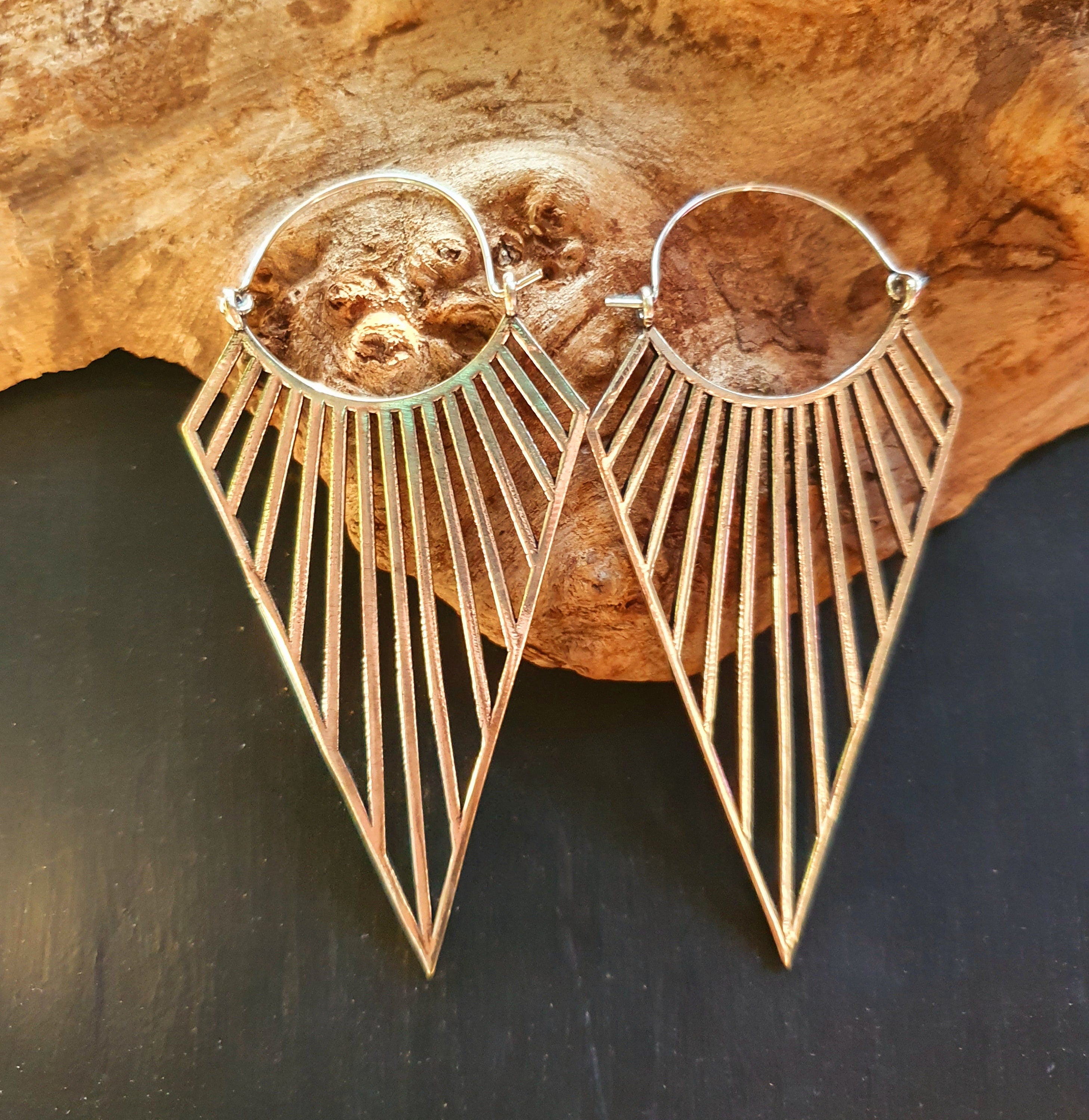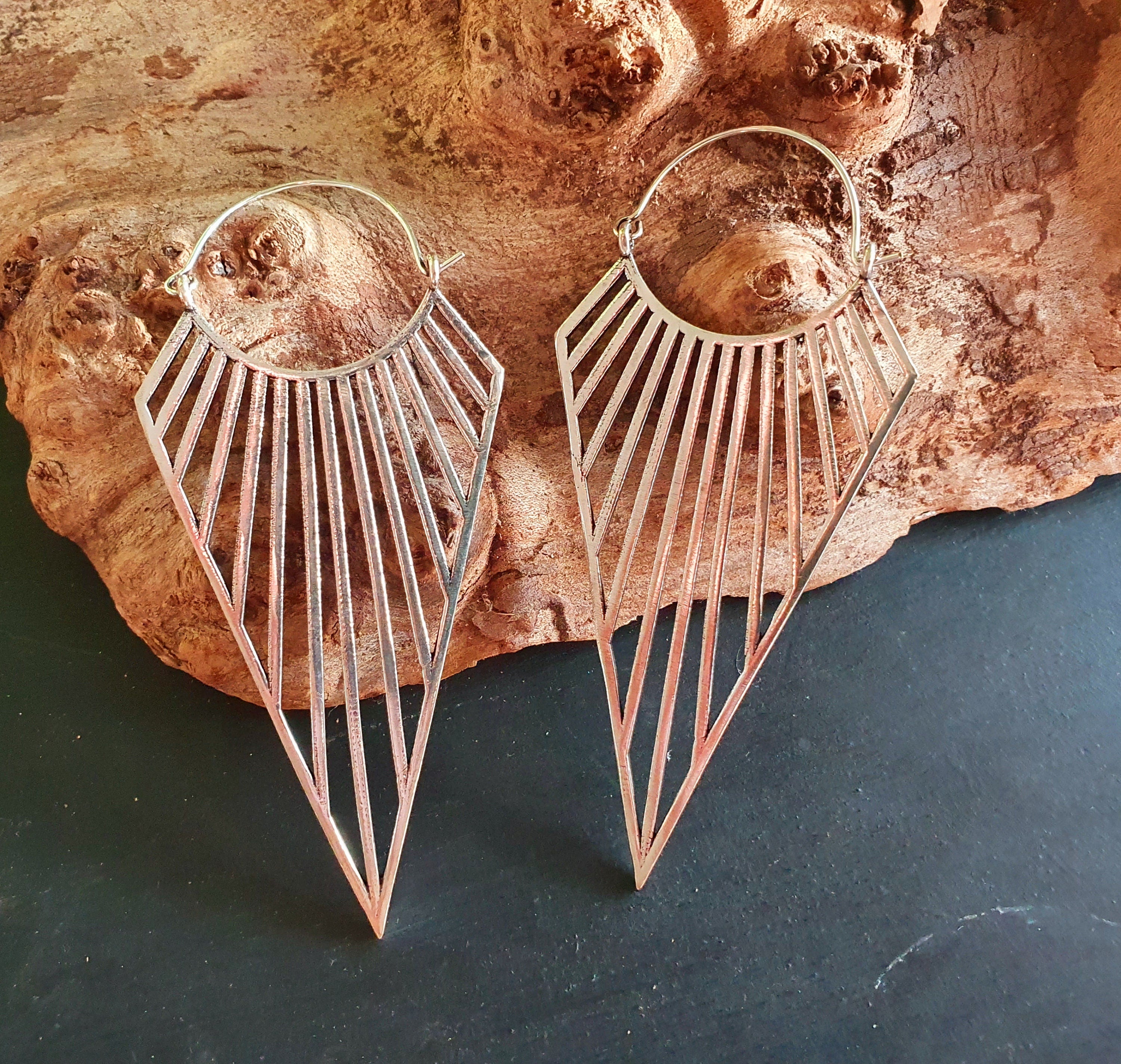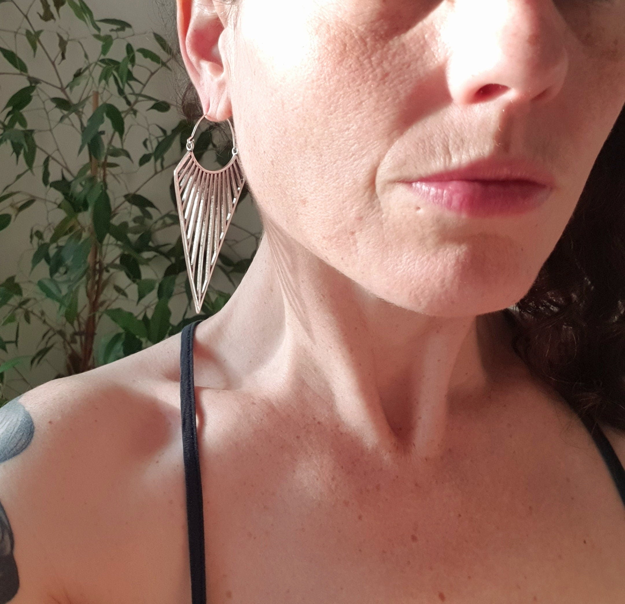 Large Triangle Drop Boho Silver Earrings