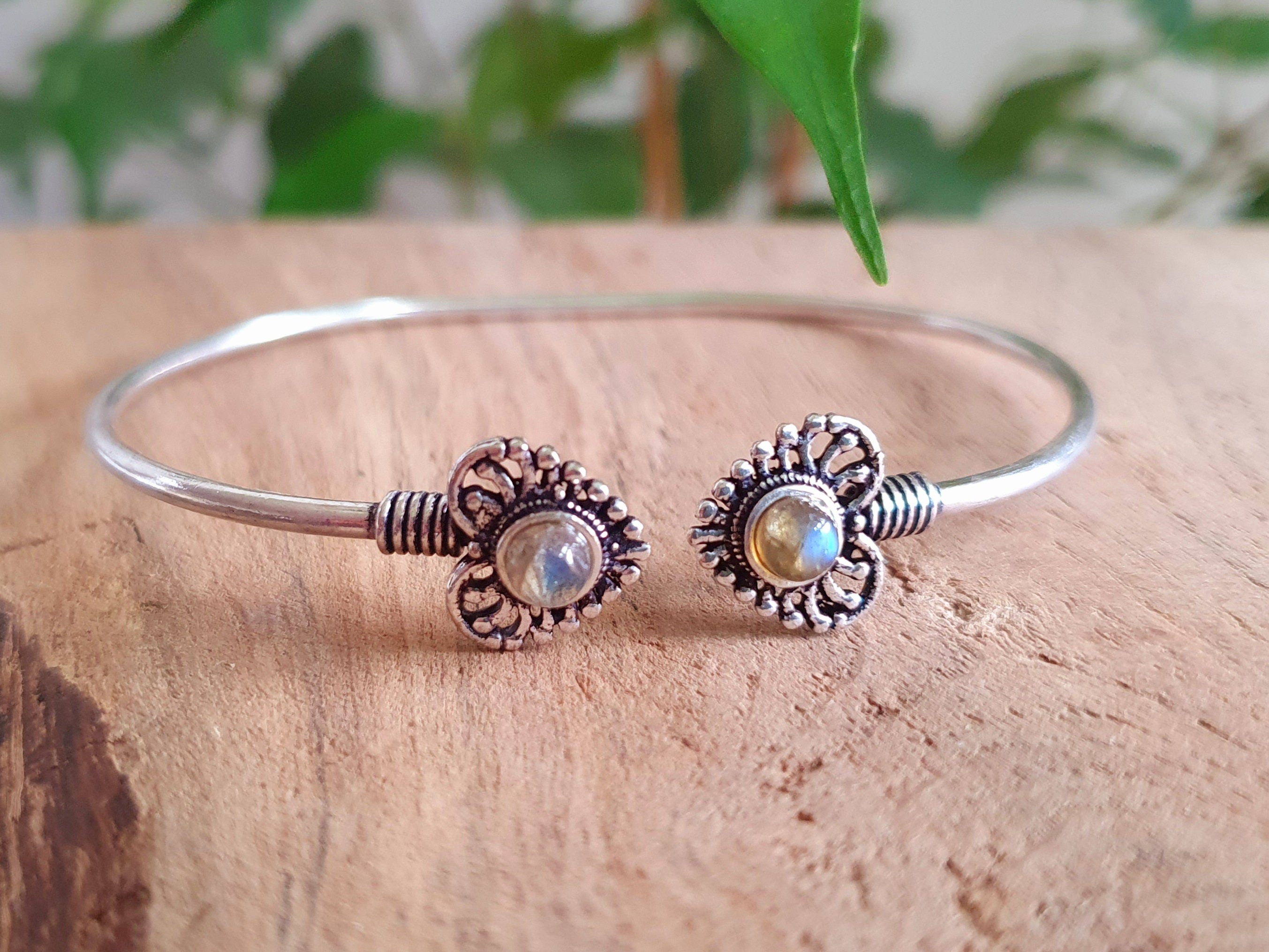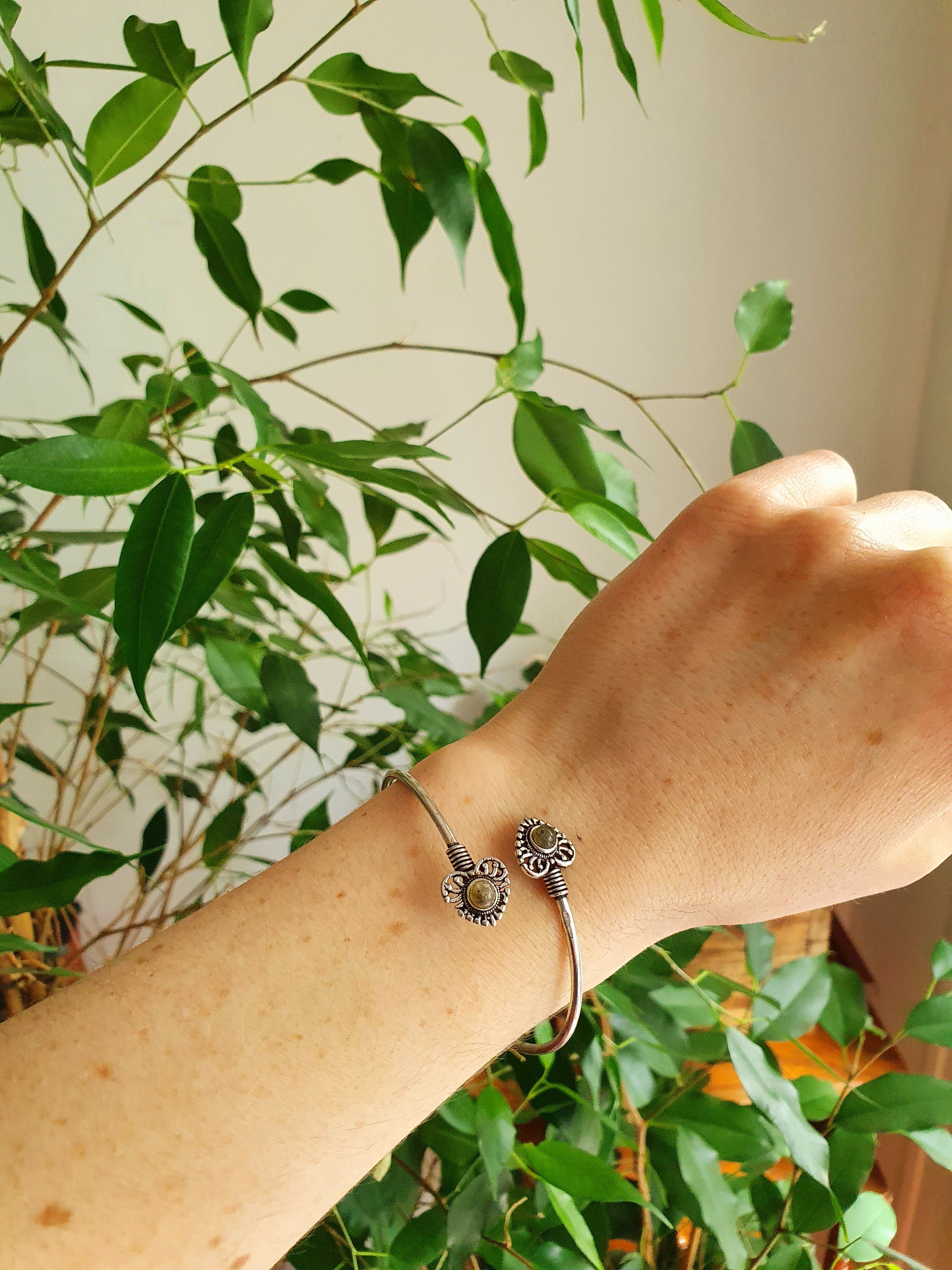 Pretty silver heart bracelet with double labradorite.