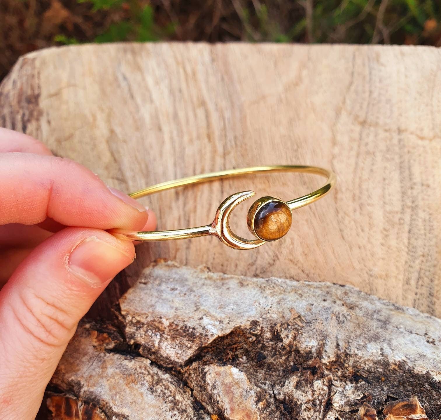 Tiger Eye Bracelet Moon Brass Bangle