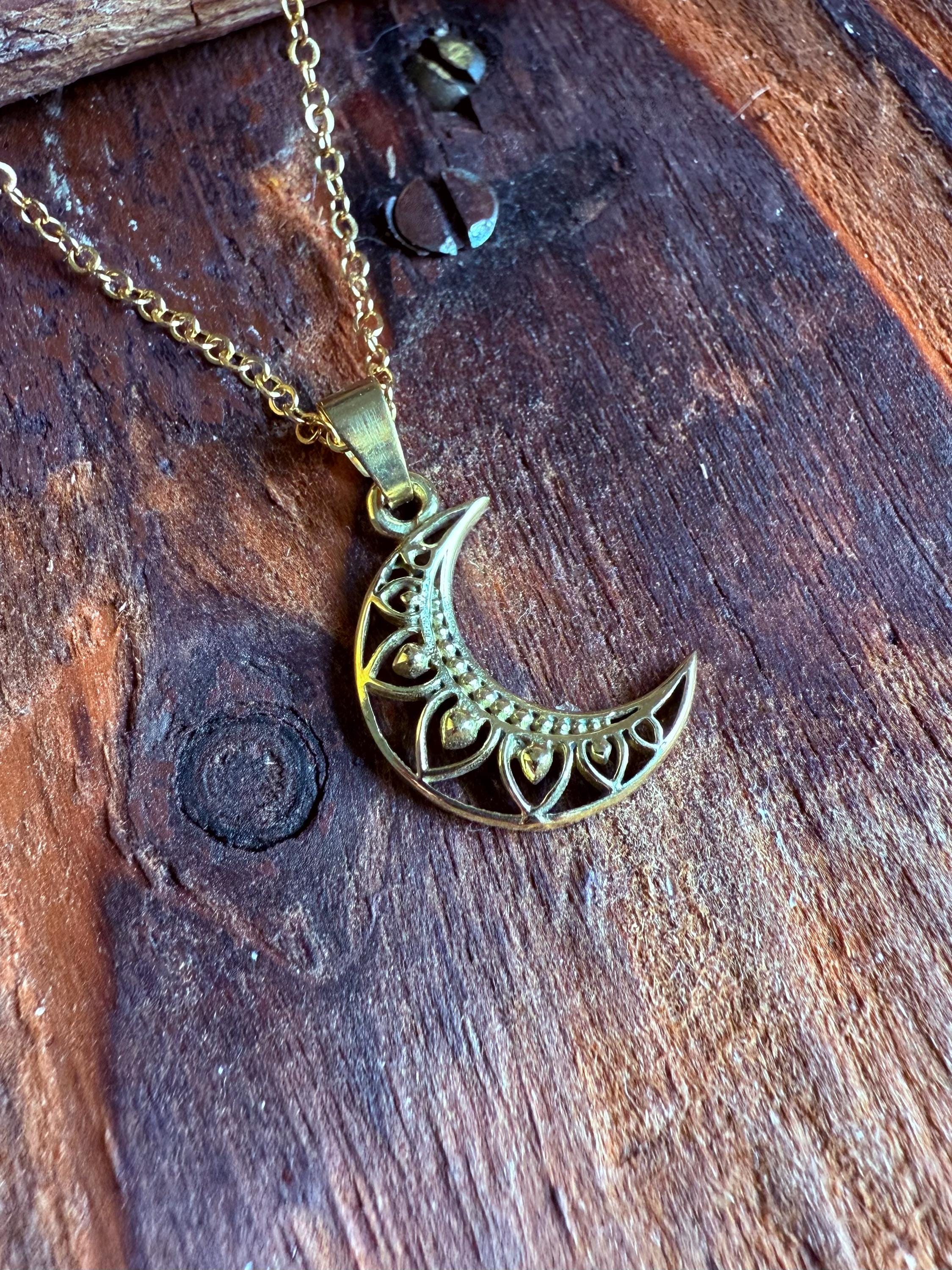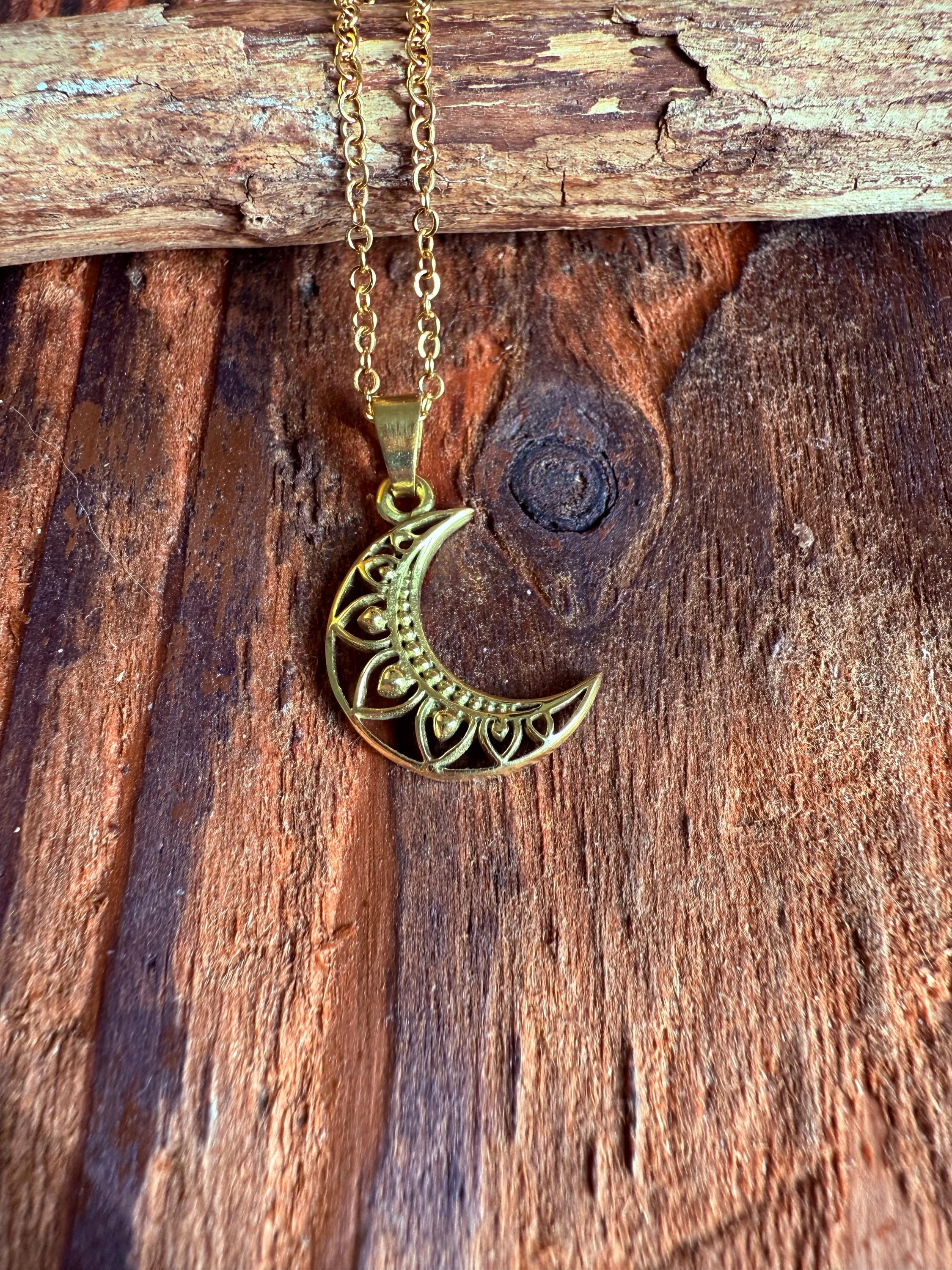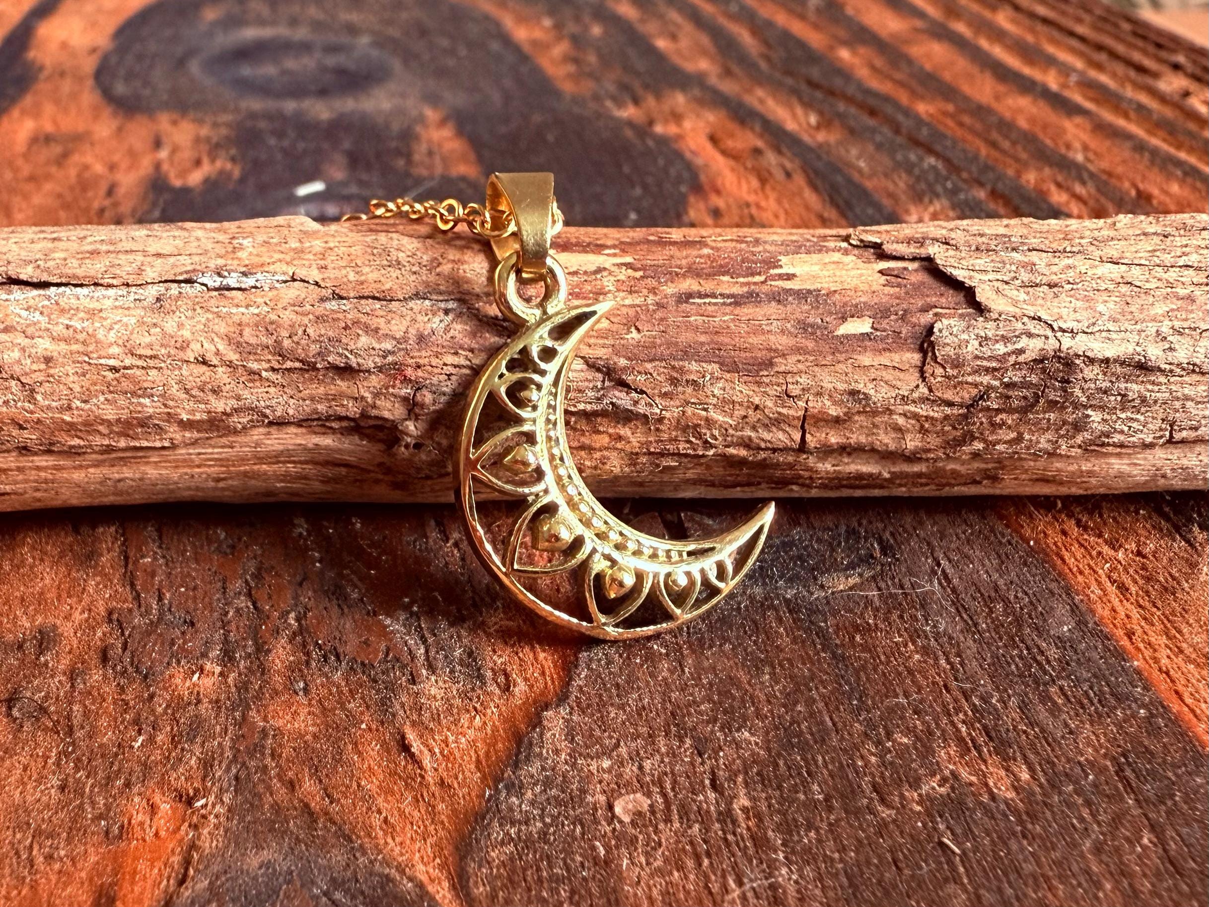 Whether you're embracing a bohemian lifestyle, seeking an ethnic or rustic accessory, or simply love moon-inspired jewellery, this necklace is a versatile addition to your collection. The luminous gold finish captures light beautifully, highlighting the intricate filigree work of the crescent moon pendant.