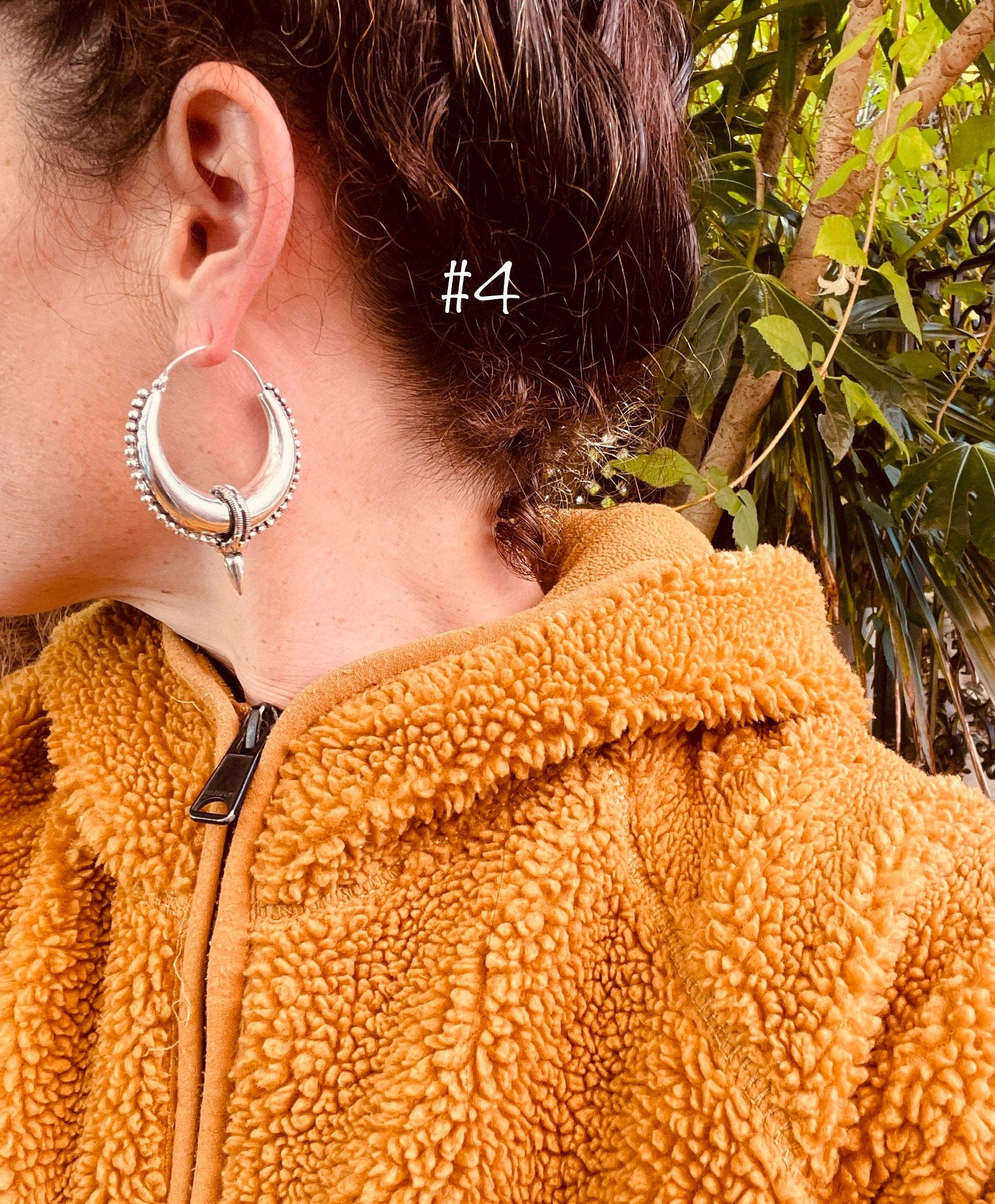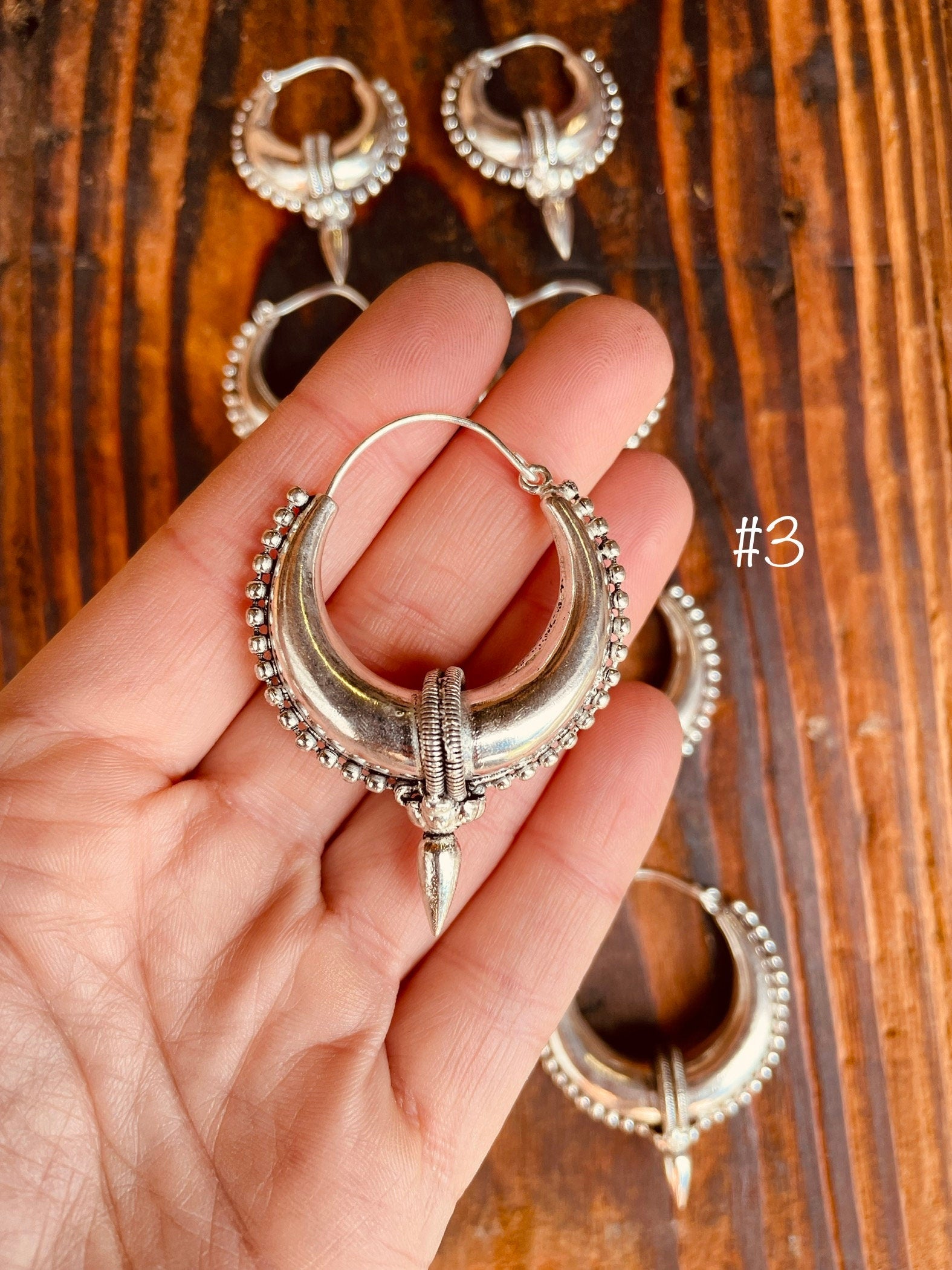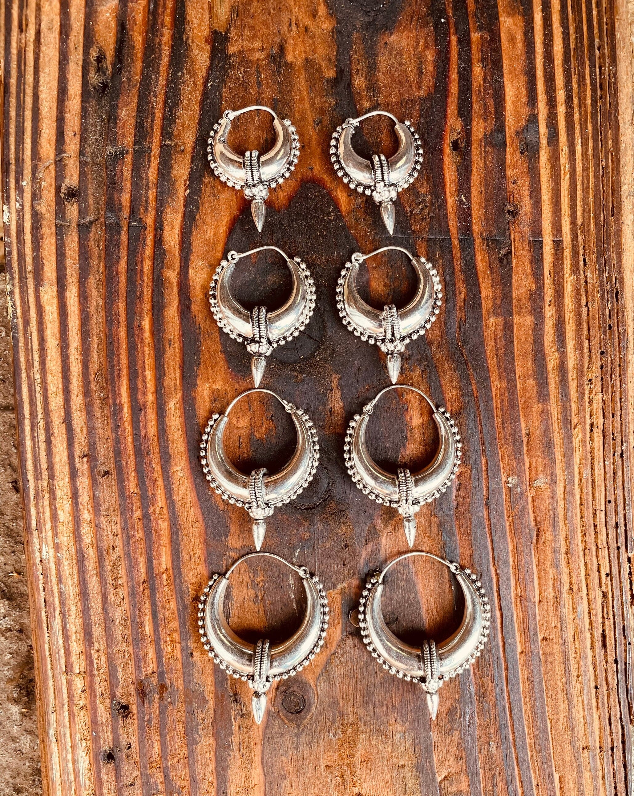 Chunky tribal steampunk silver hoop earrings.