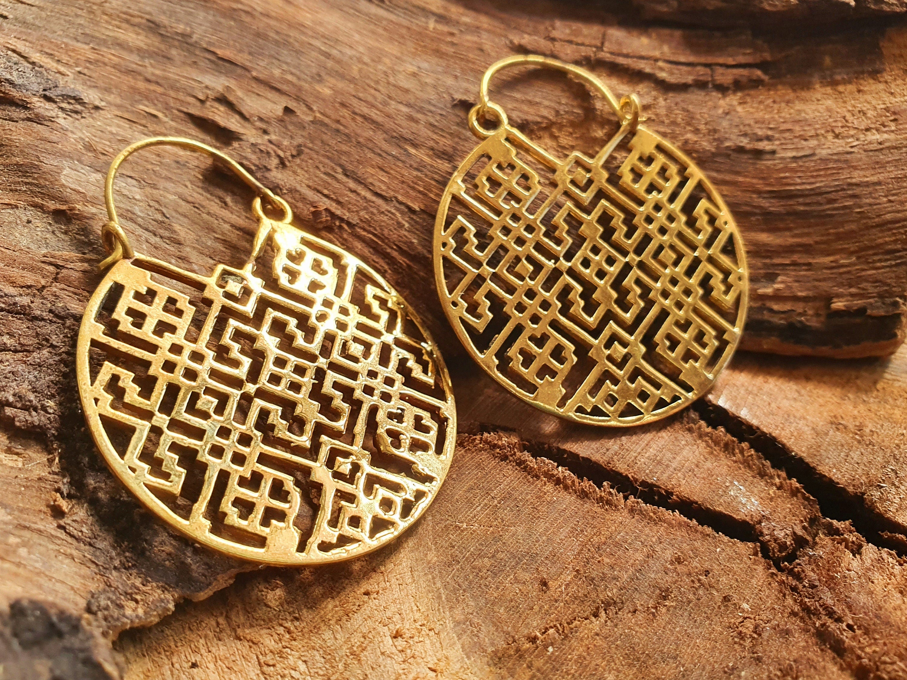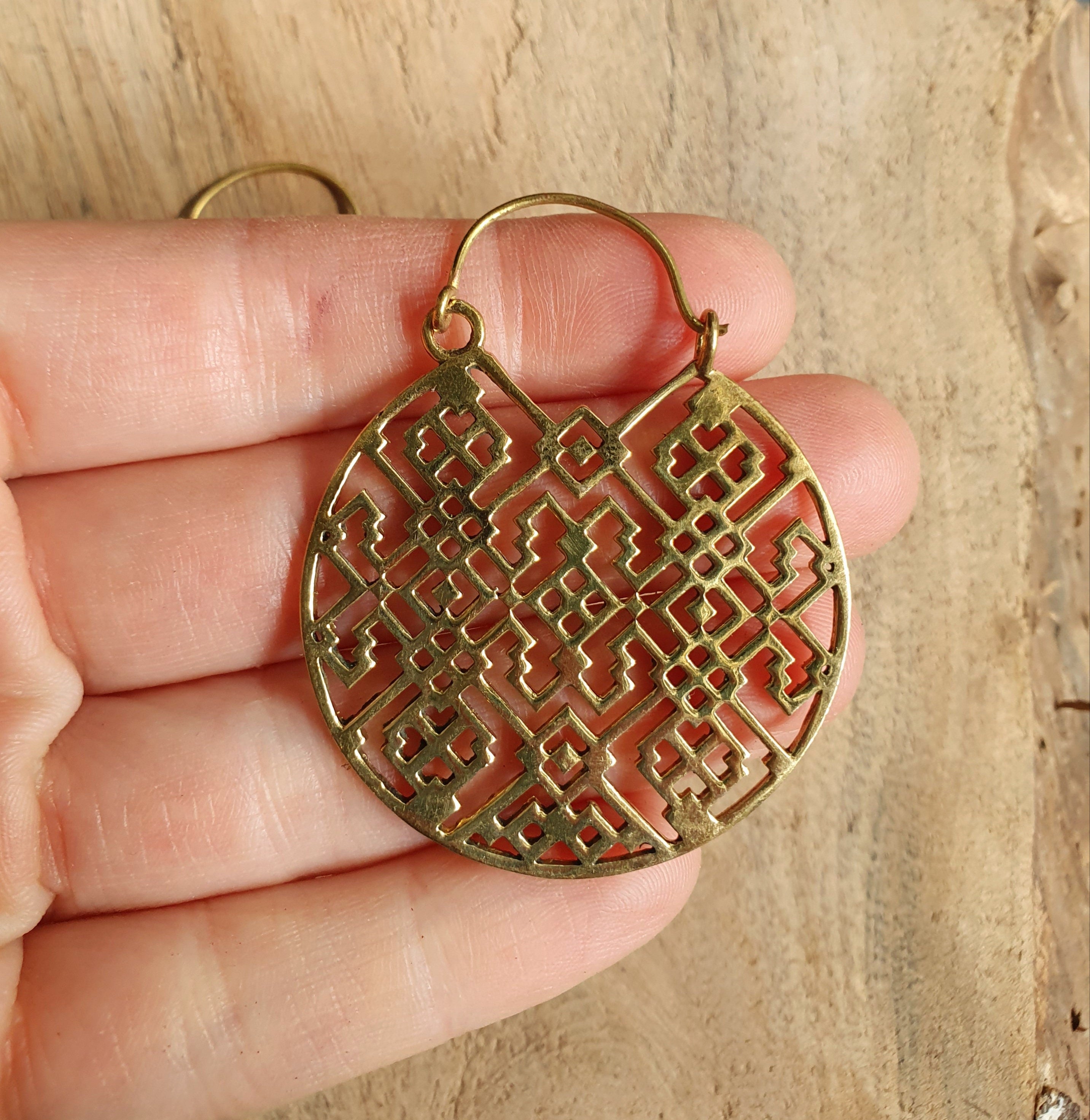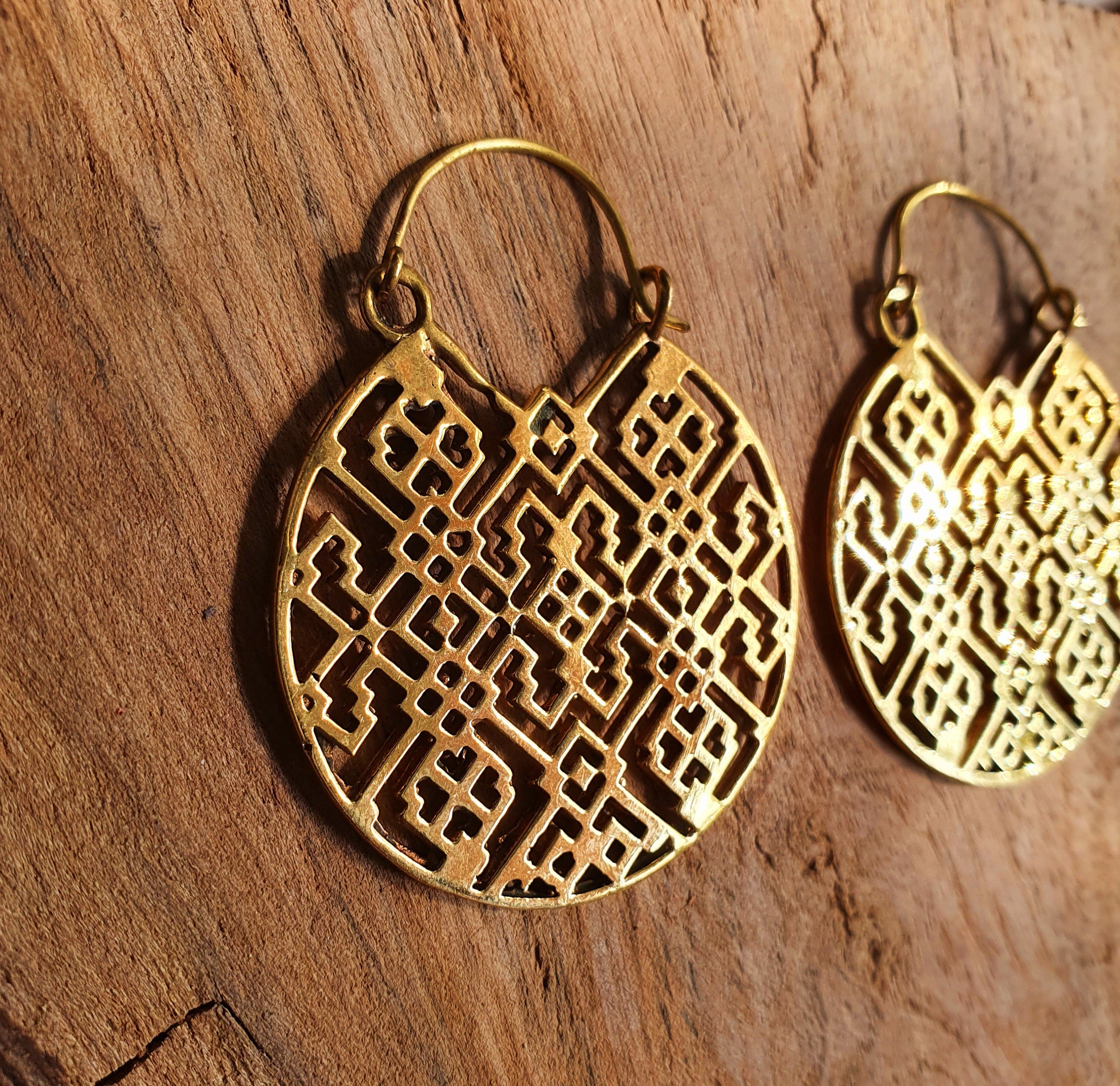 Aztec Hoops Inca Style Brass Earrings
