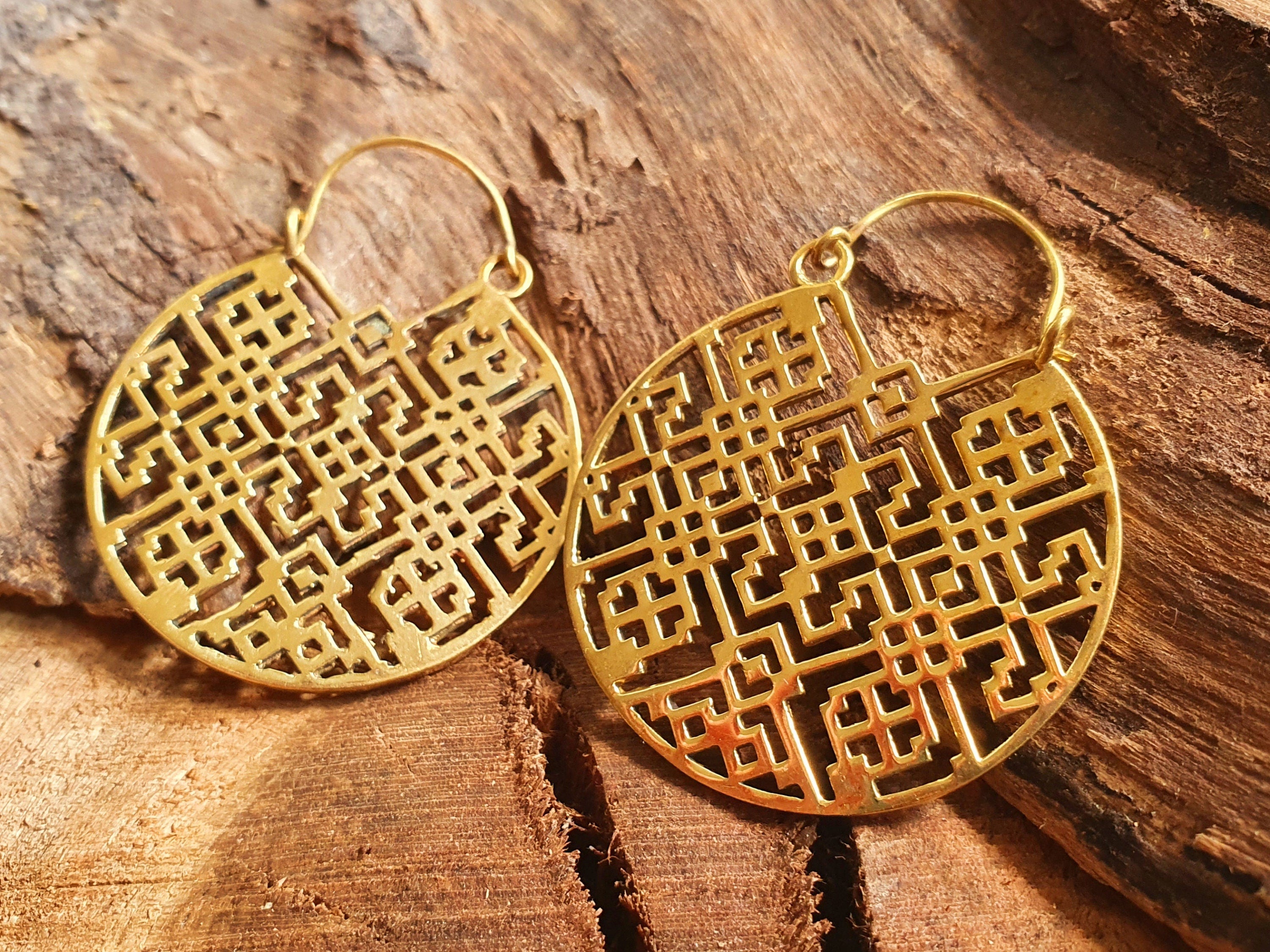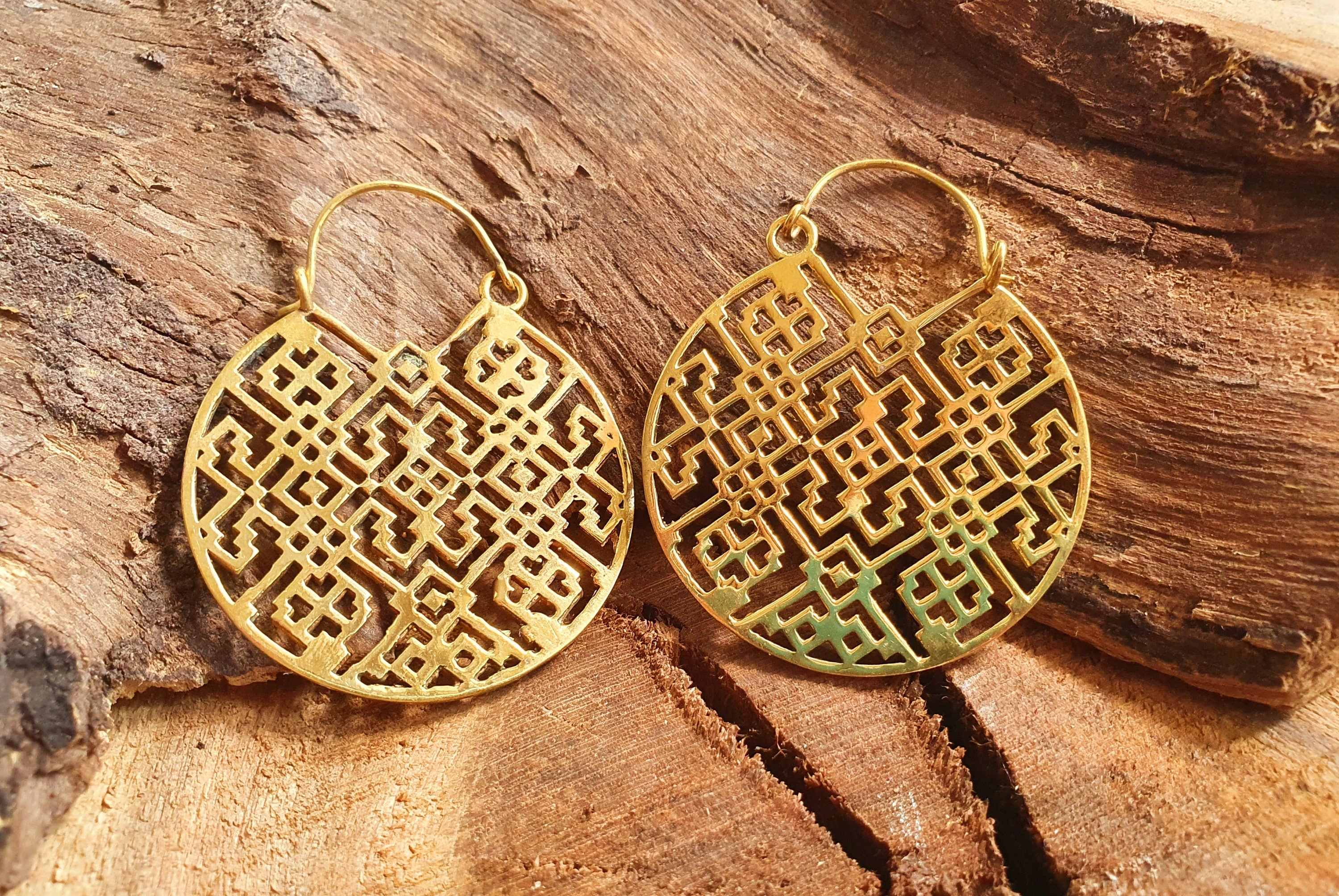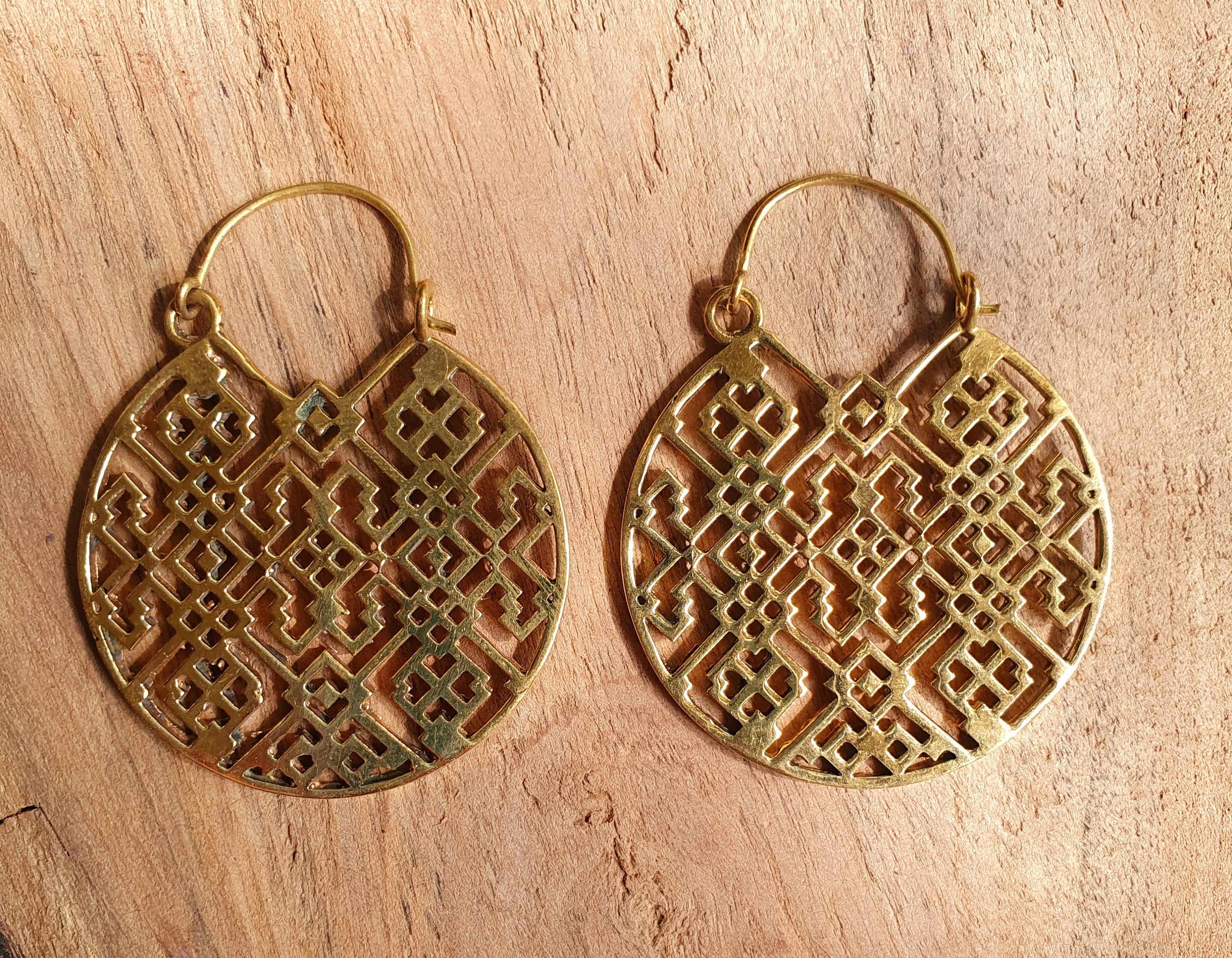 Aztec Hoops Inca Style Brass Earrings