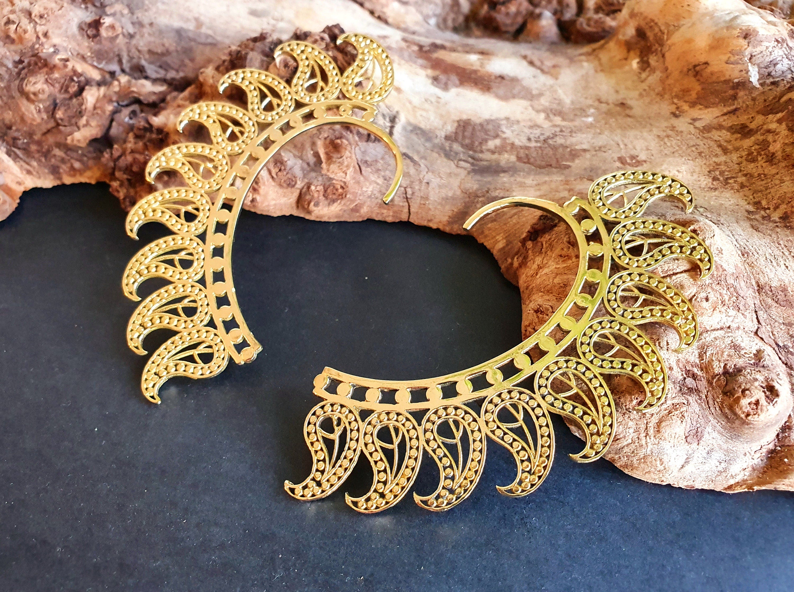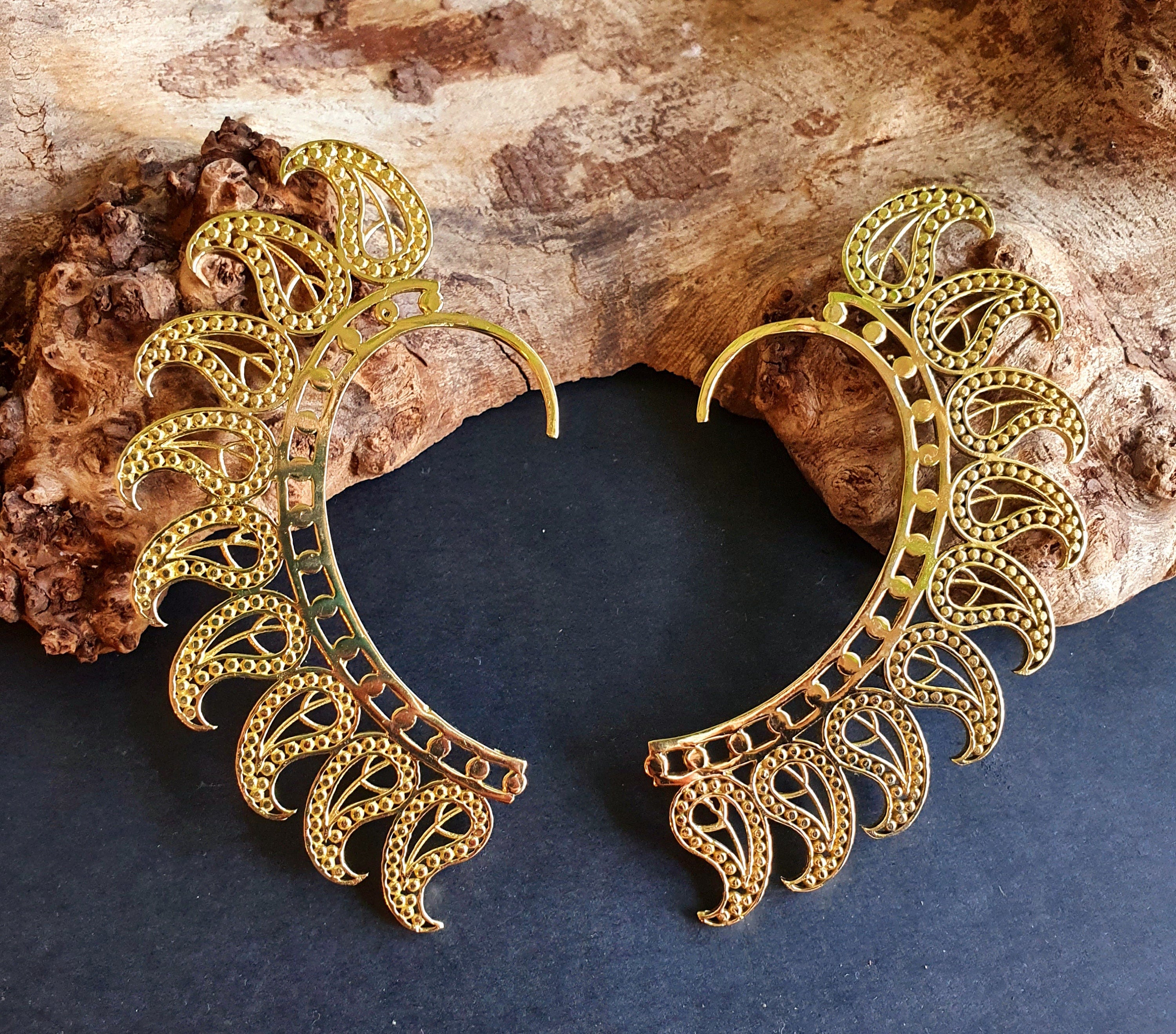 Stunning piece of jewelry, this ear cuff sits comfortable around the ear. Simply hook it over and it is ready!