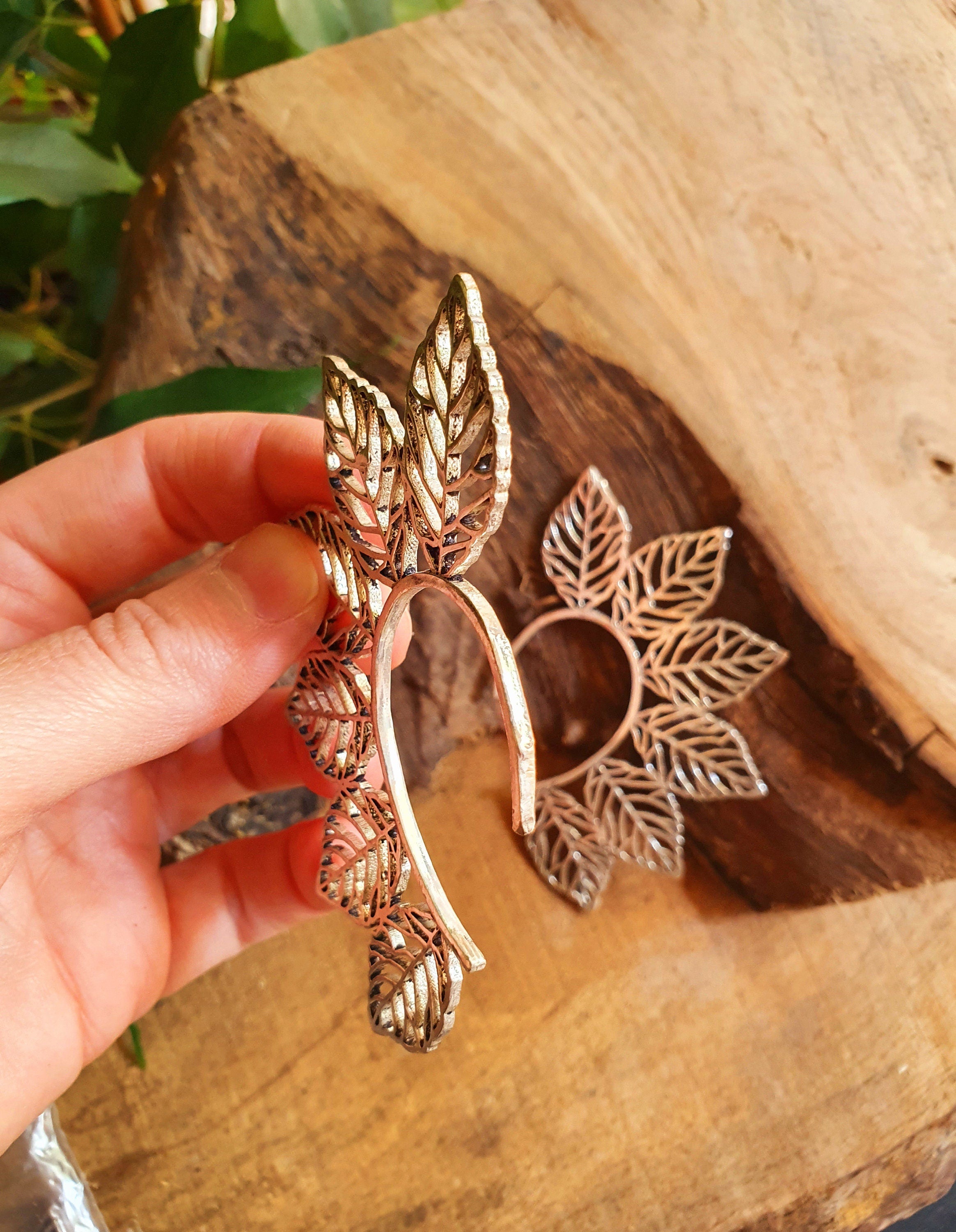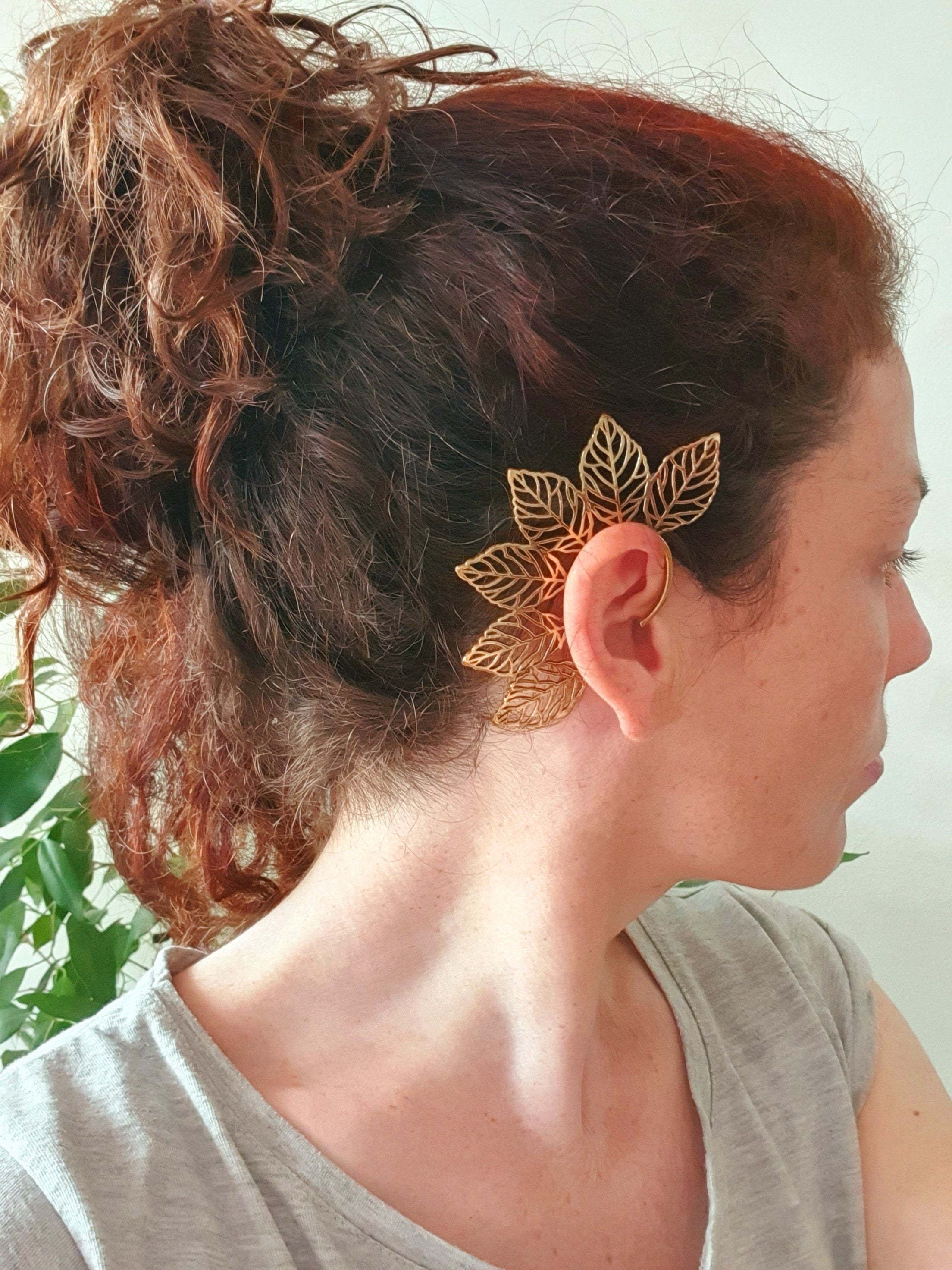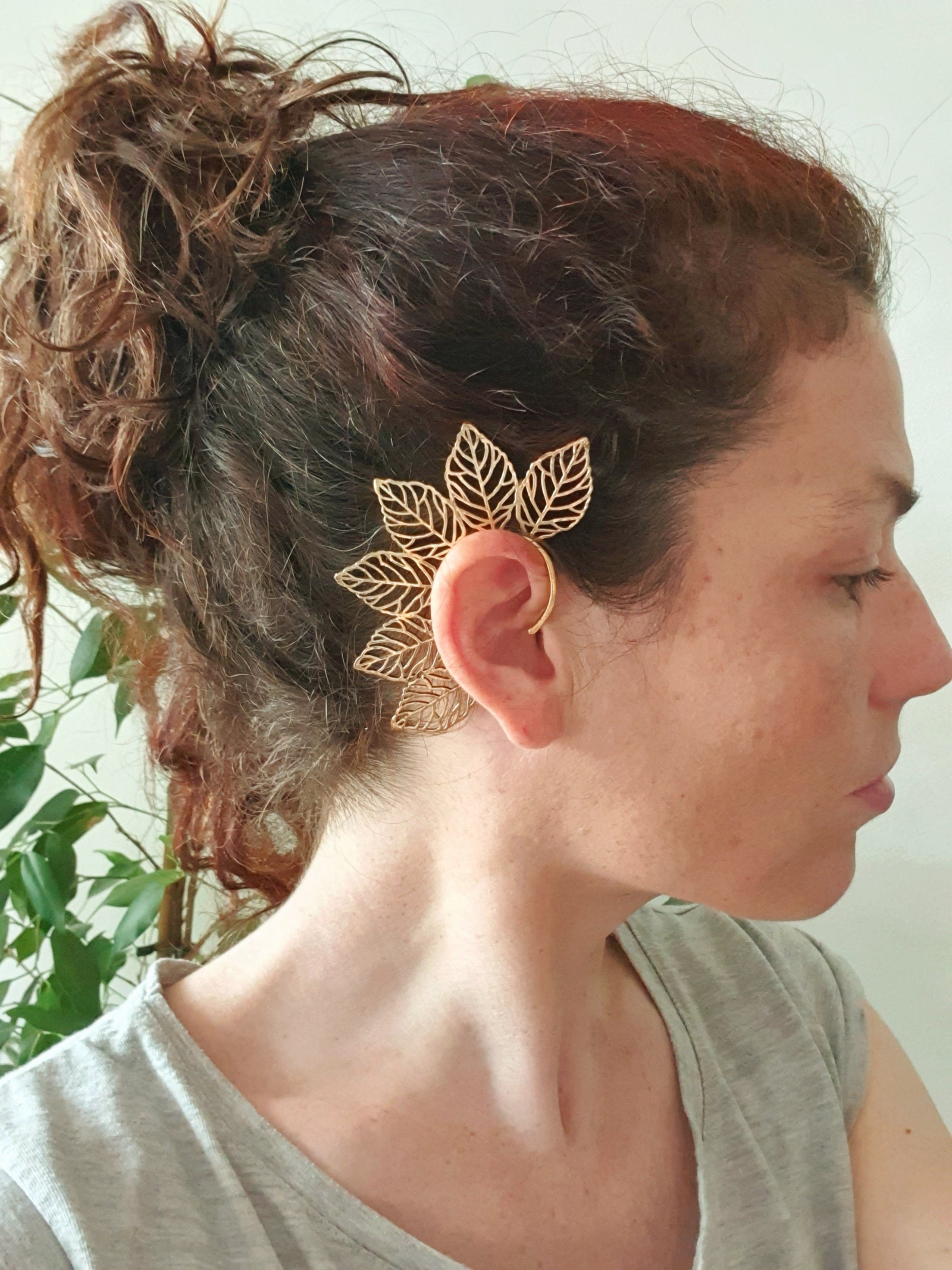 Stunning piece of jewelry, this ear cuff sits comfortable around the ear. Simply hook it over and it is ready!