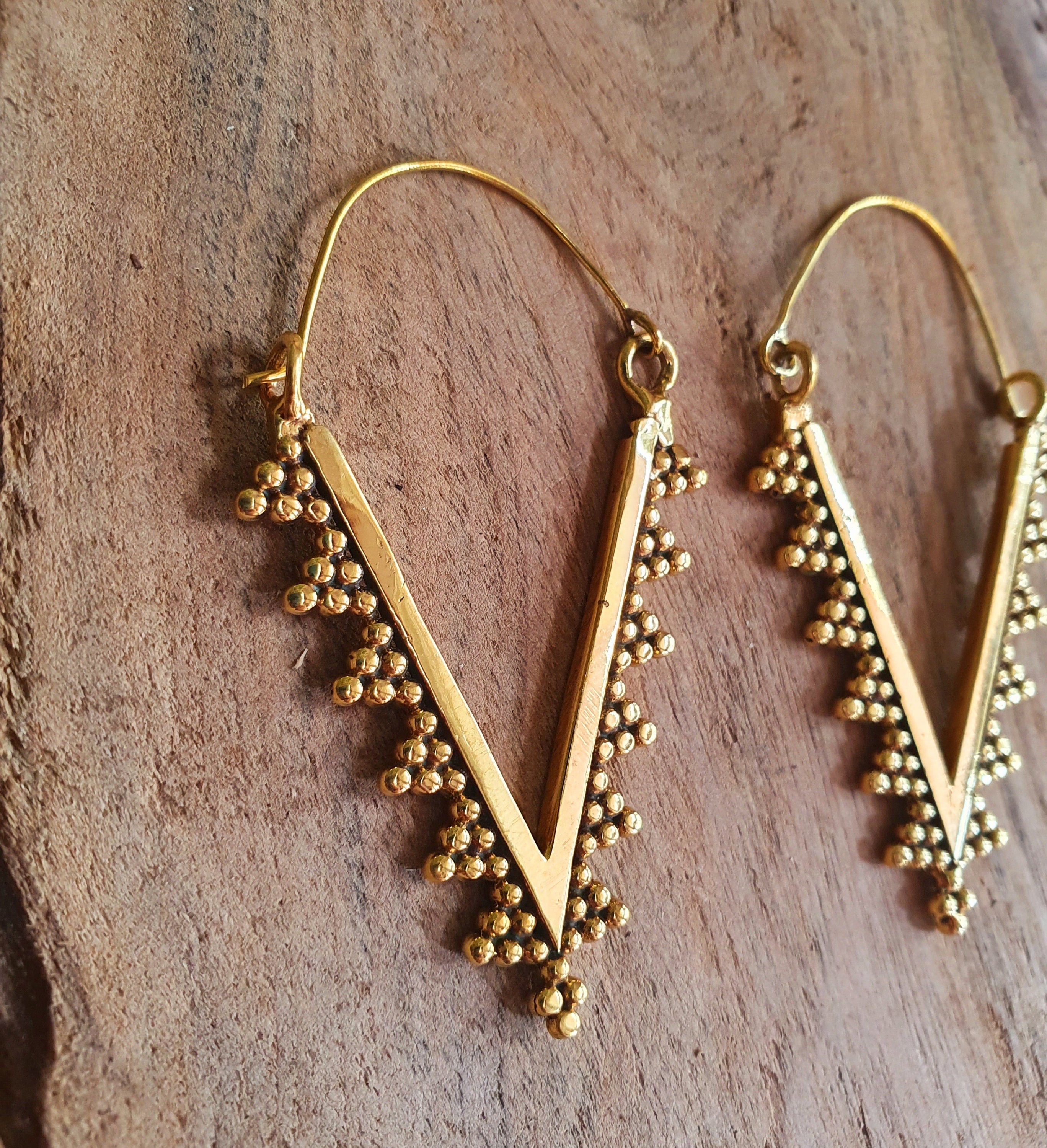 Geometric Tribal Triangle Aztec Style Brass Earrings