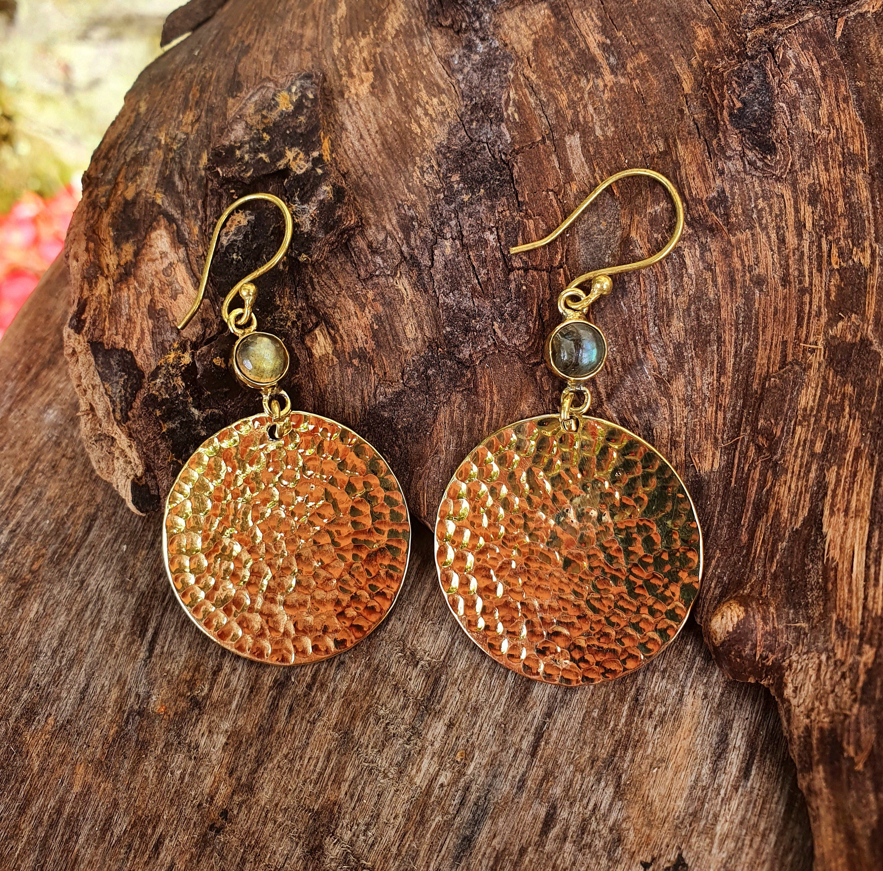 Labradorite Contemporary Hammered Brass Dangle earrings Ethnic