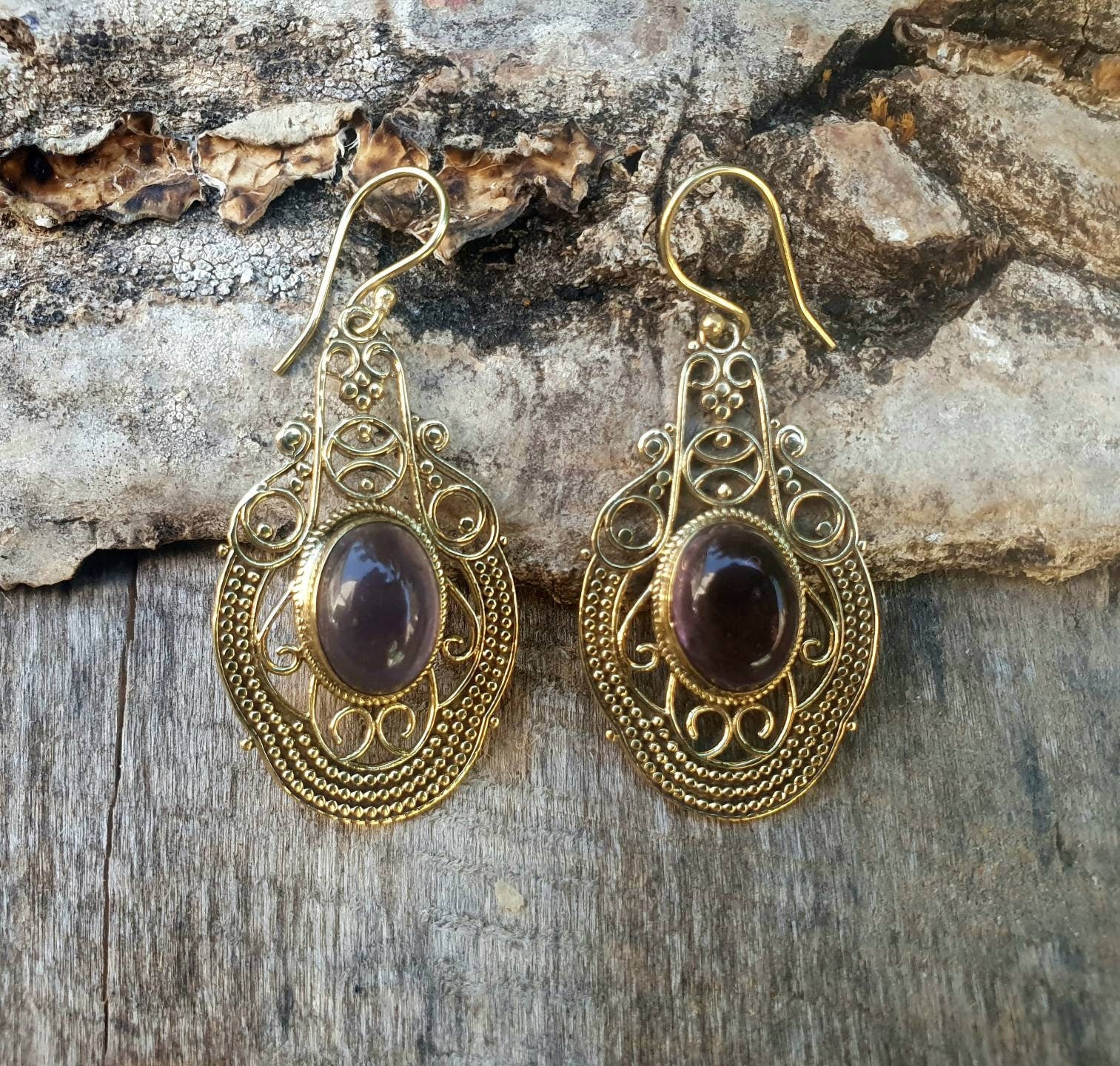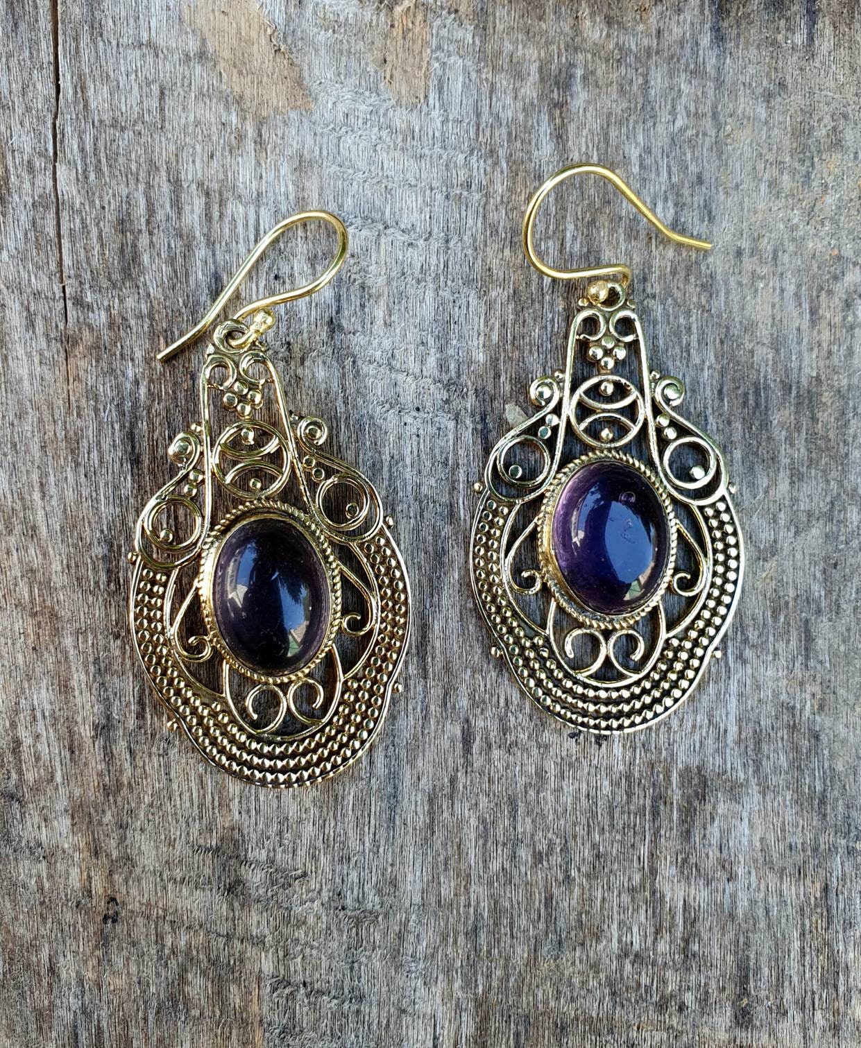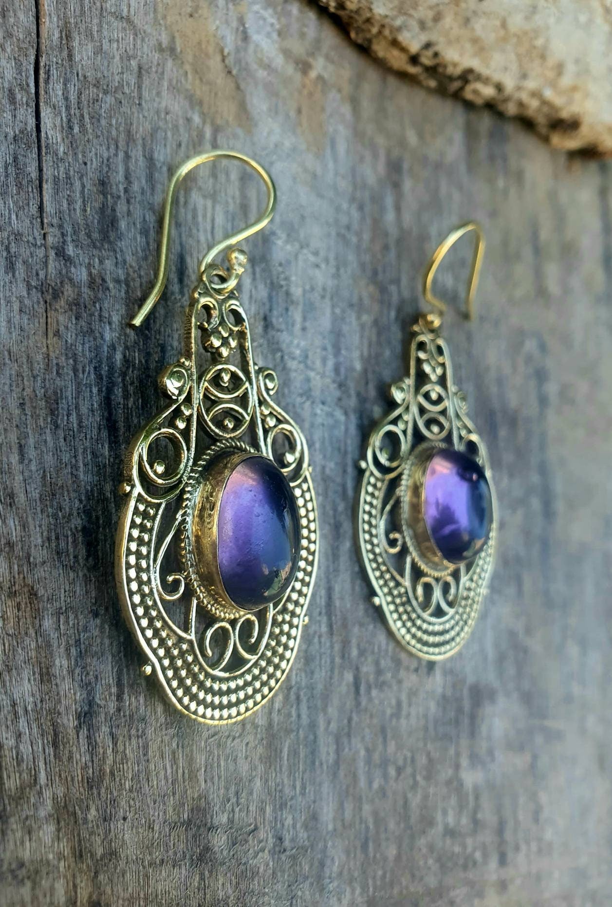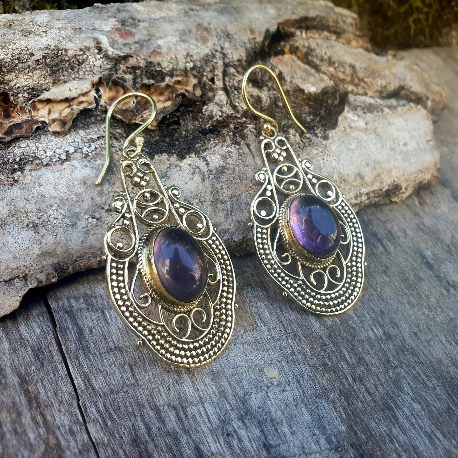 Large Amethyst Golden Drop Dangle earrings