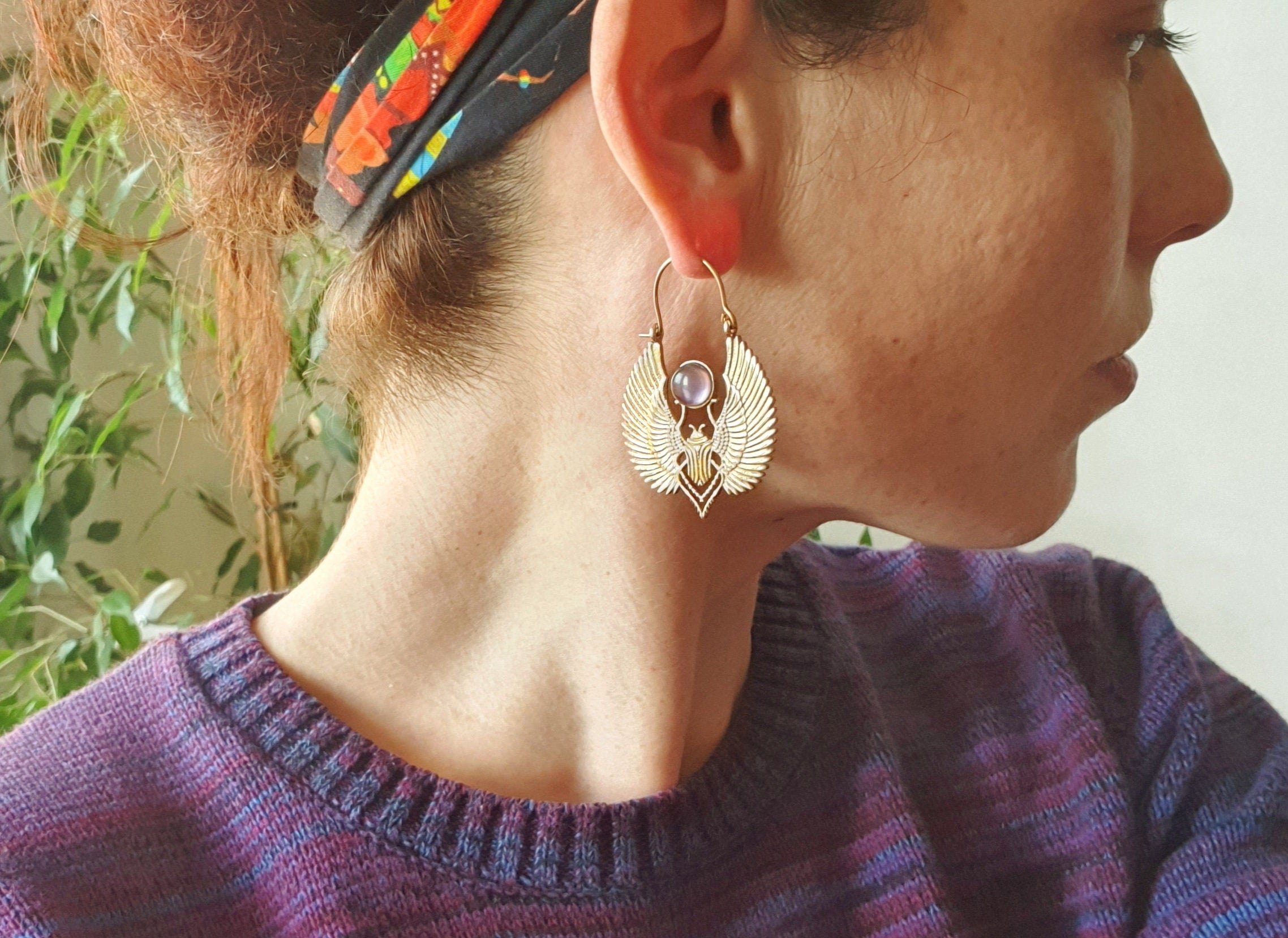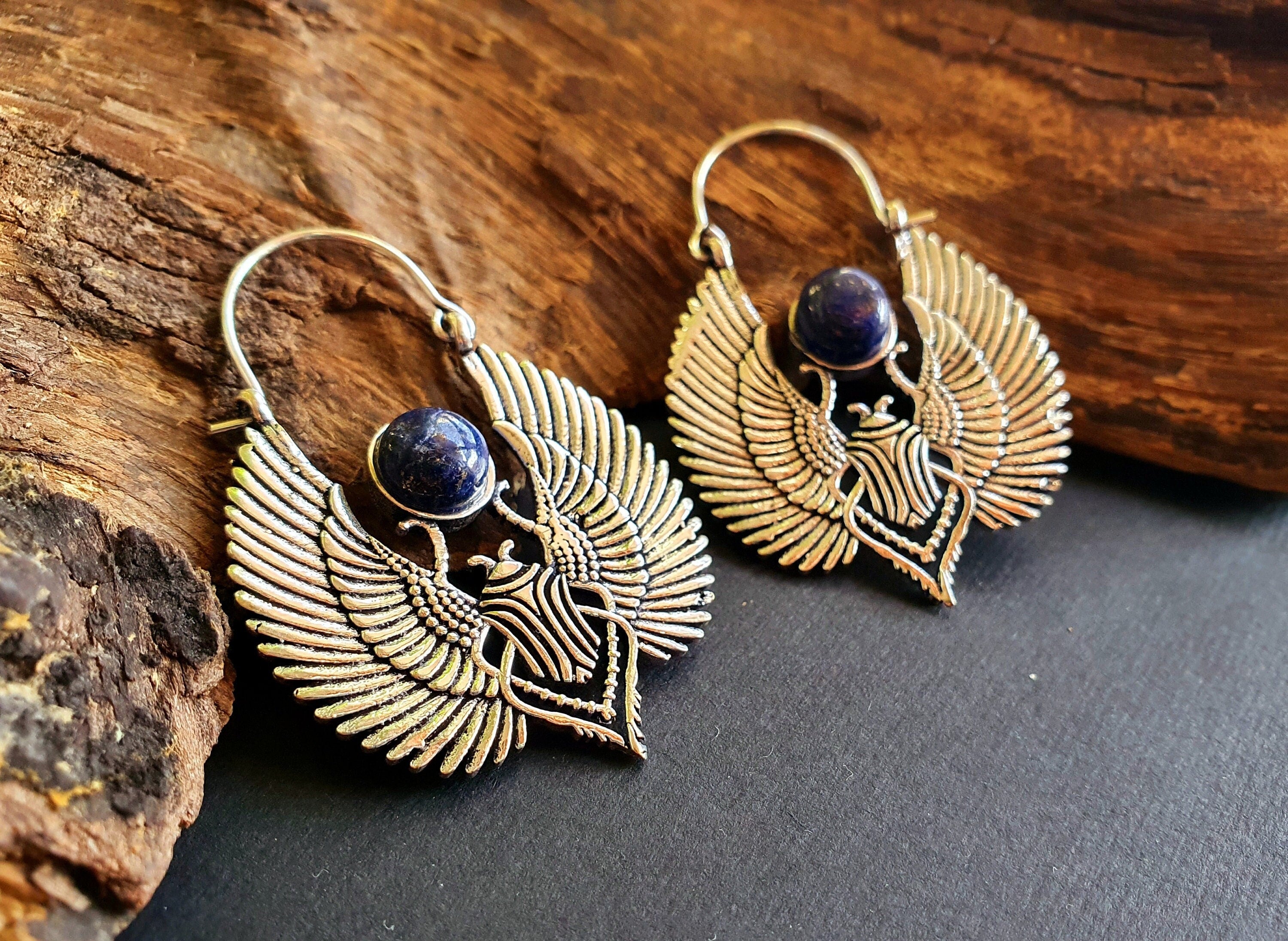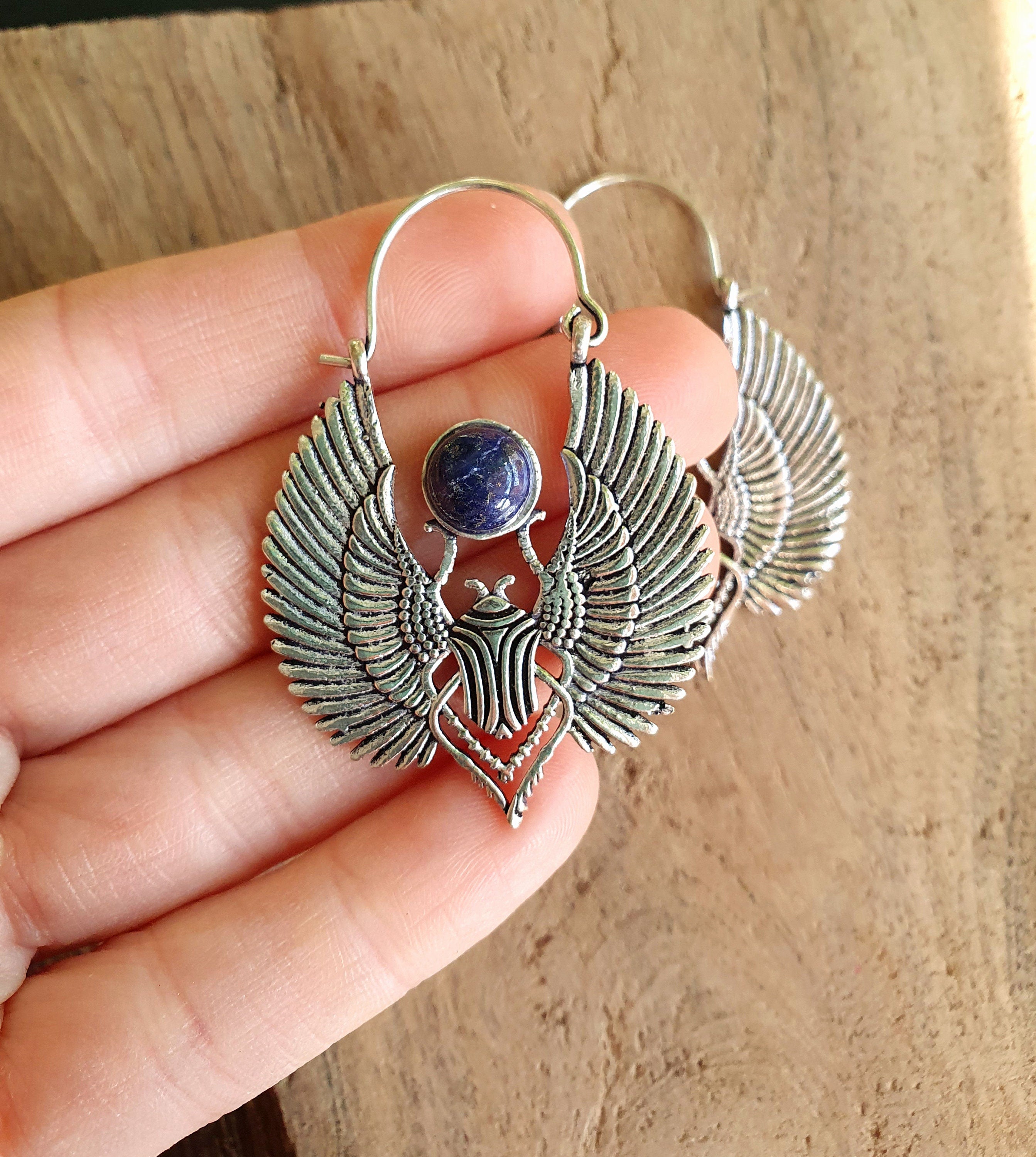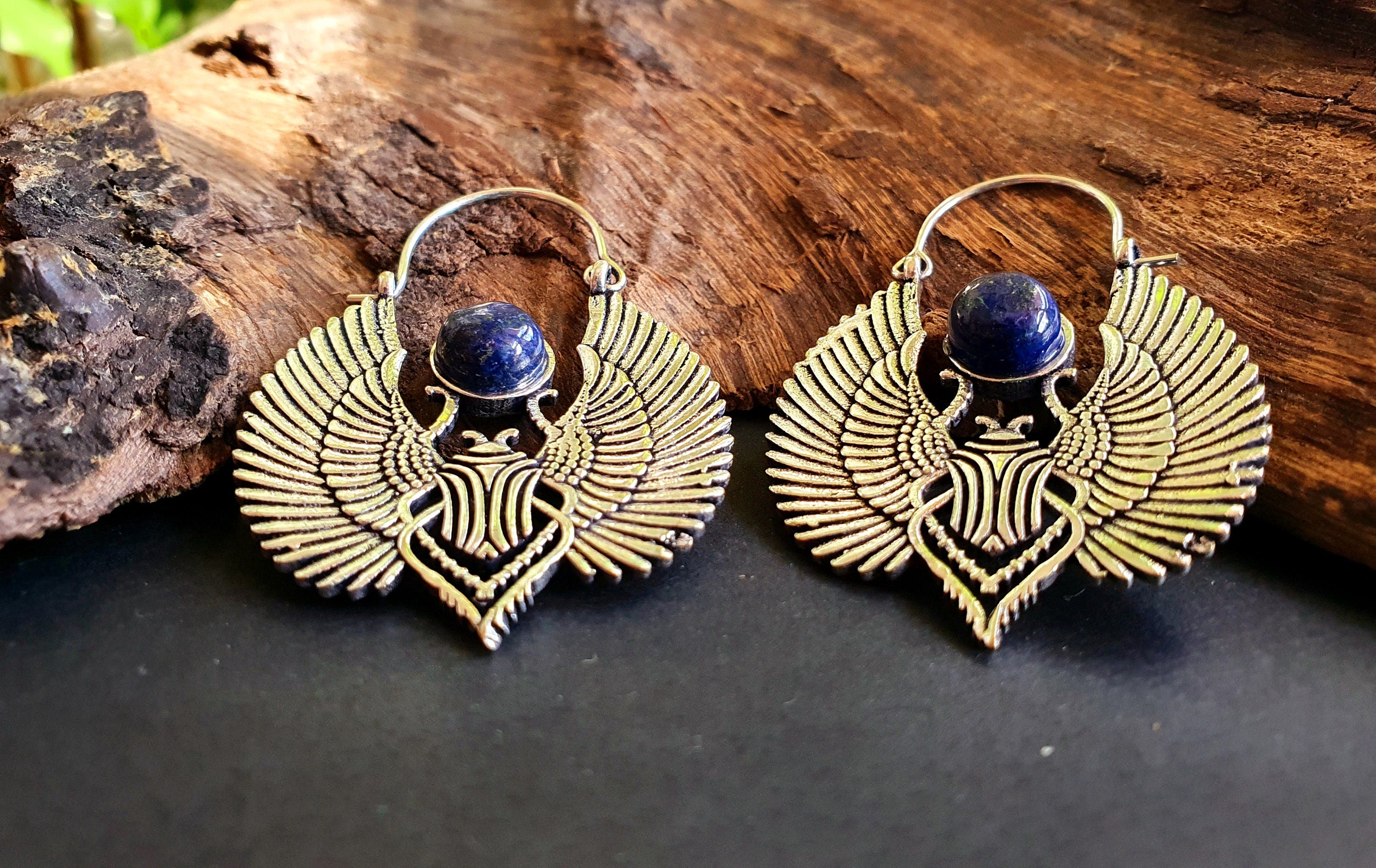 Silver Scarab Earrings Ancient Egypt Lapis Lazuli & Brass
