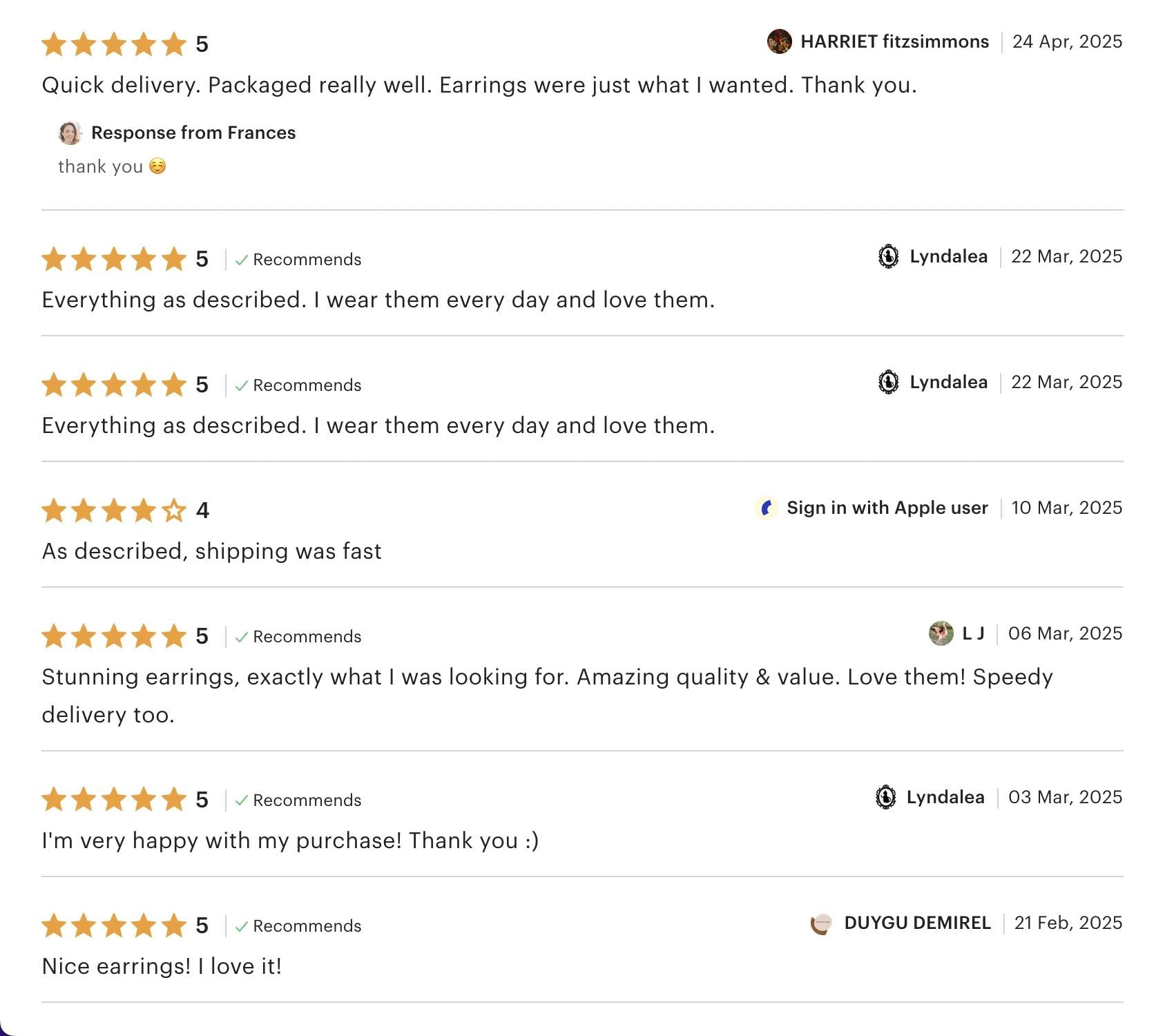 Sterling Silver 925, lightweight and 100% nickel free.