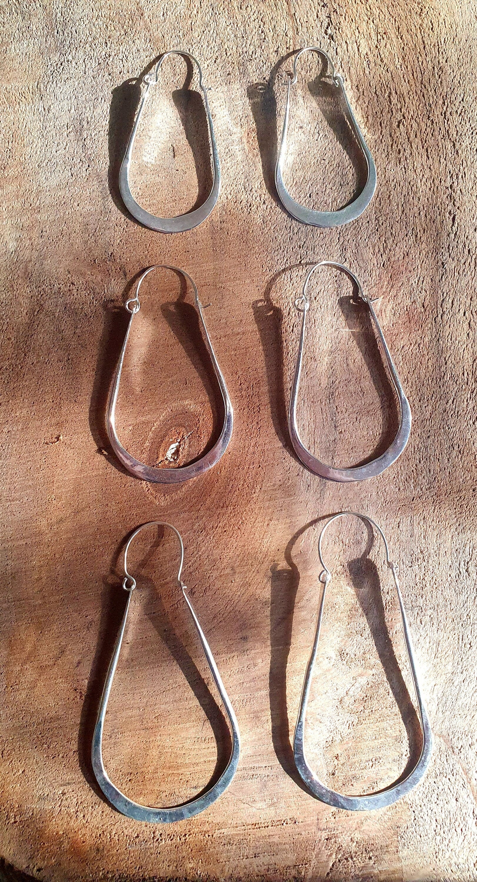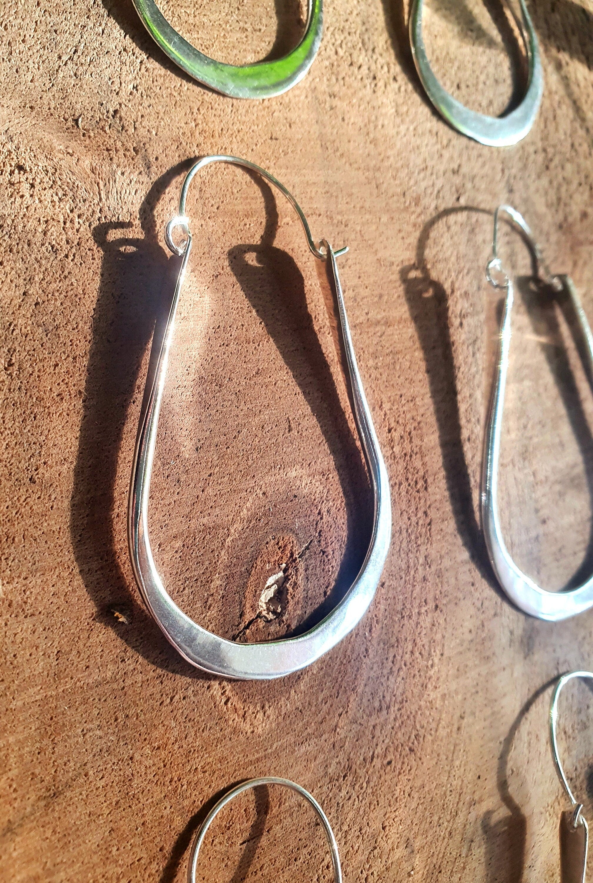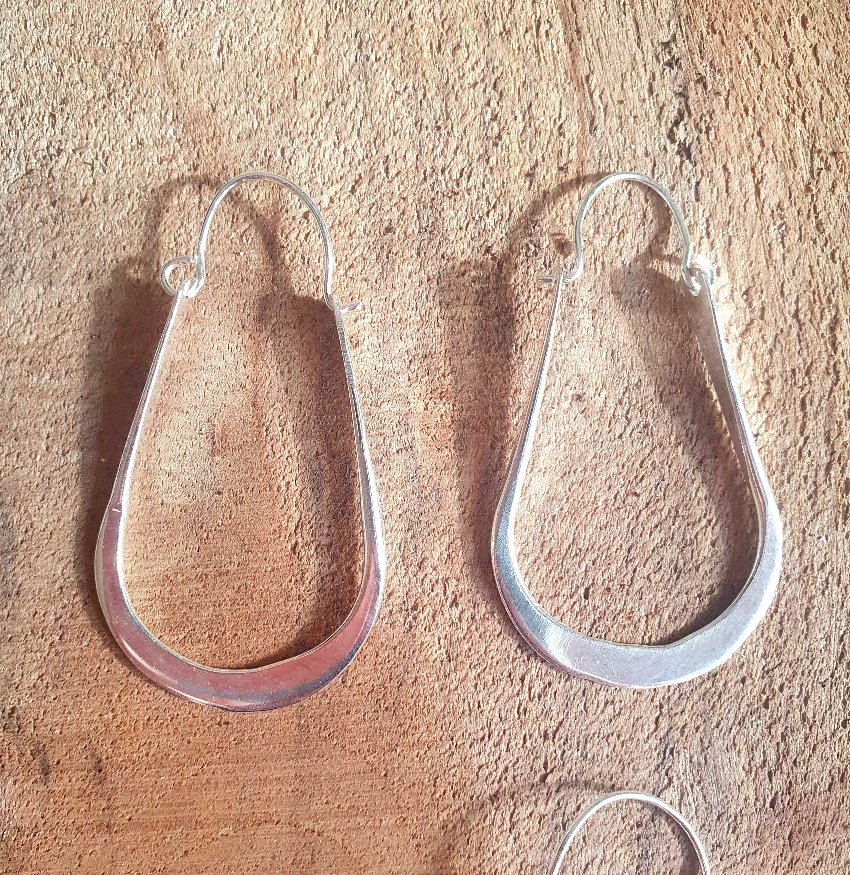 Boho Long Drop Silver Hoop Earrings