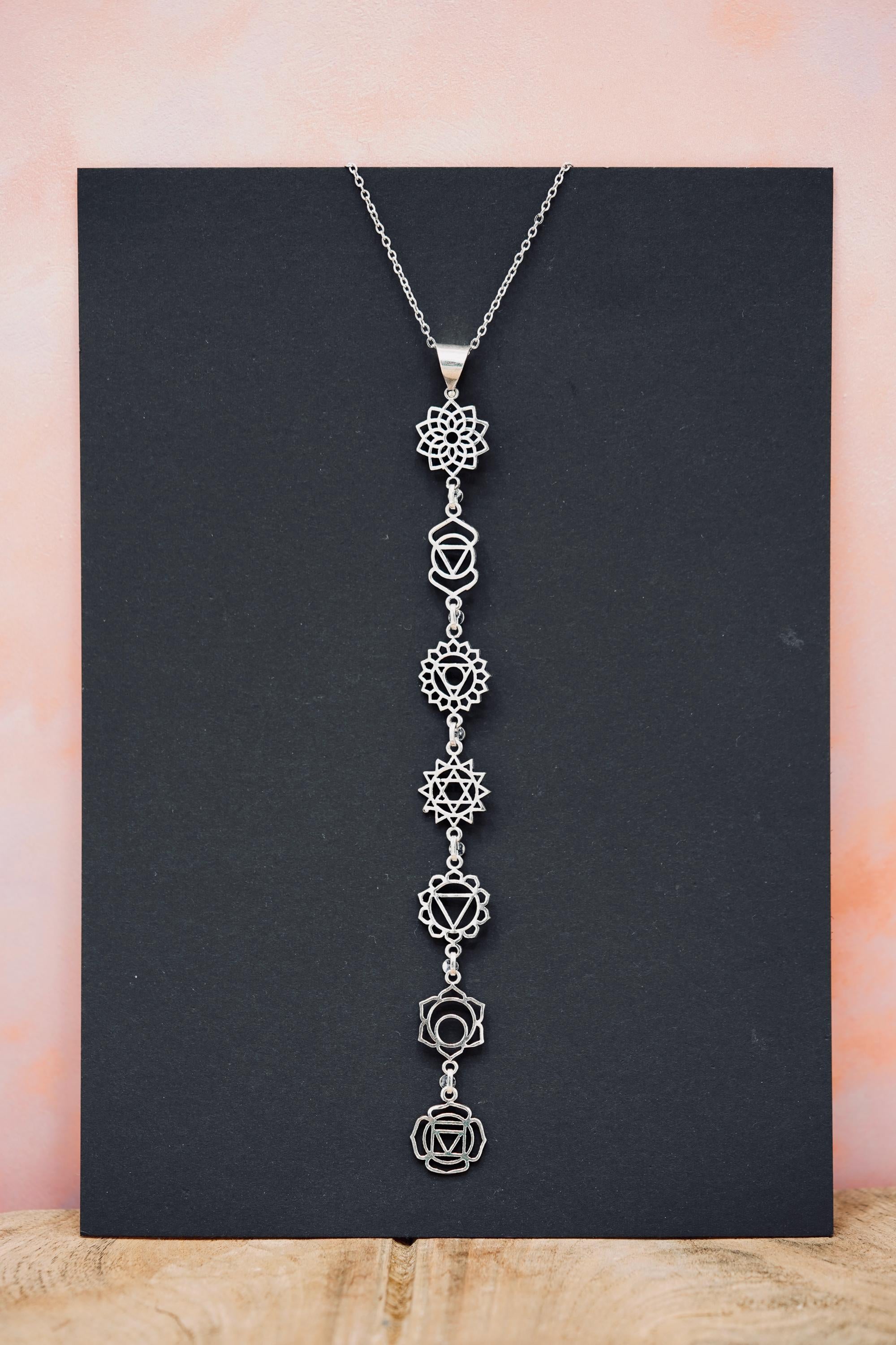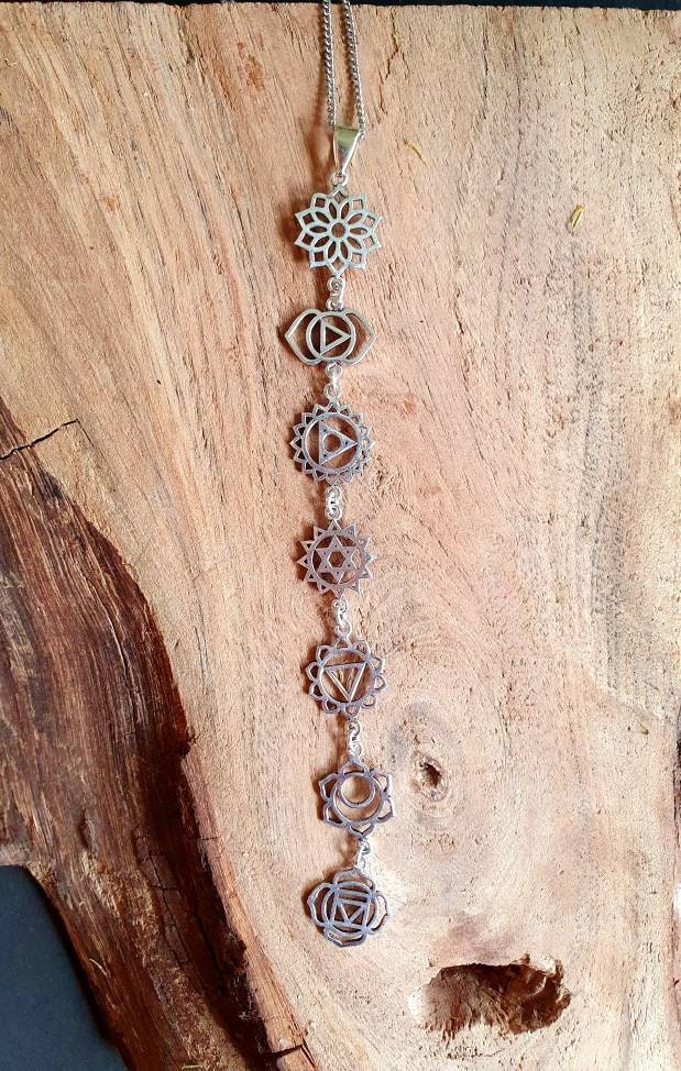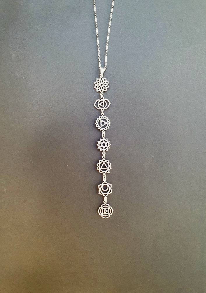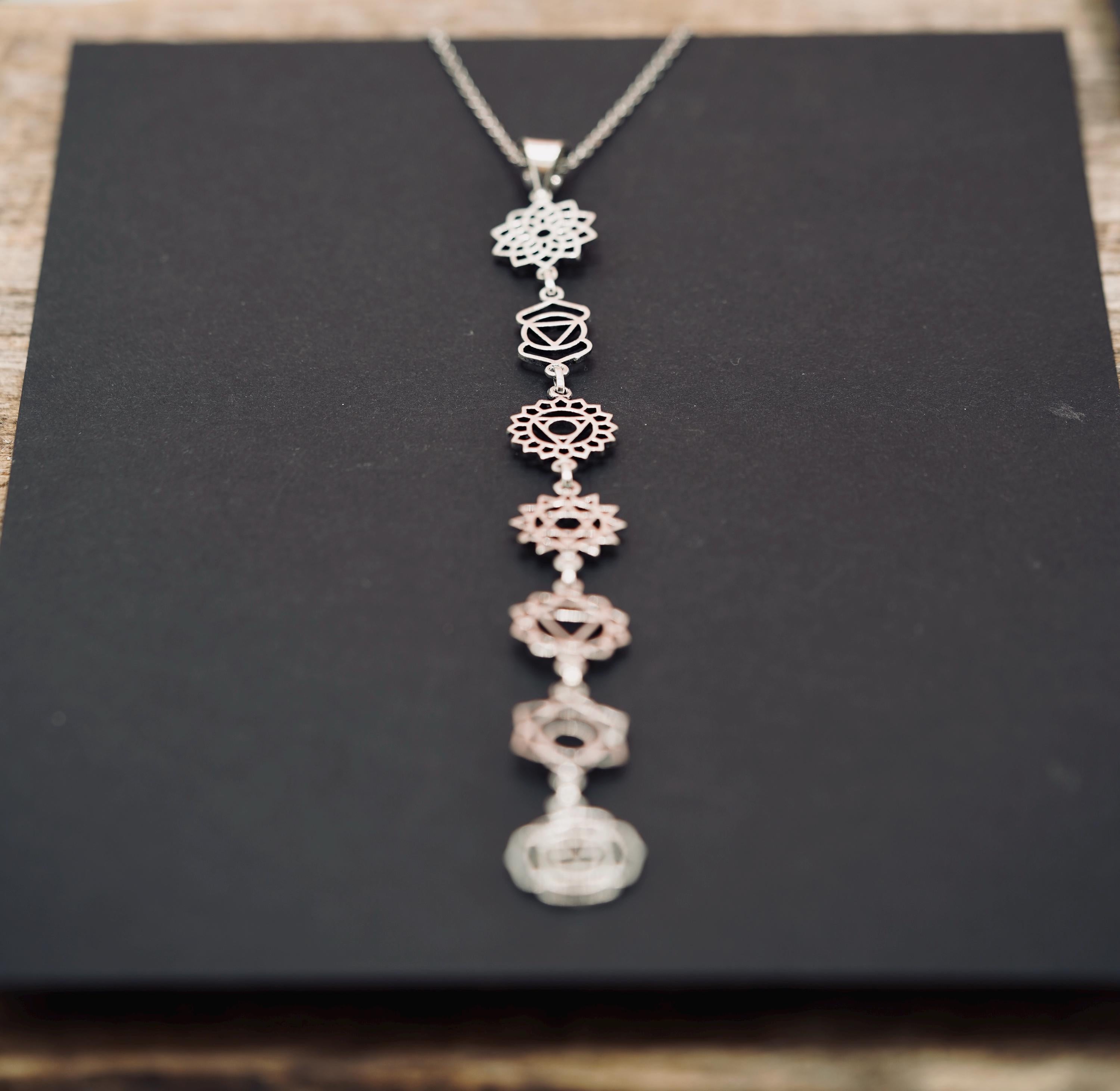 Seven Chakras necklace with hypoallergenic stainless steel chain.