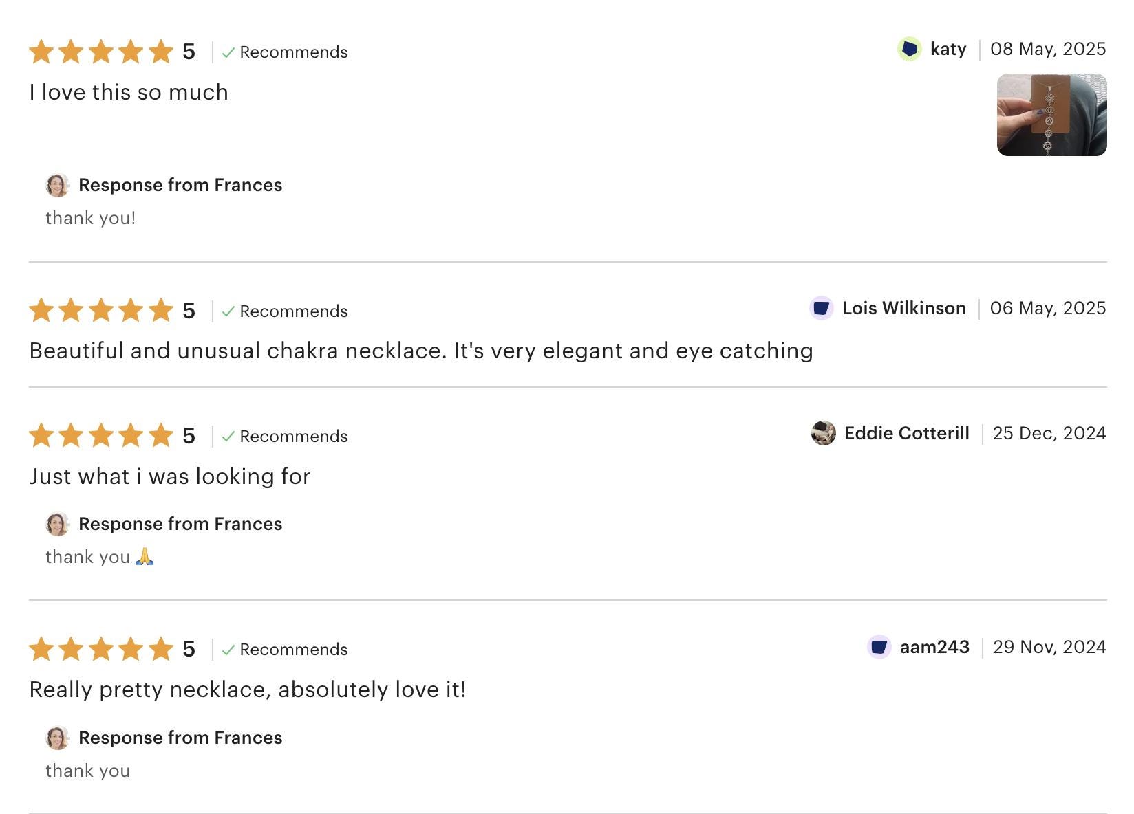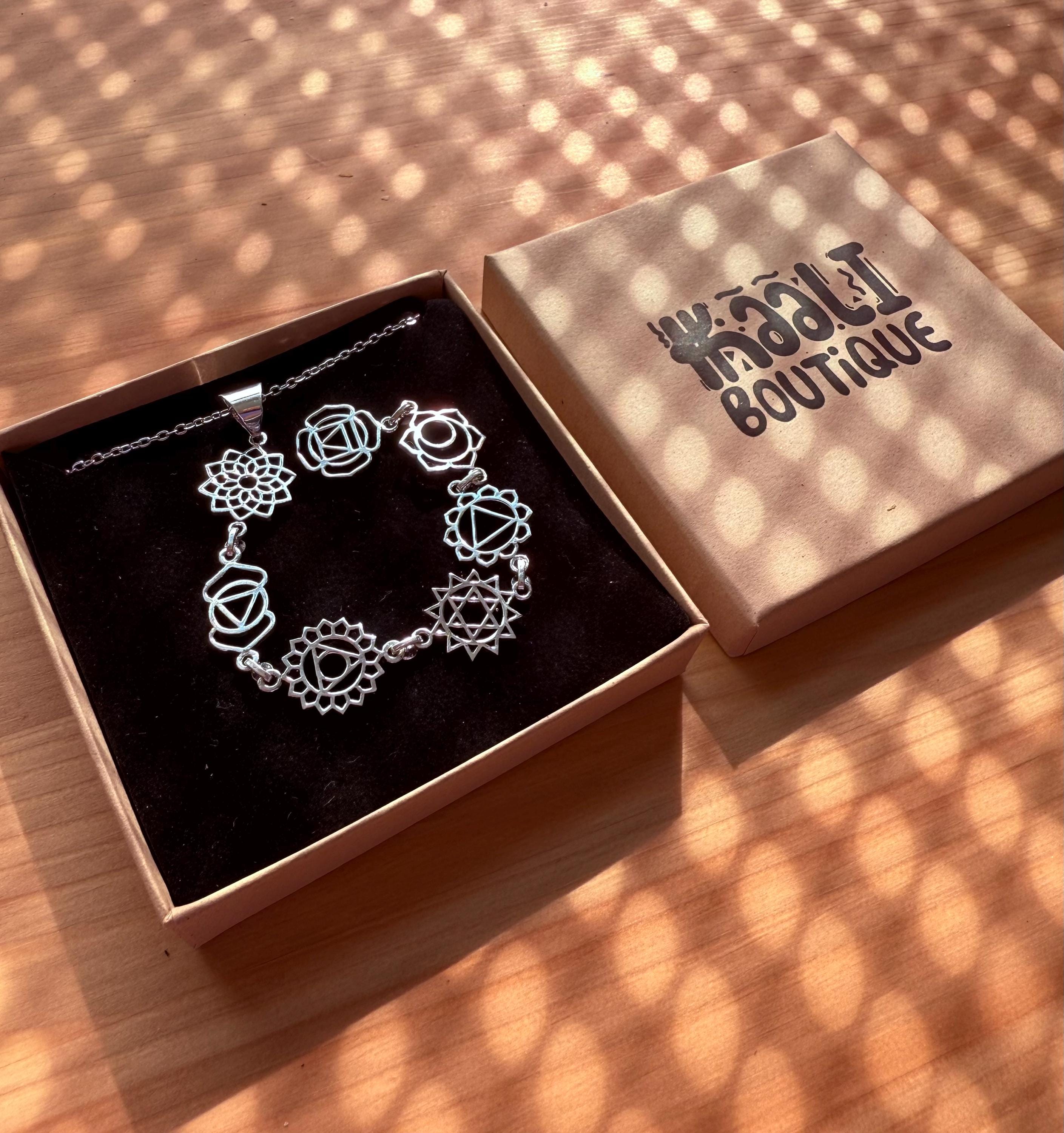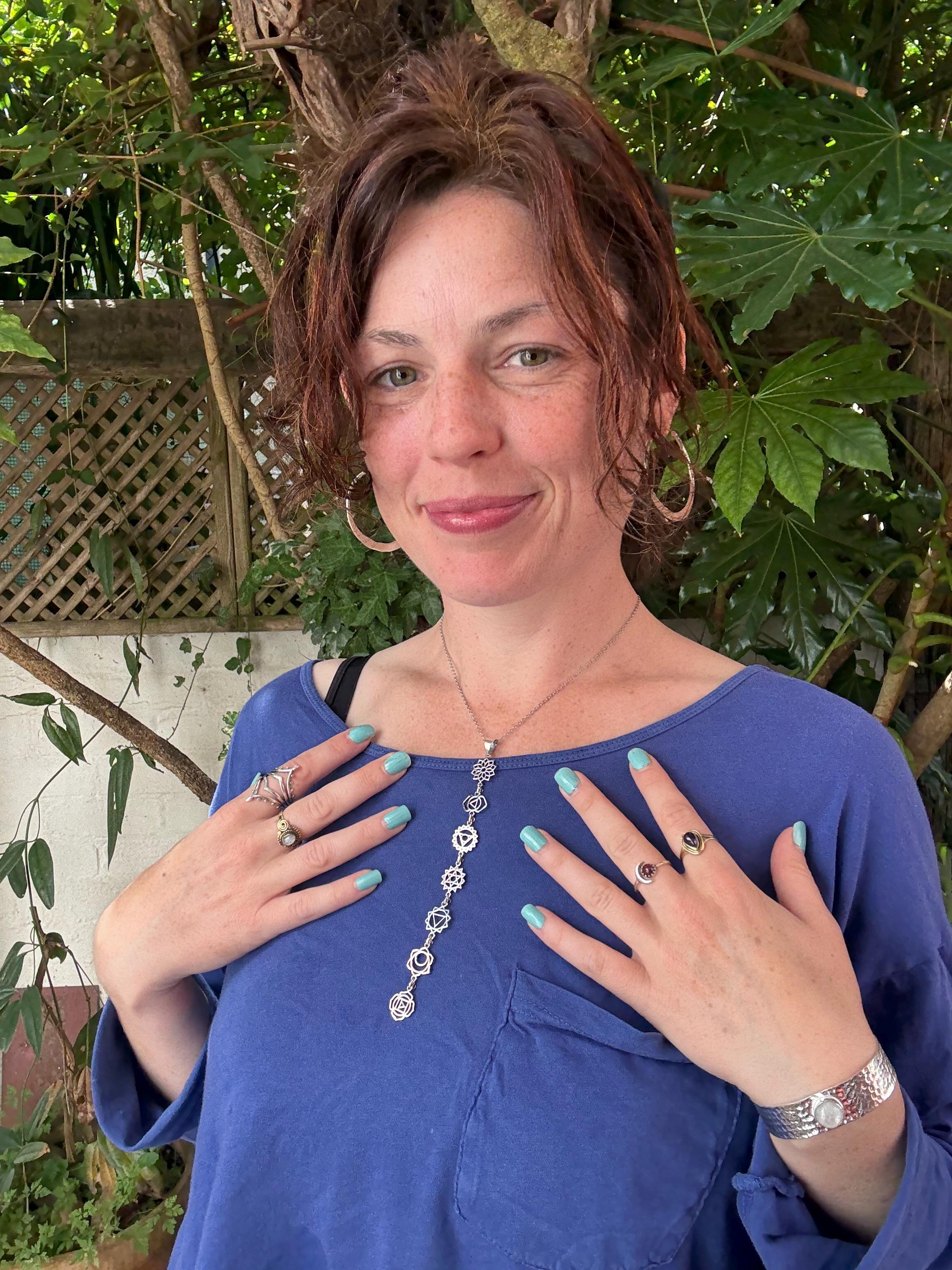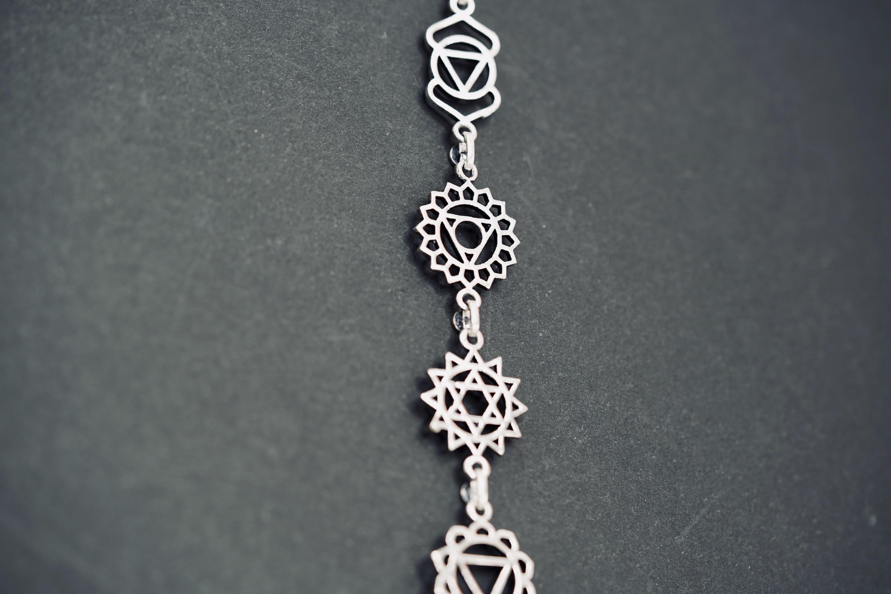 Seven Chakras necklace with hypoallergenic stainless steel chain.