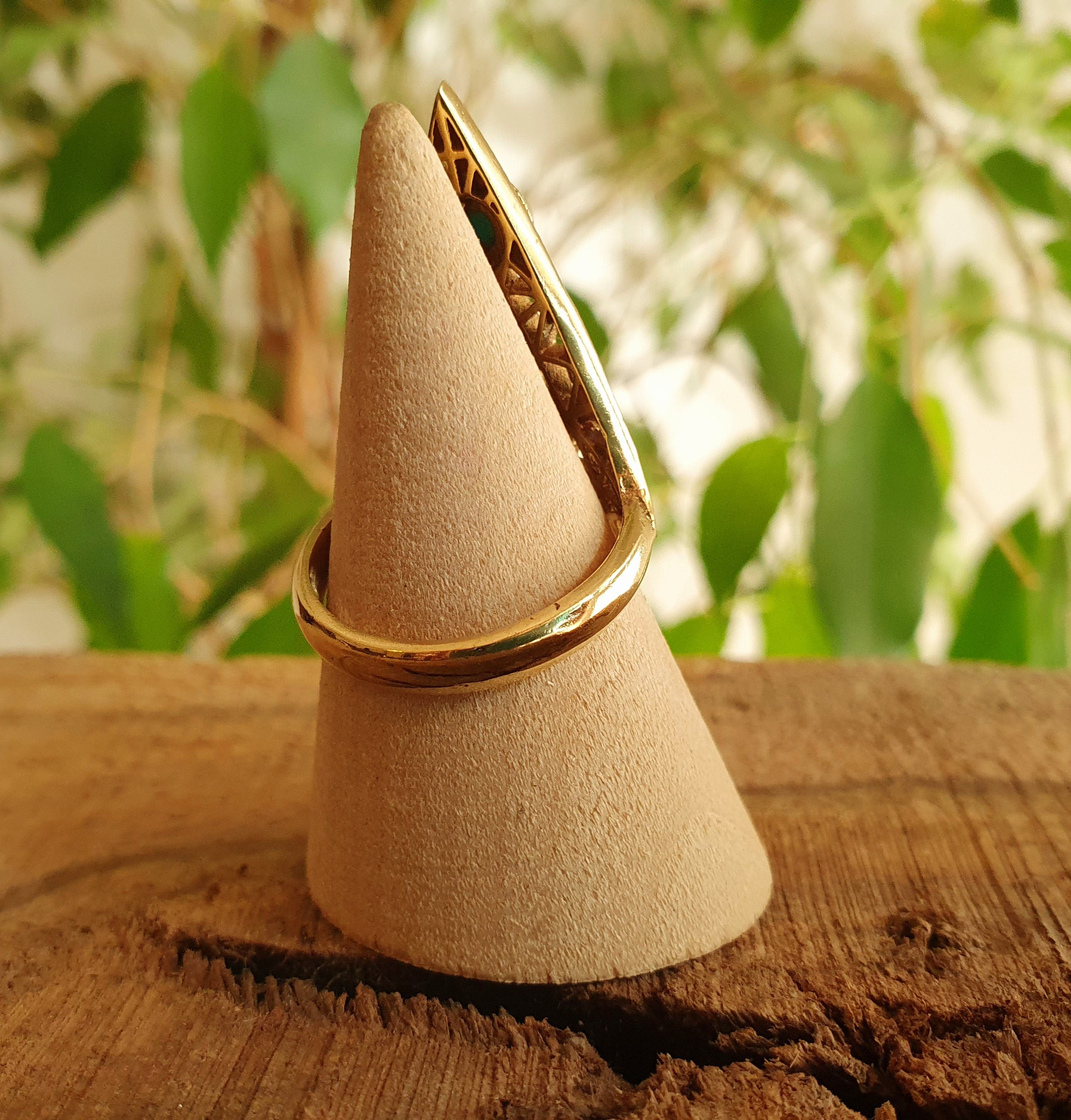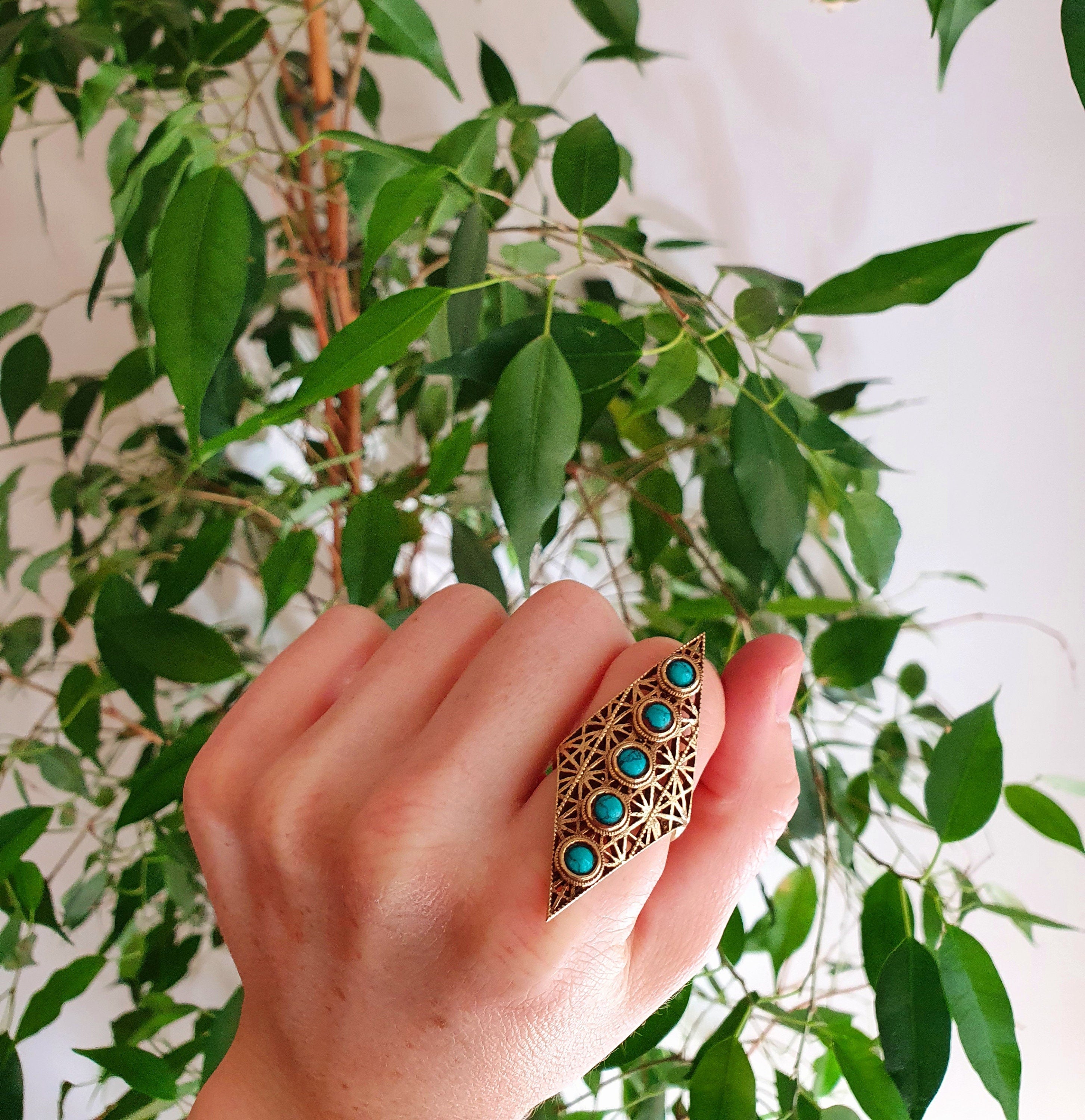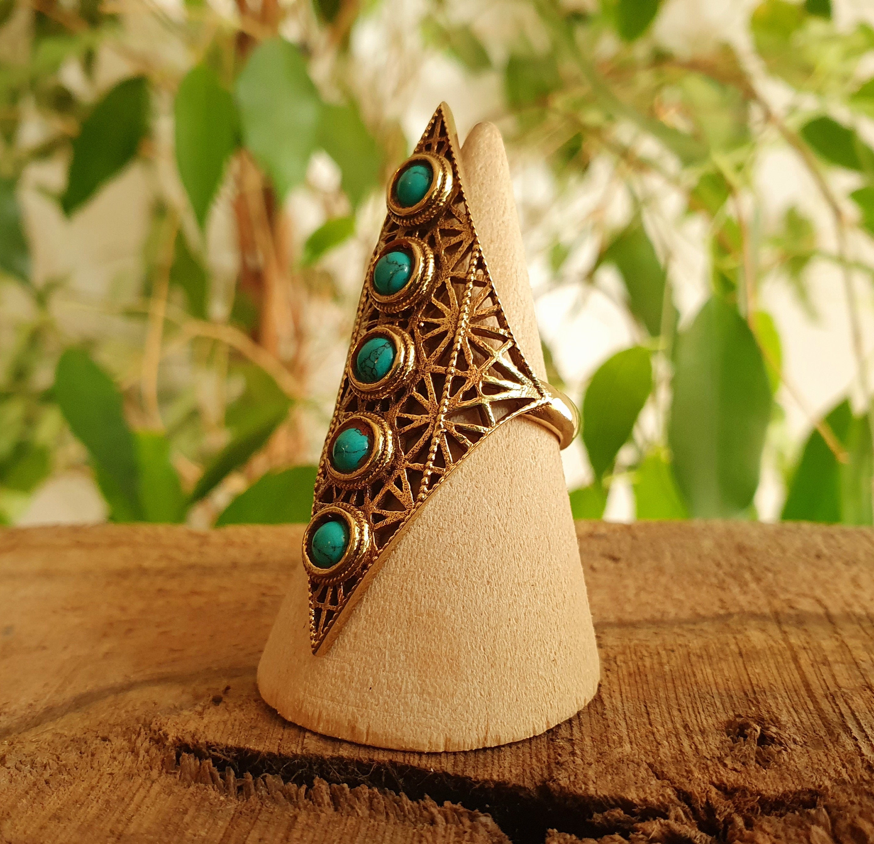 Brass Turquoise Geometric Diamond Shape Ring