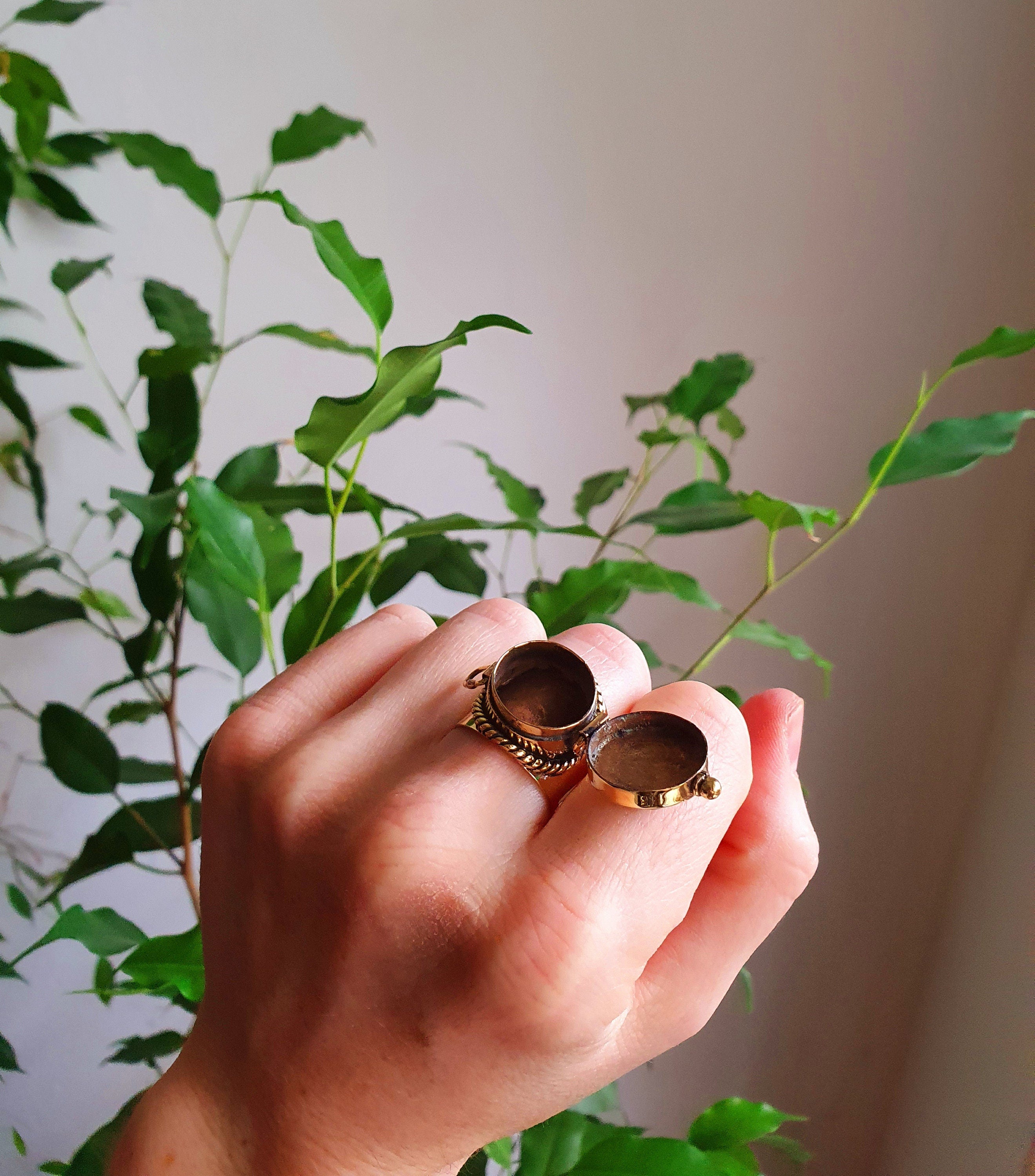 Rings like this have been used throughout history to carry perfume, locks of hair, devotional relics, messages and other keepsakes, so they have also been known by other names. Artists would paint tiny portraits of loved ones, to be carried in what was called a “locket ring,” which was popular during the Renaissance. By the 17th century, jewelers were creating locket rings in the shape of caskets which served as mementos for mourners. These were called “funeral rings.” Rings with compartments are also called “box” rings or “socket” rings.