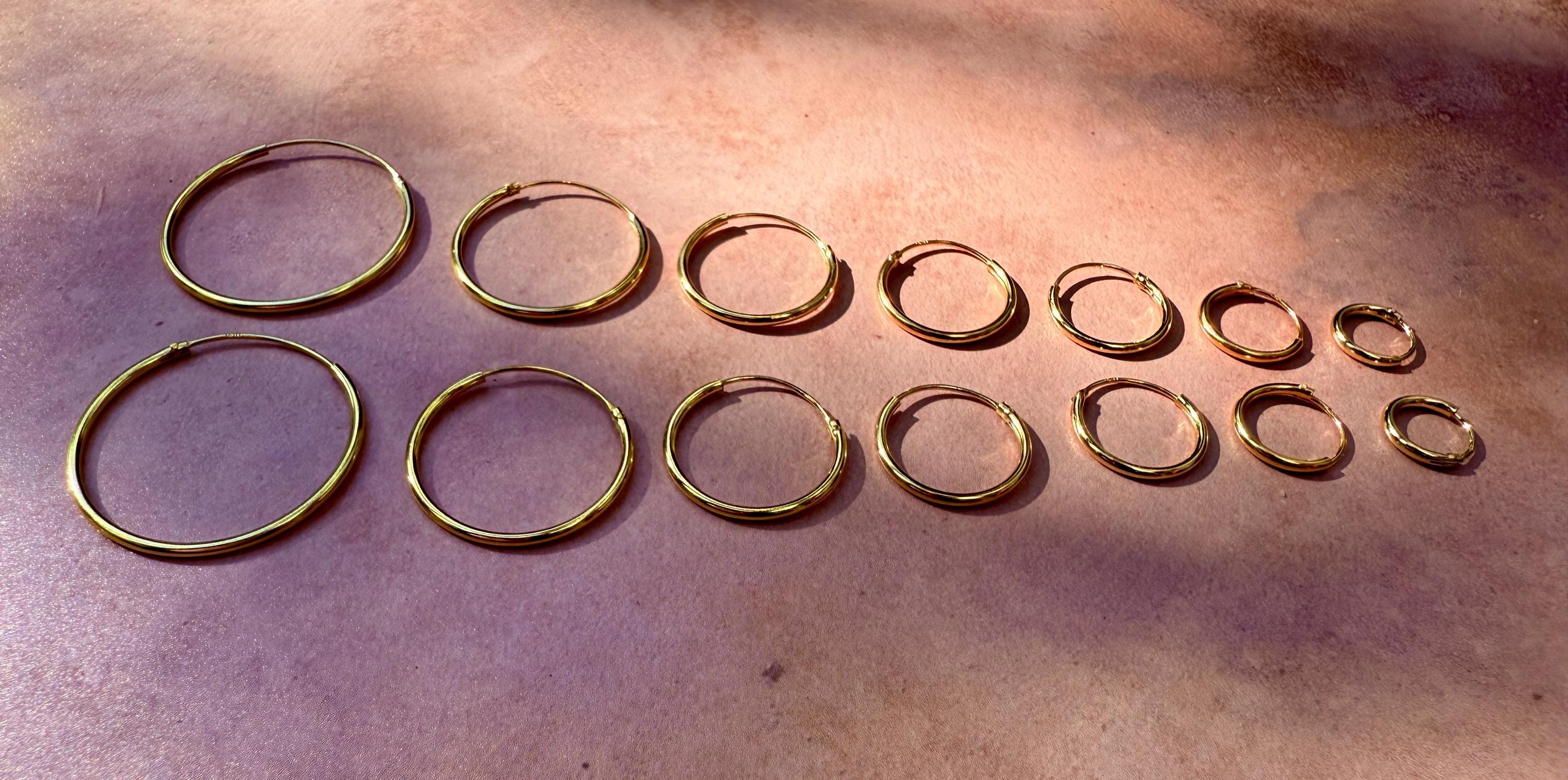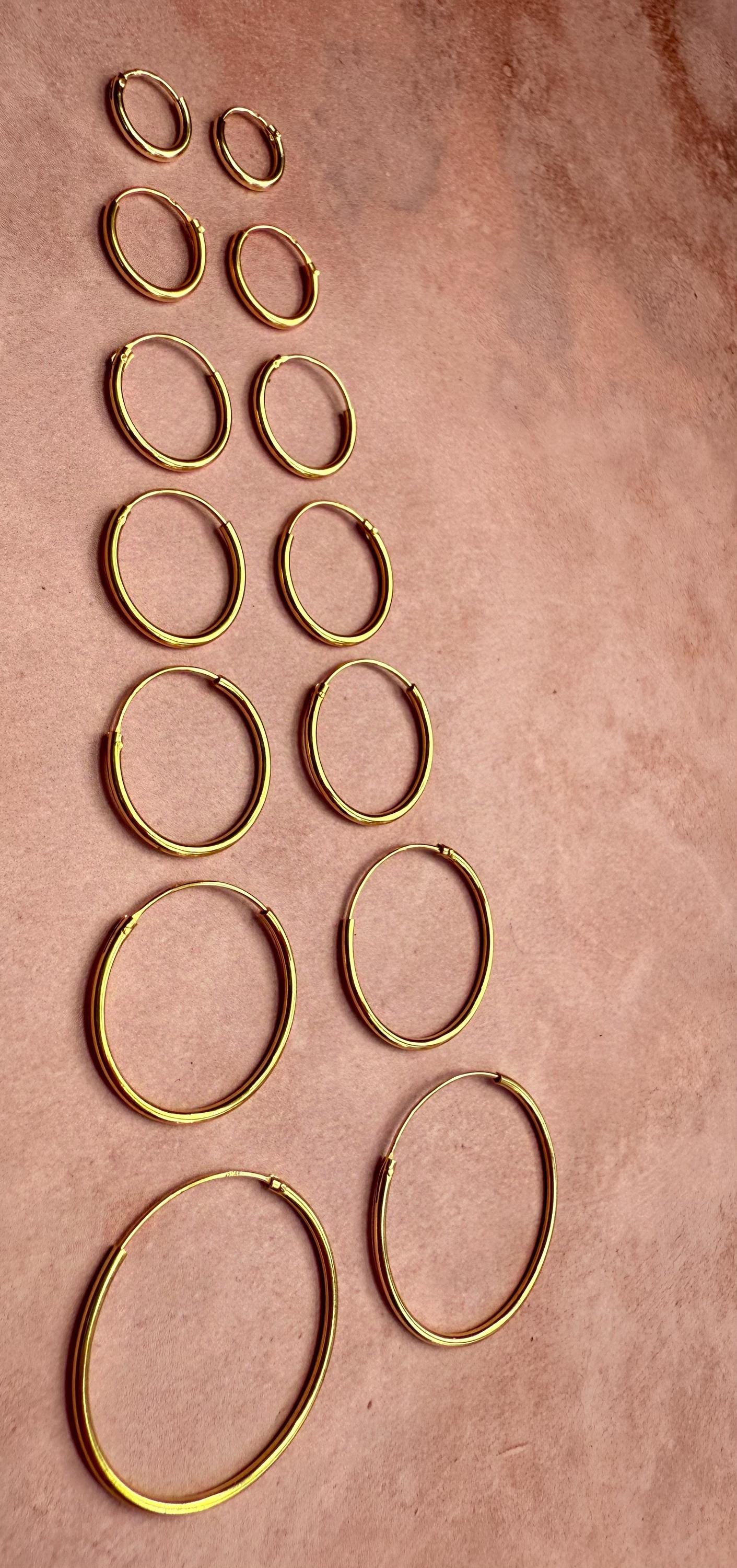 925 Silver Hoops Plated in 14K Gold. Hypoallergenic. Multiple sizes.