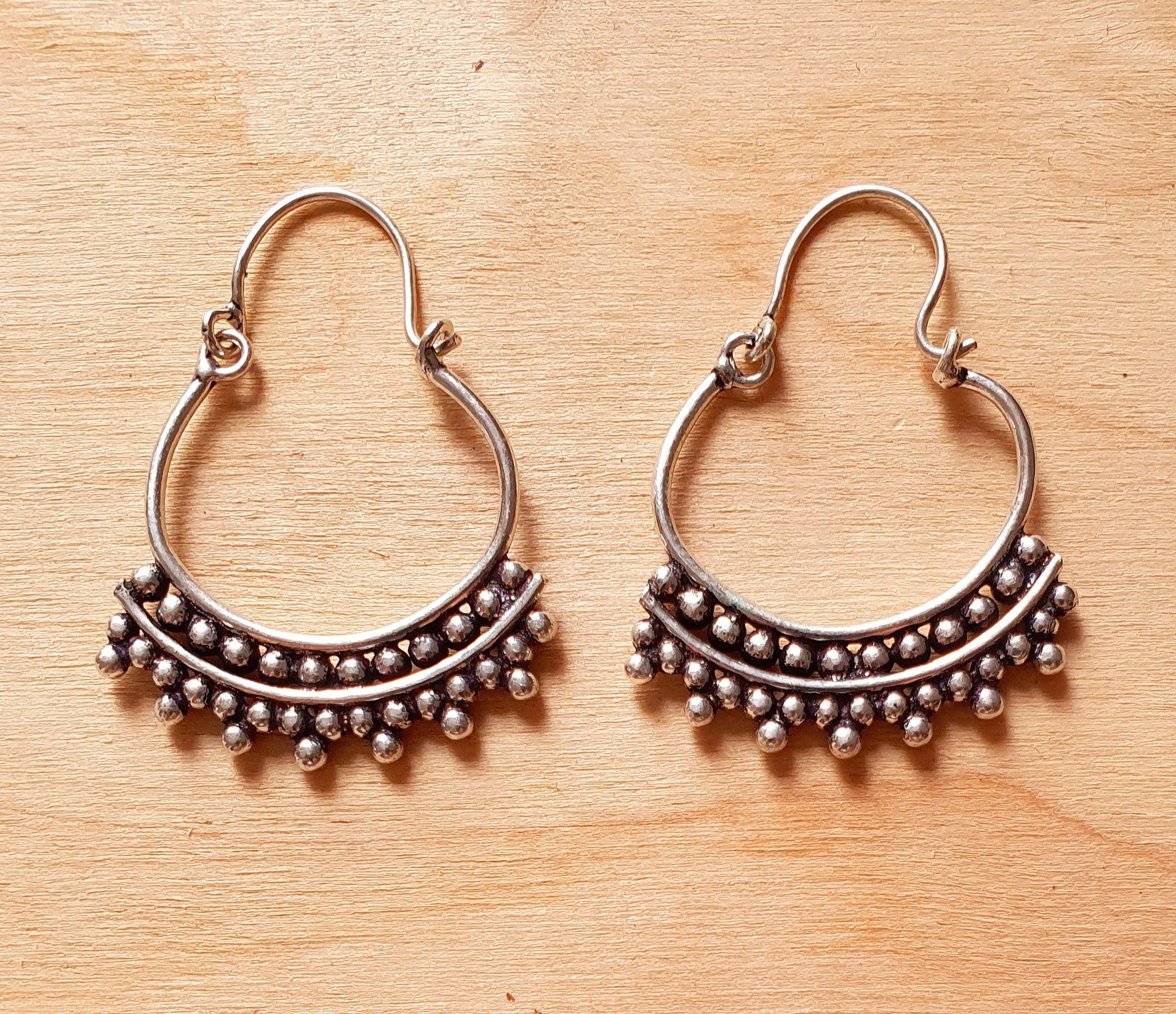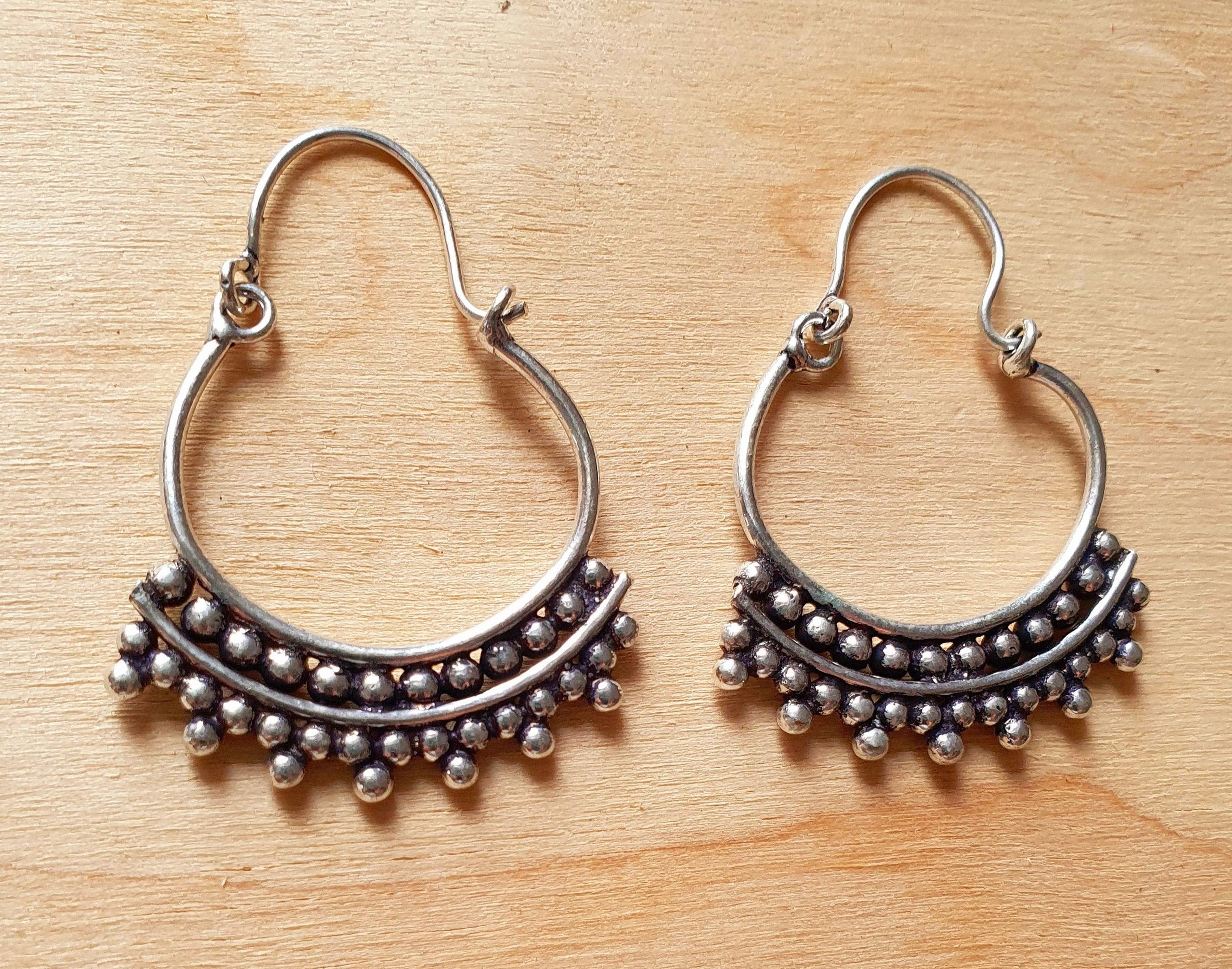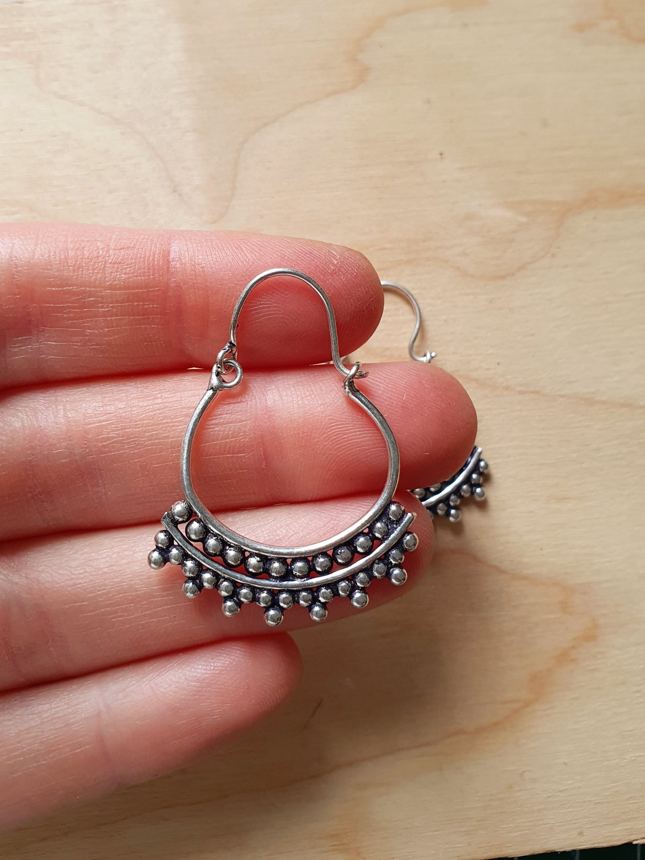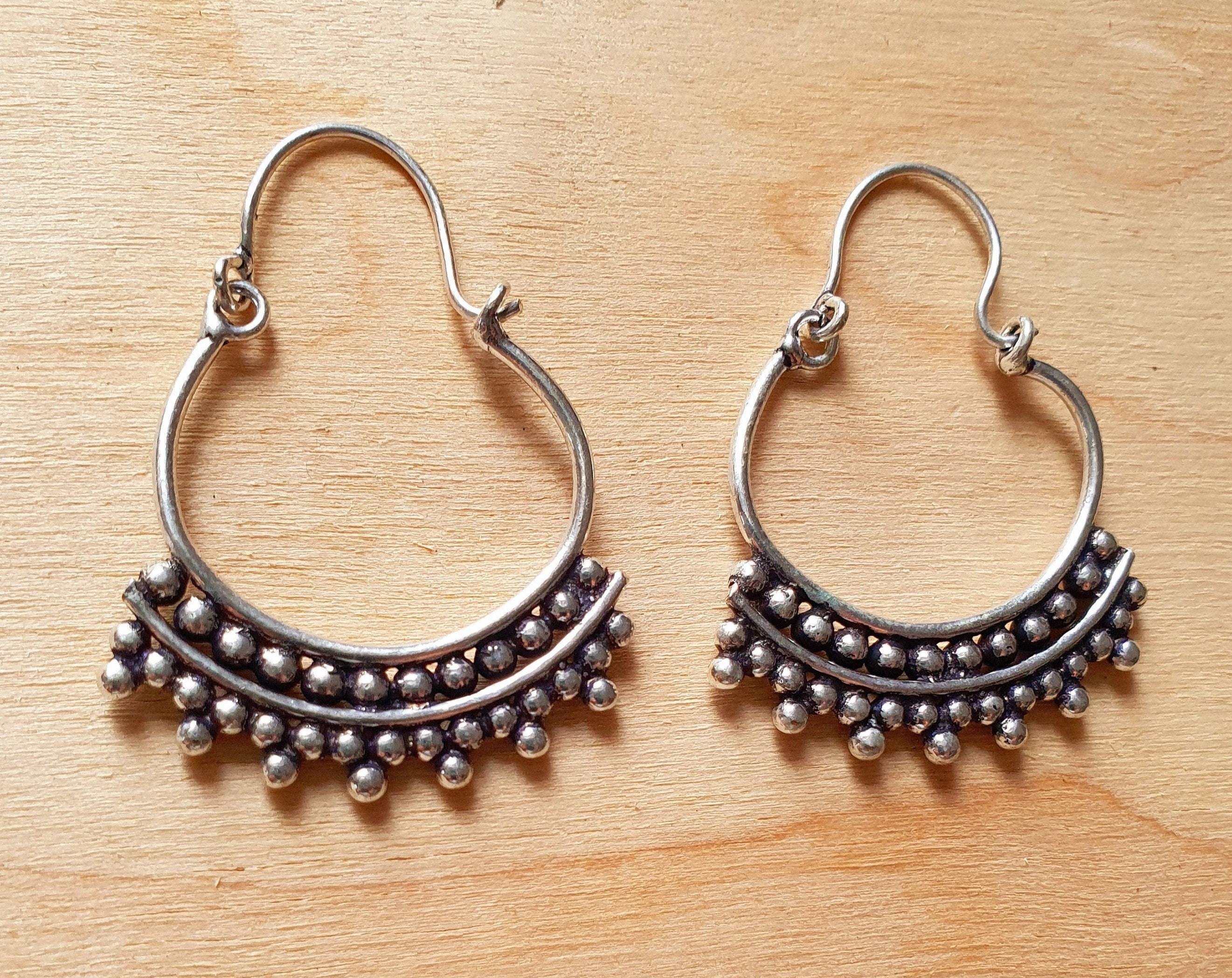 Mini Boho Silver Tribal Hoop Earrings