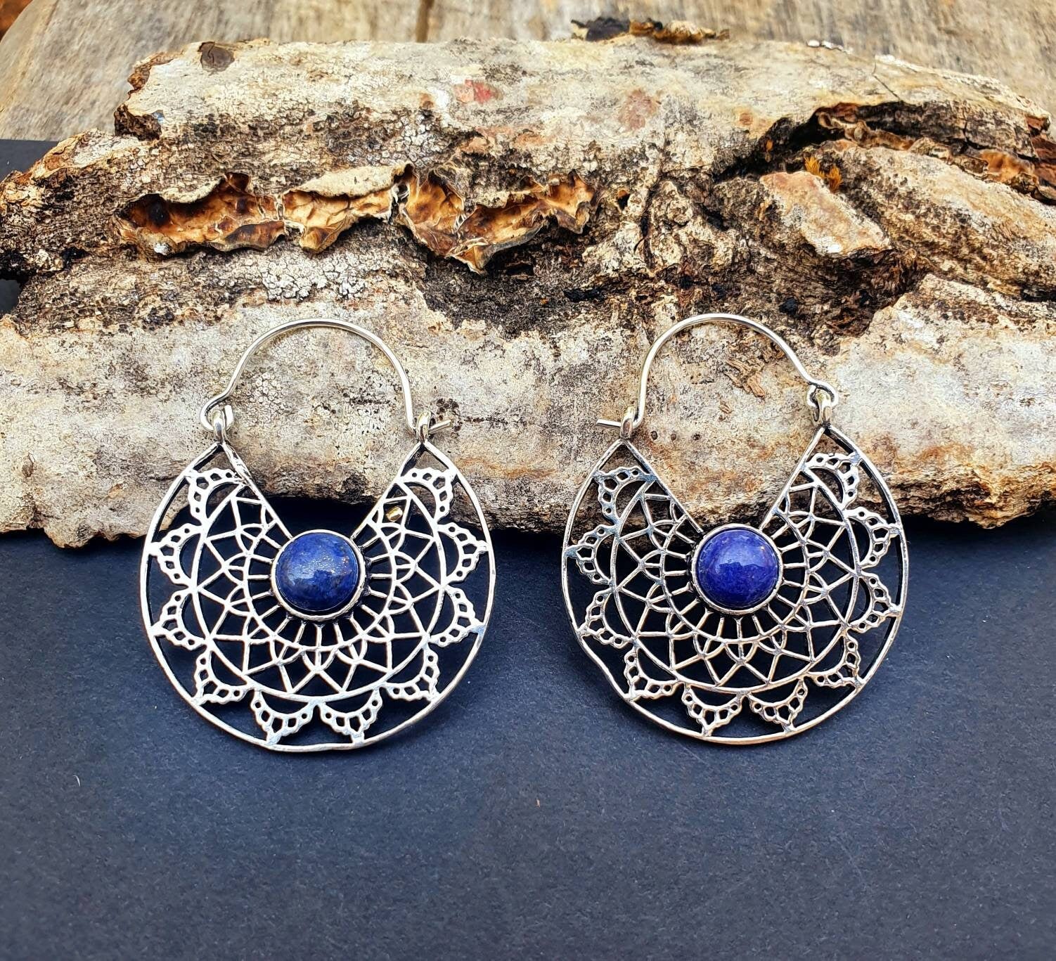 Silver Ethnic Lapis Lazuli Earrings Ethnic