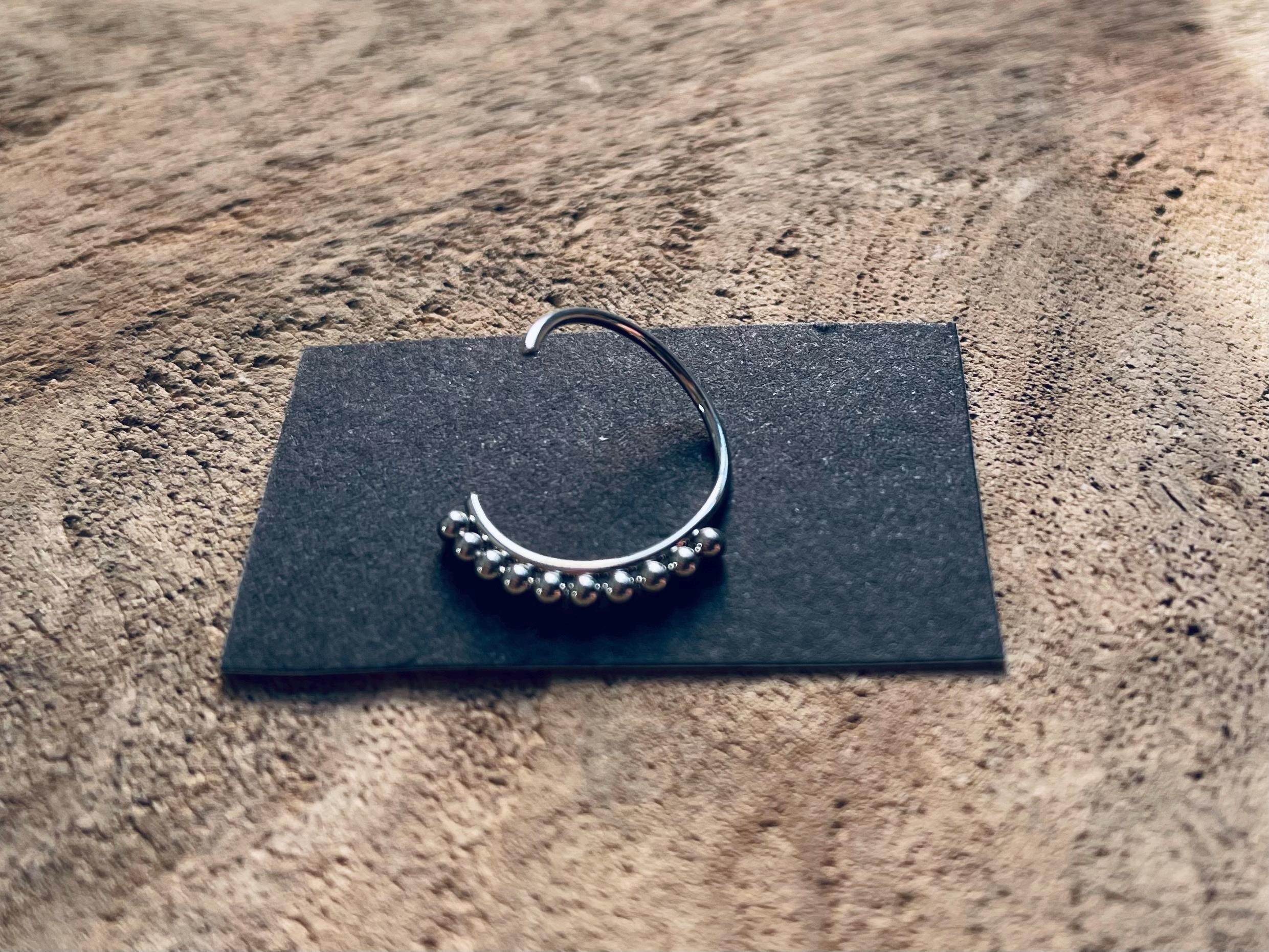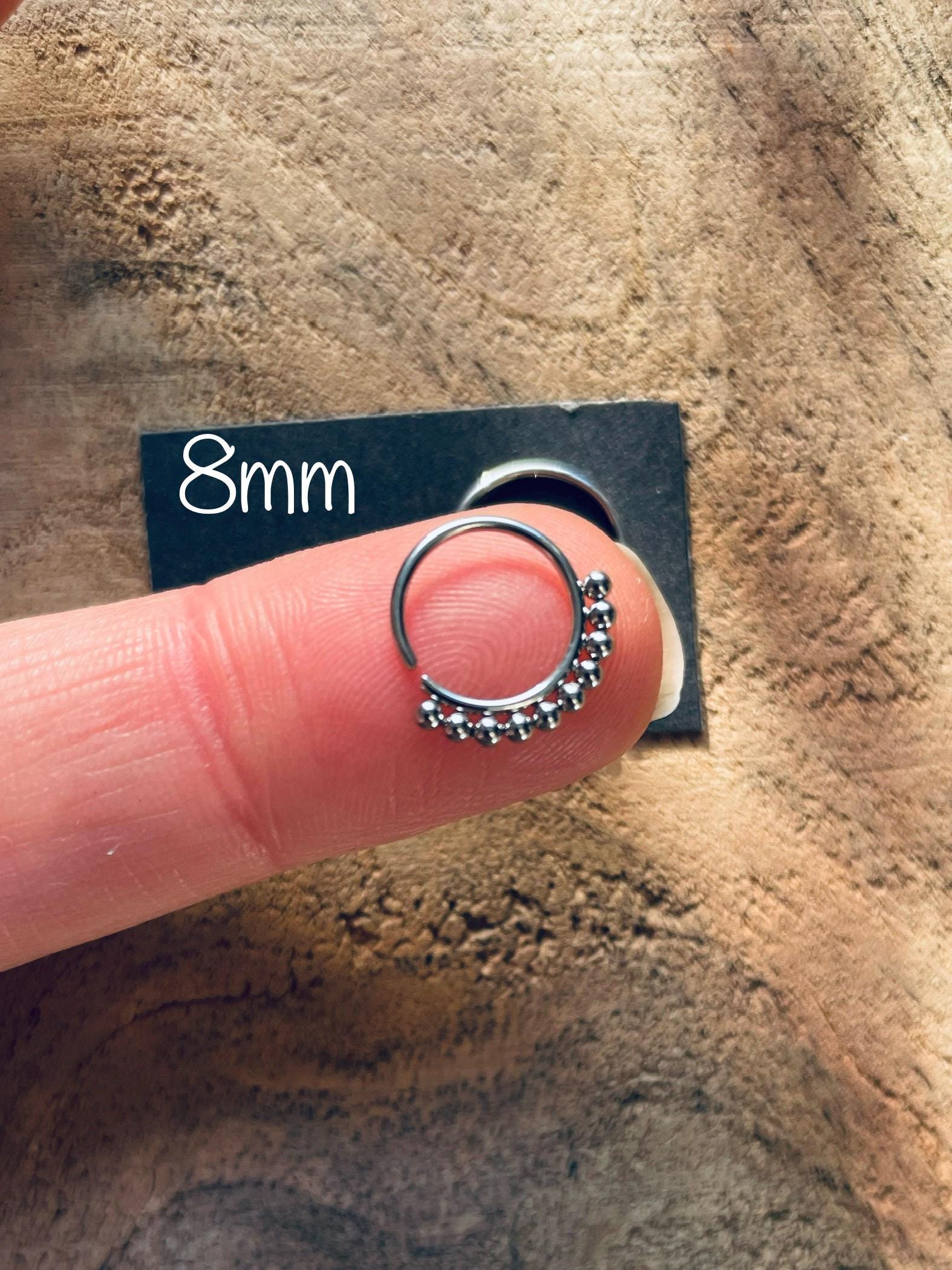 The ring measures 0.8mm wire, with a 8mm or 10mm diameter.