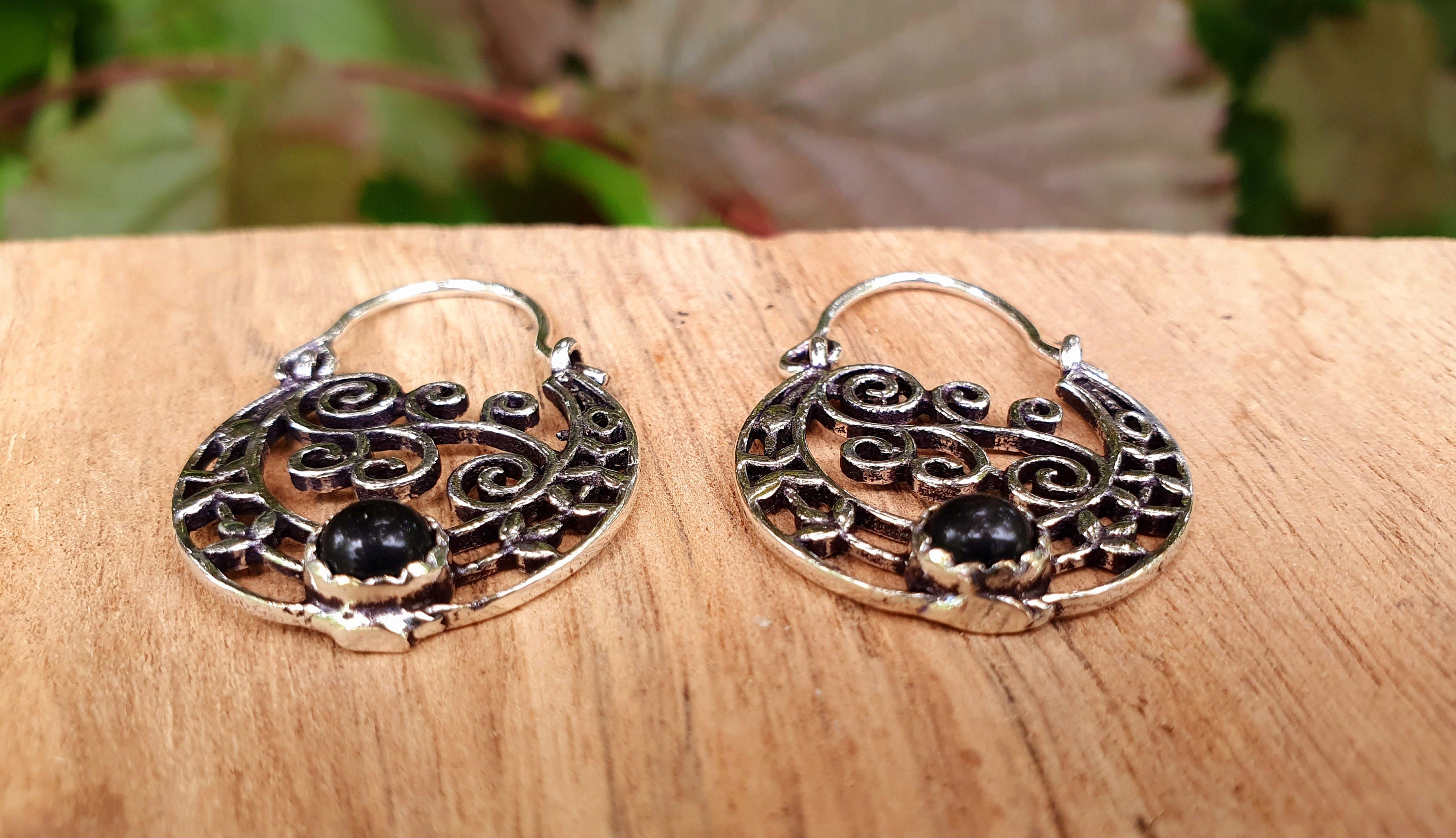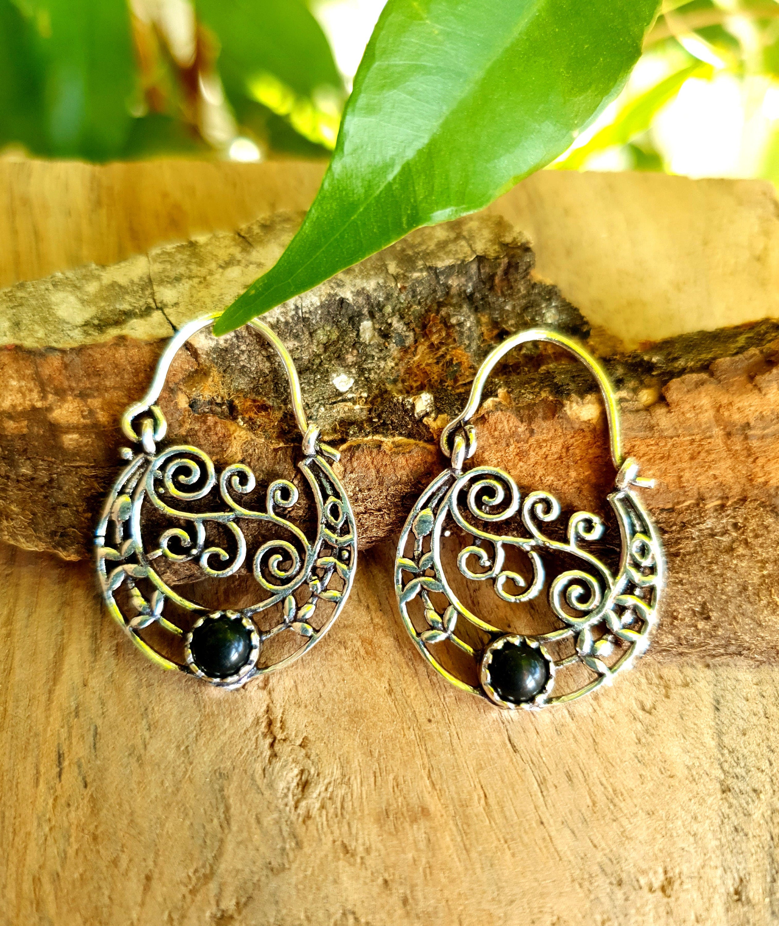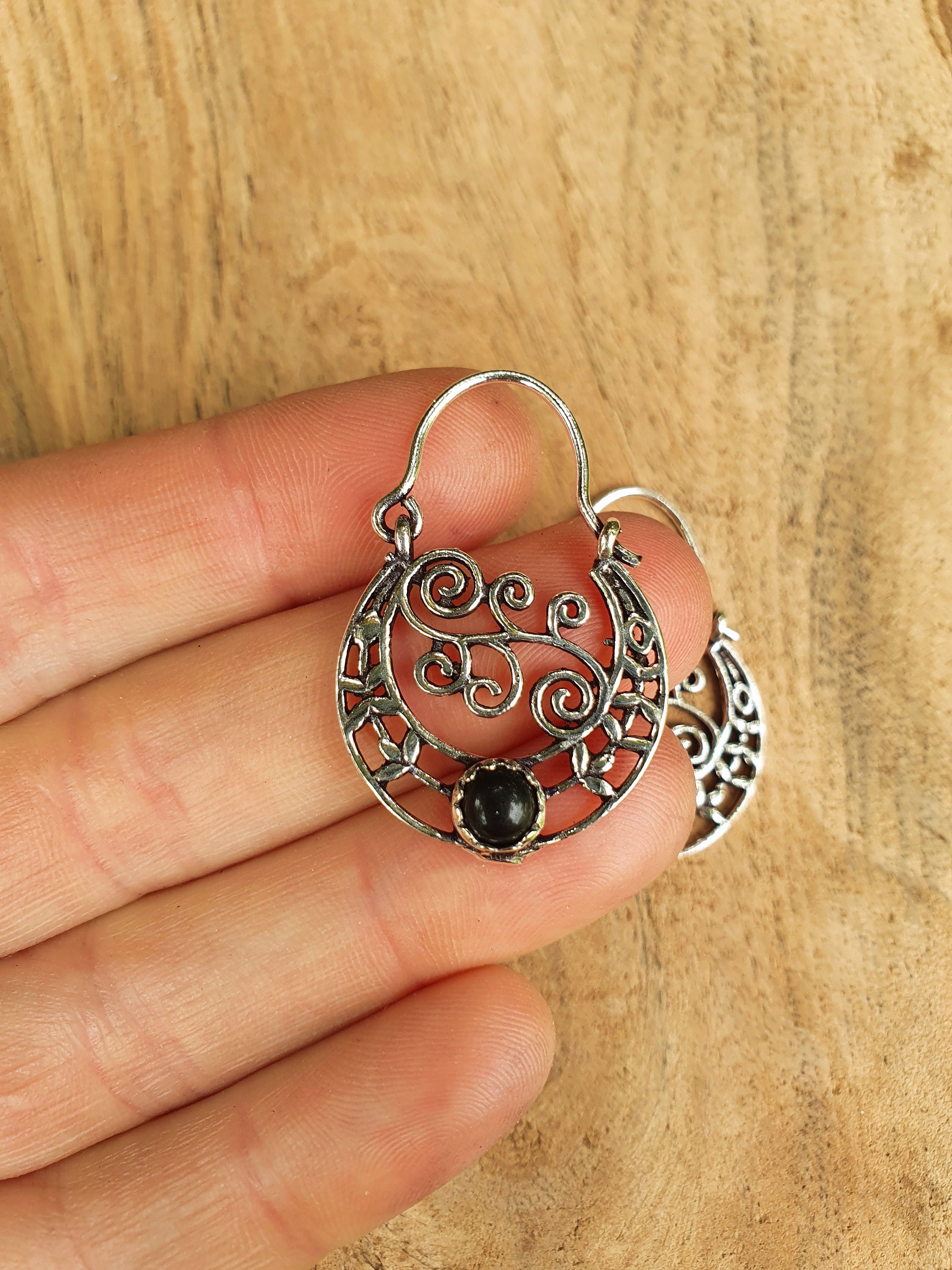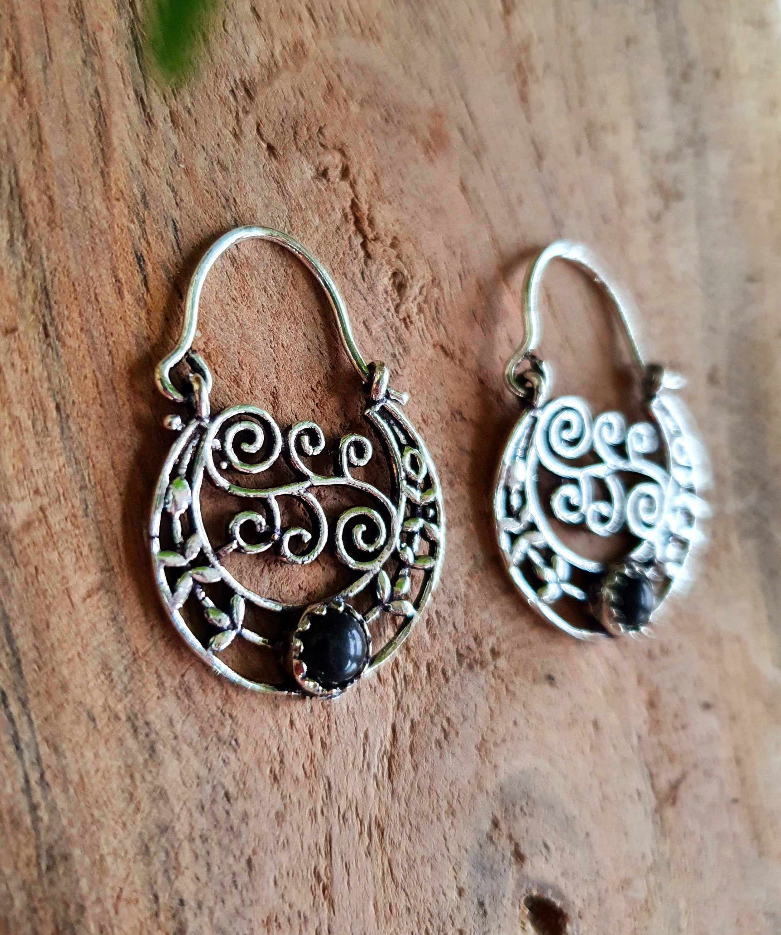 Super cute small boho silver earrings with black onyx stone.