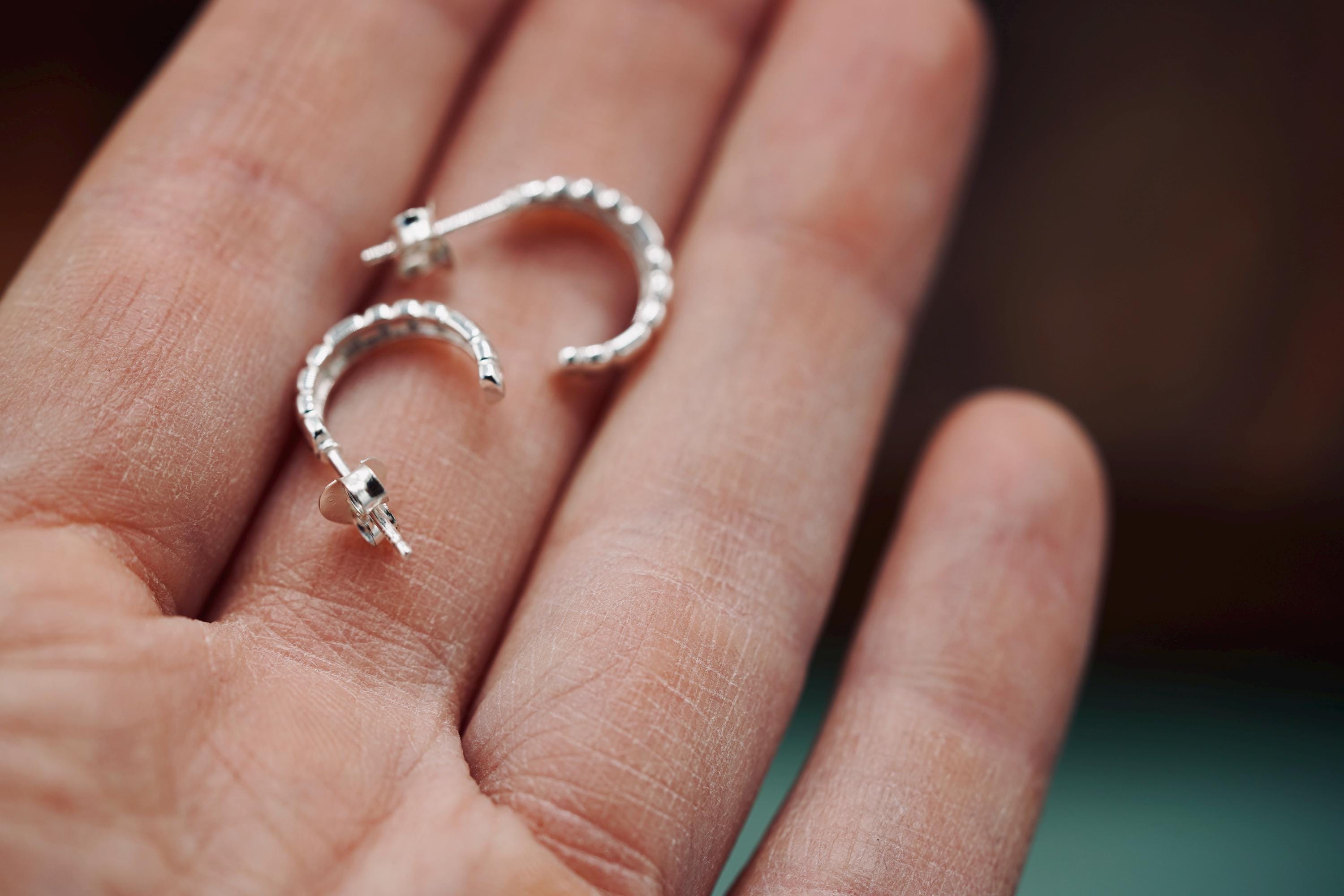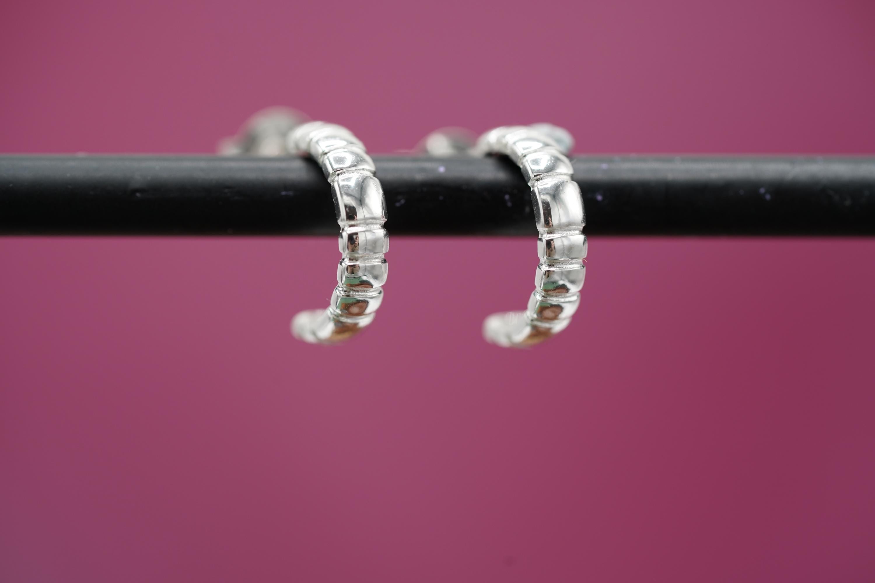 Tiny rigged hoops Textured Pattern Lines in Sterling Silver 925.