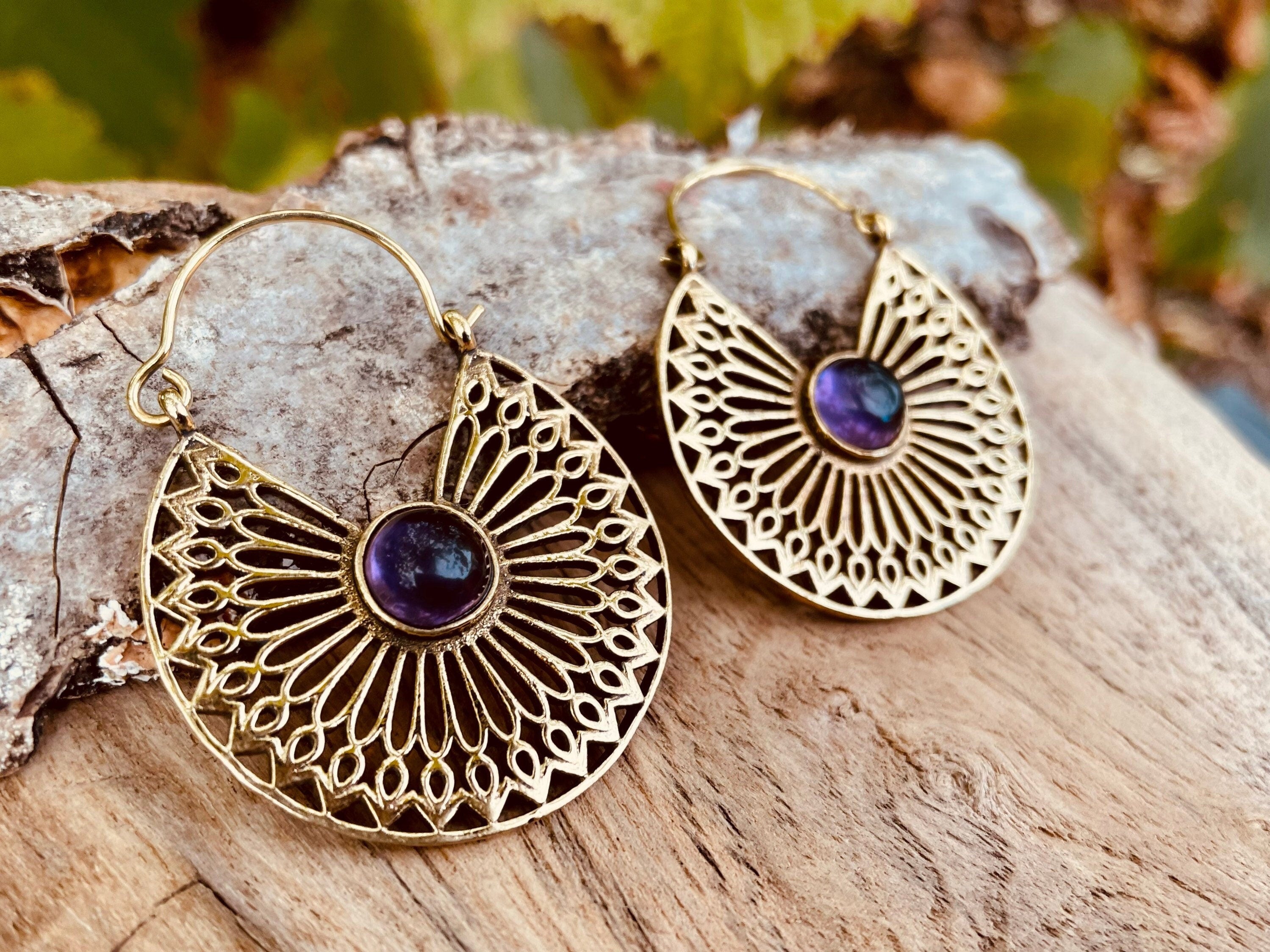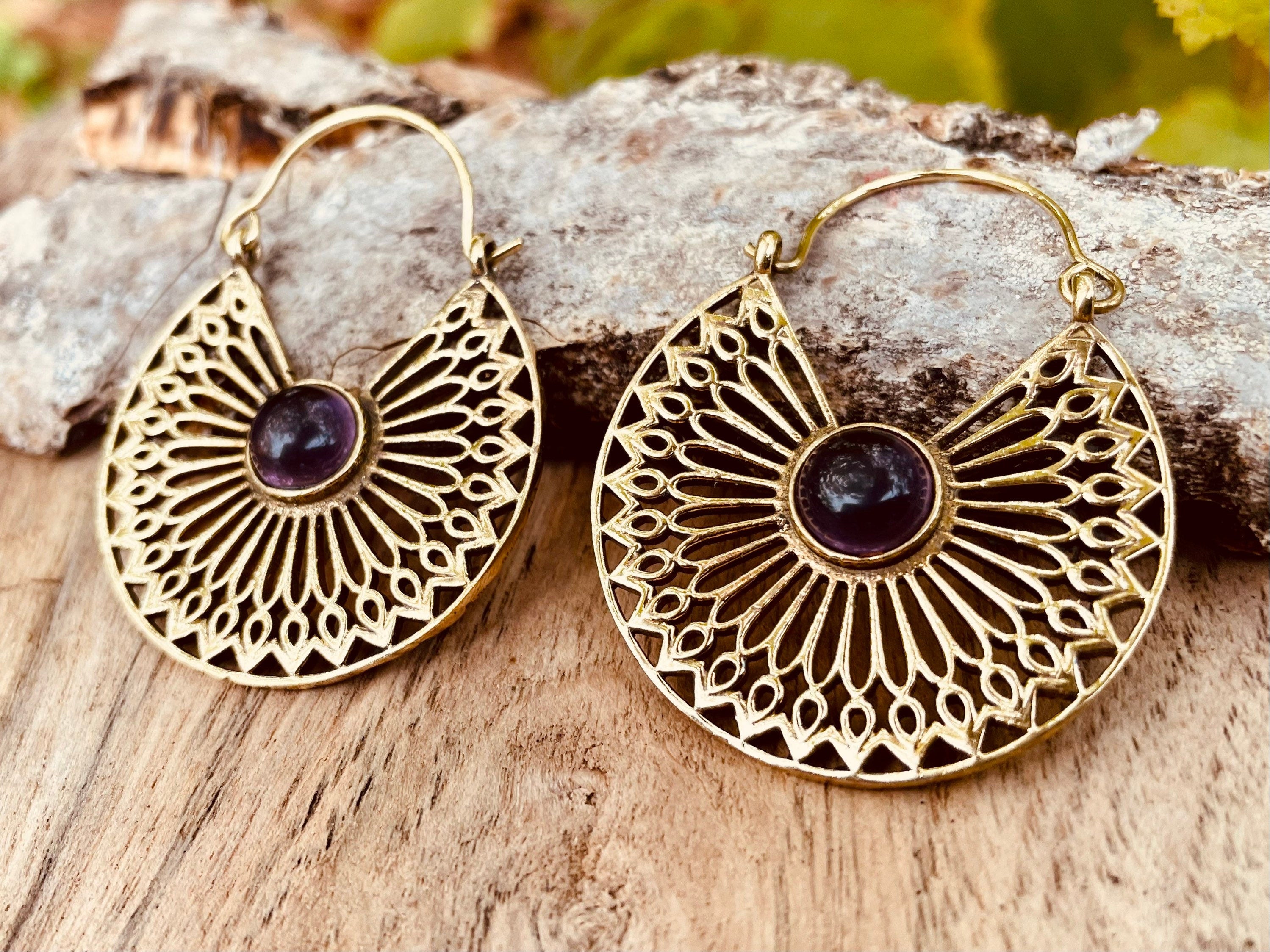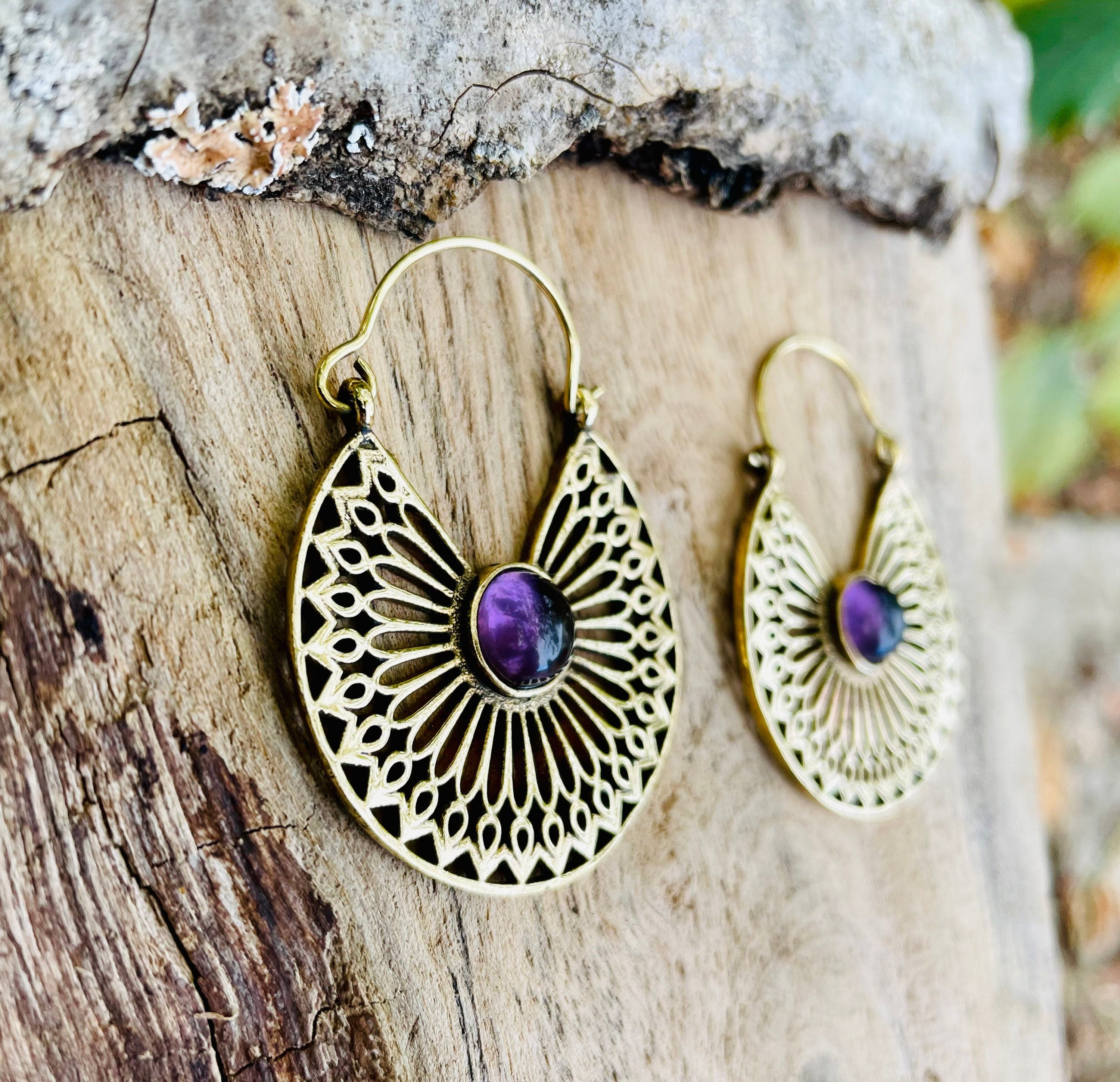 Amethyst Earrings Brass Ethnic