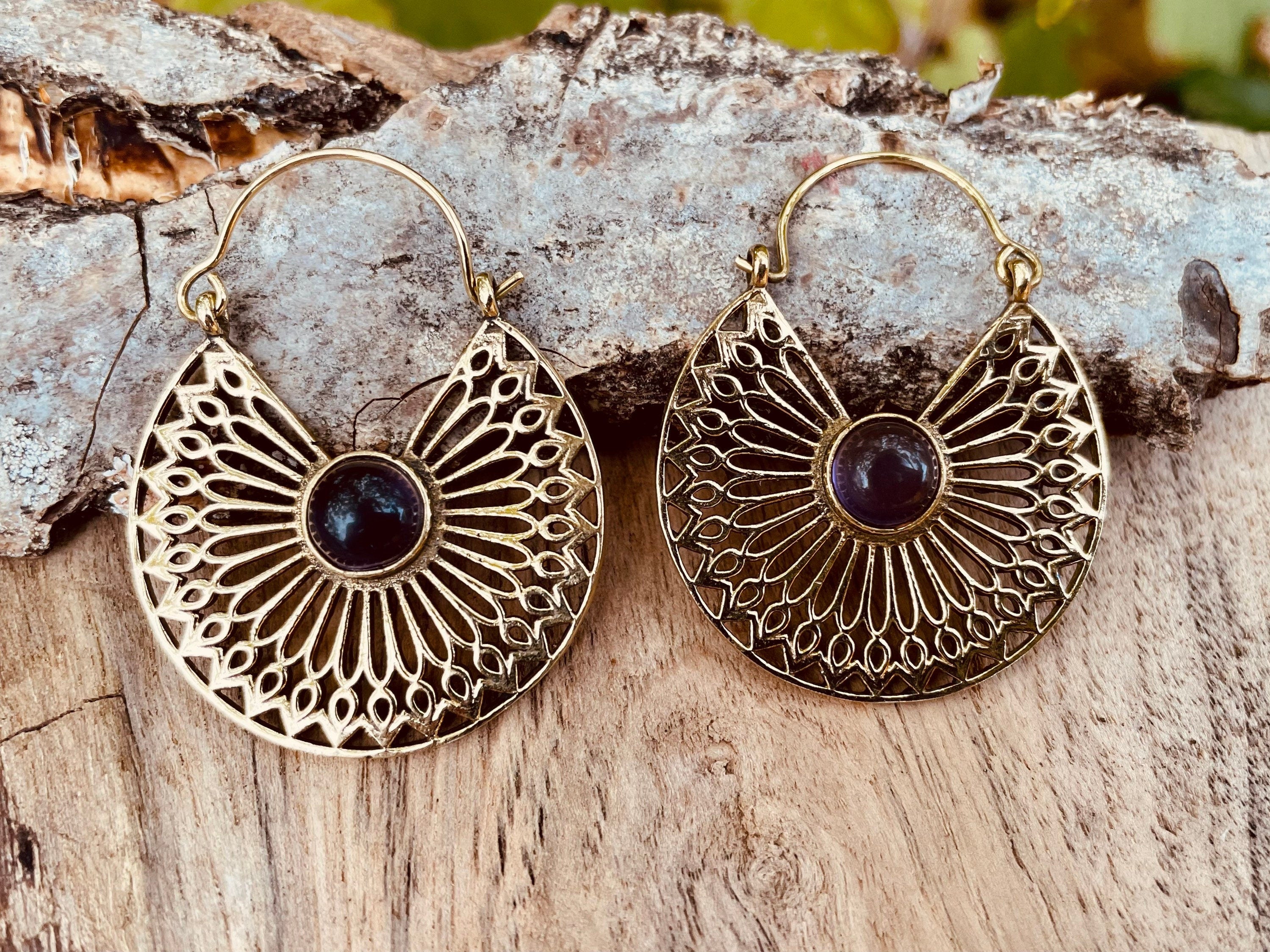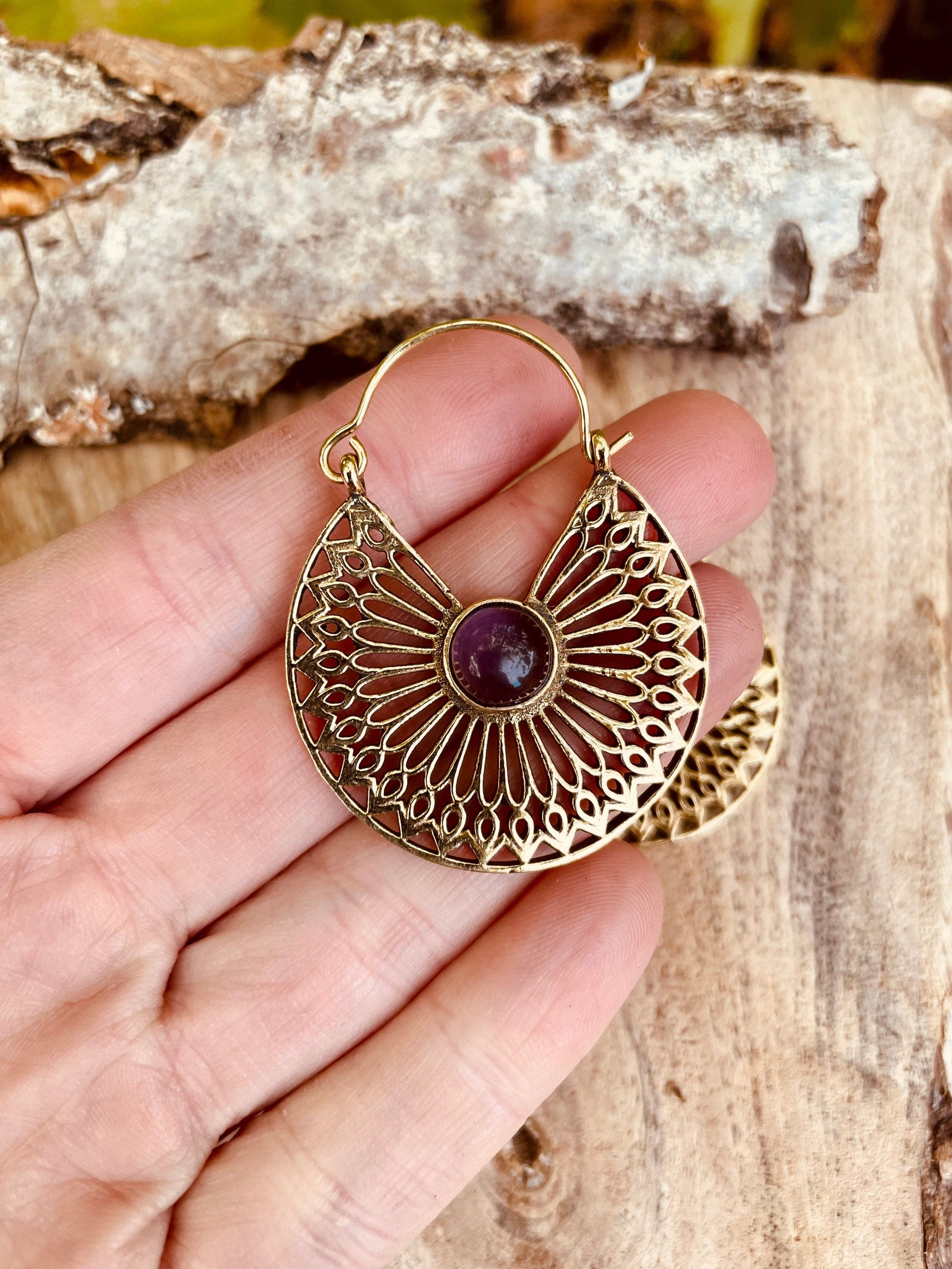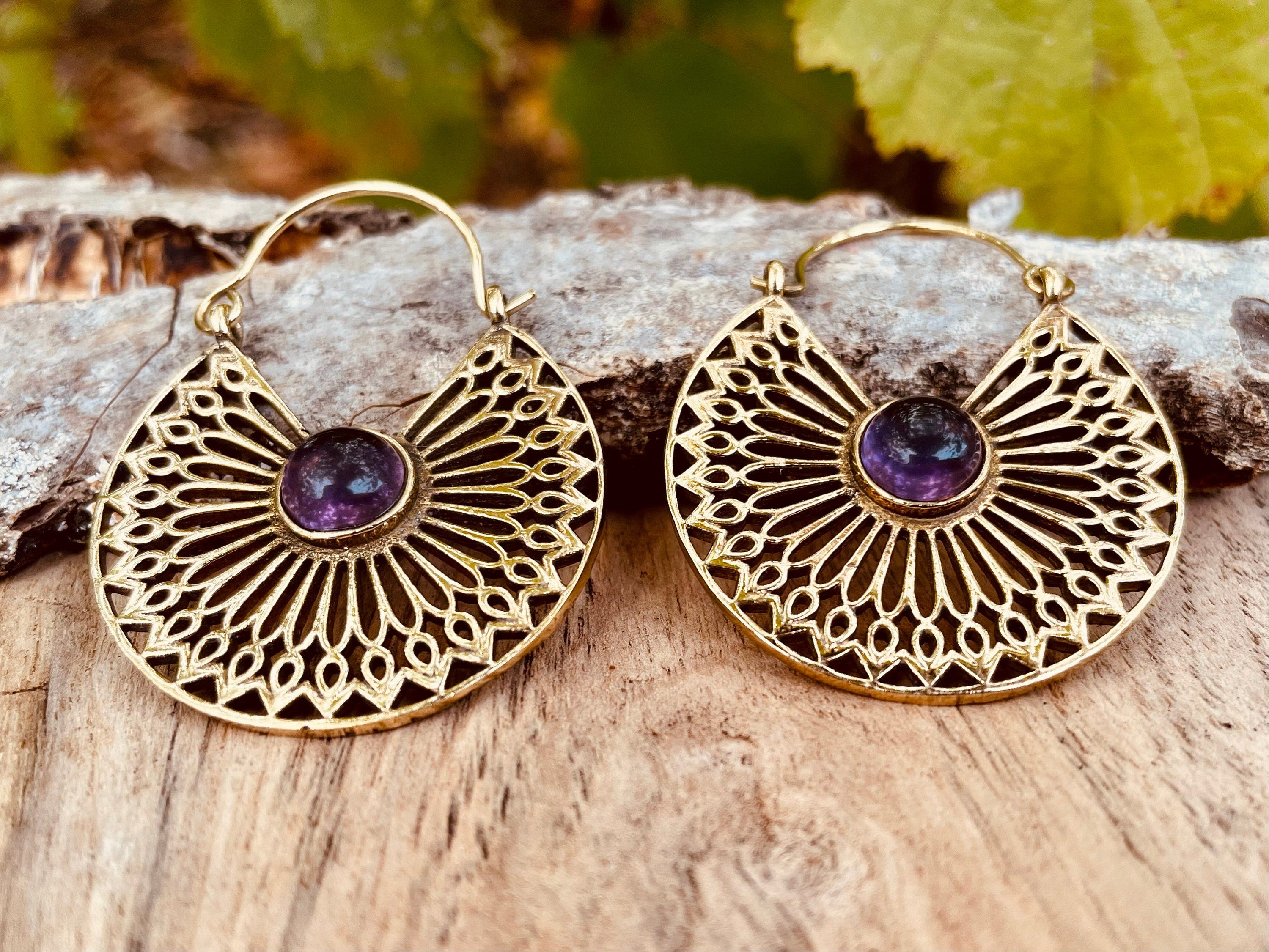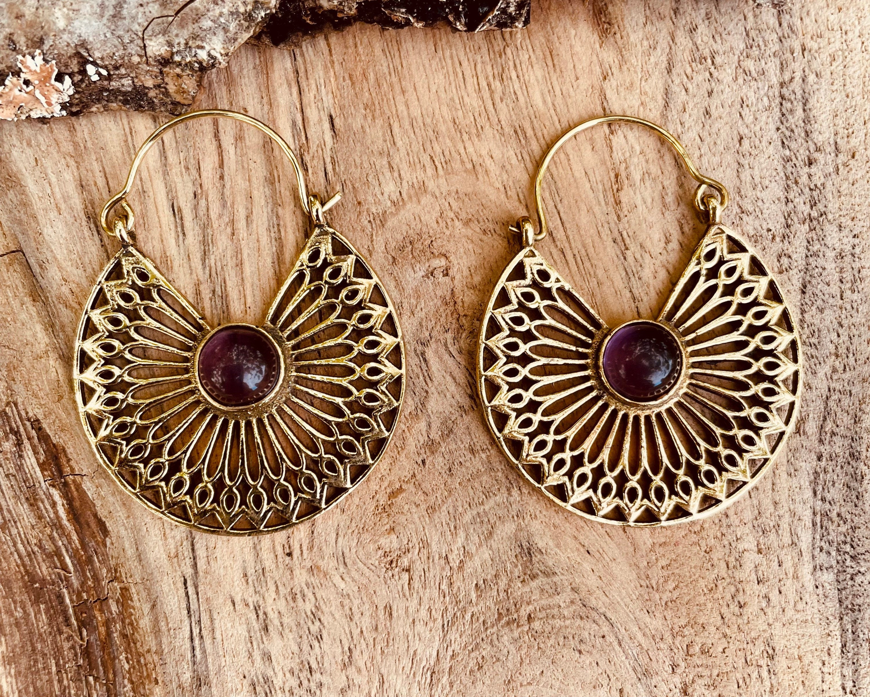 Amethyst Earrings Brass Ethnic