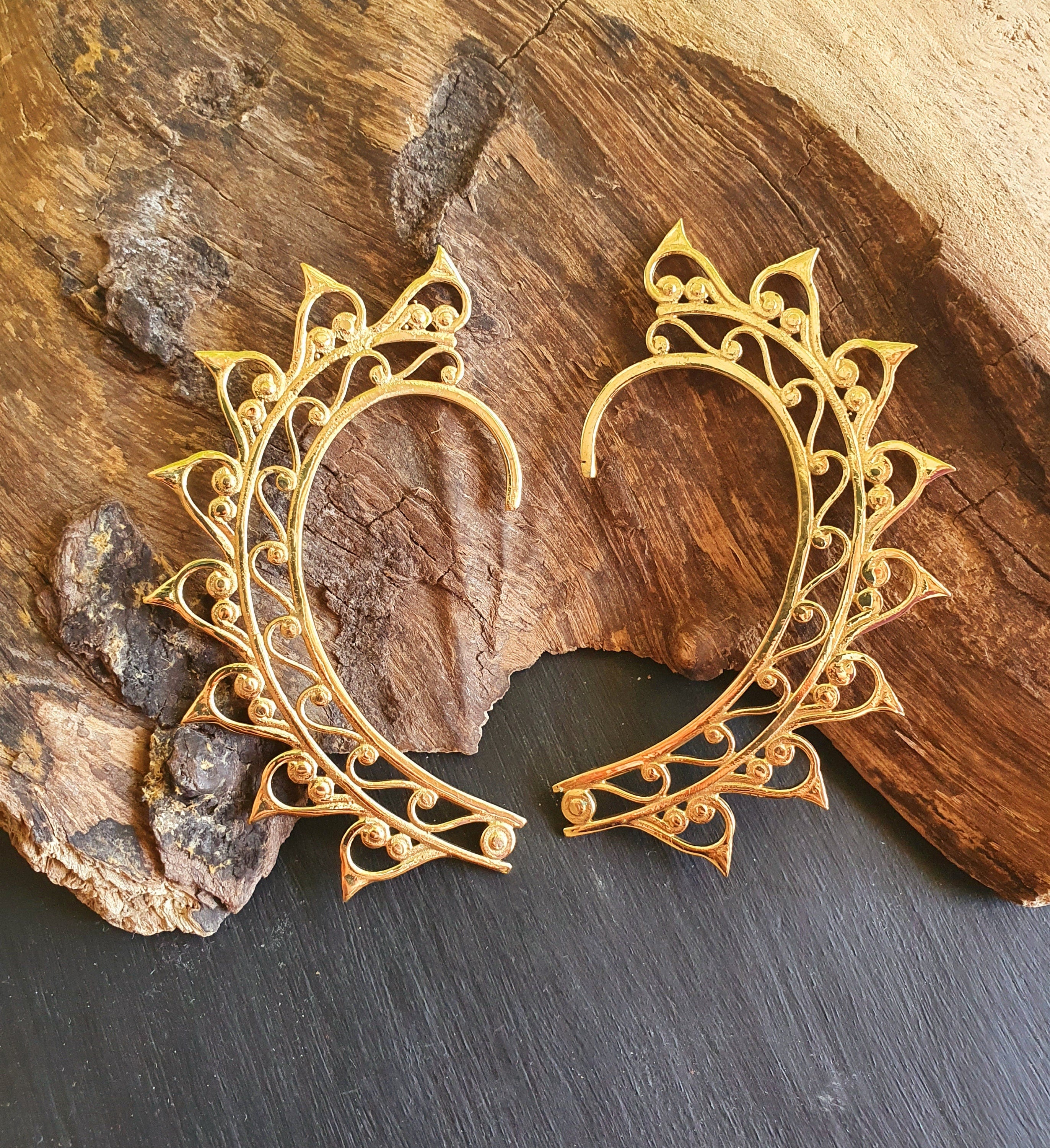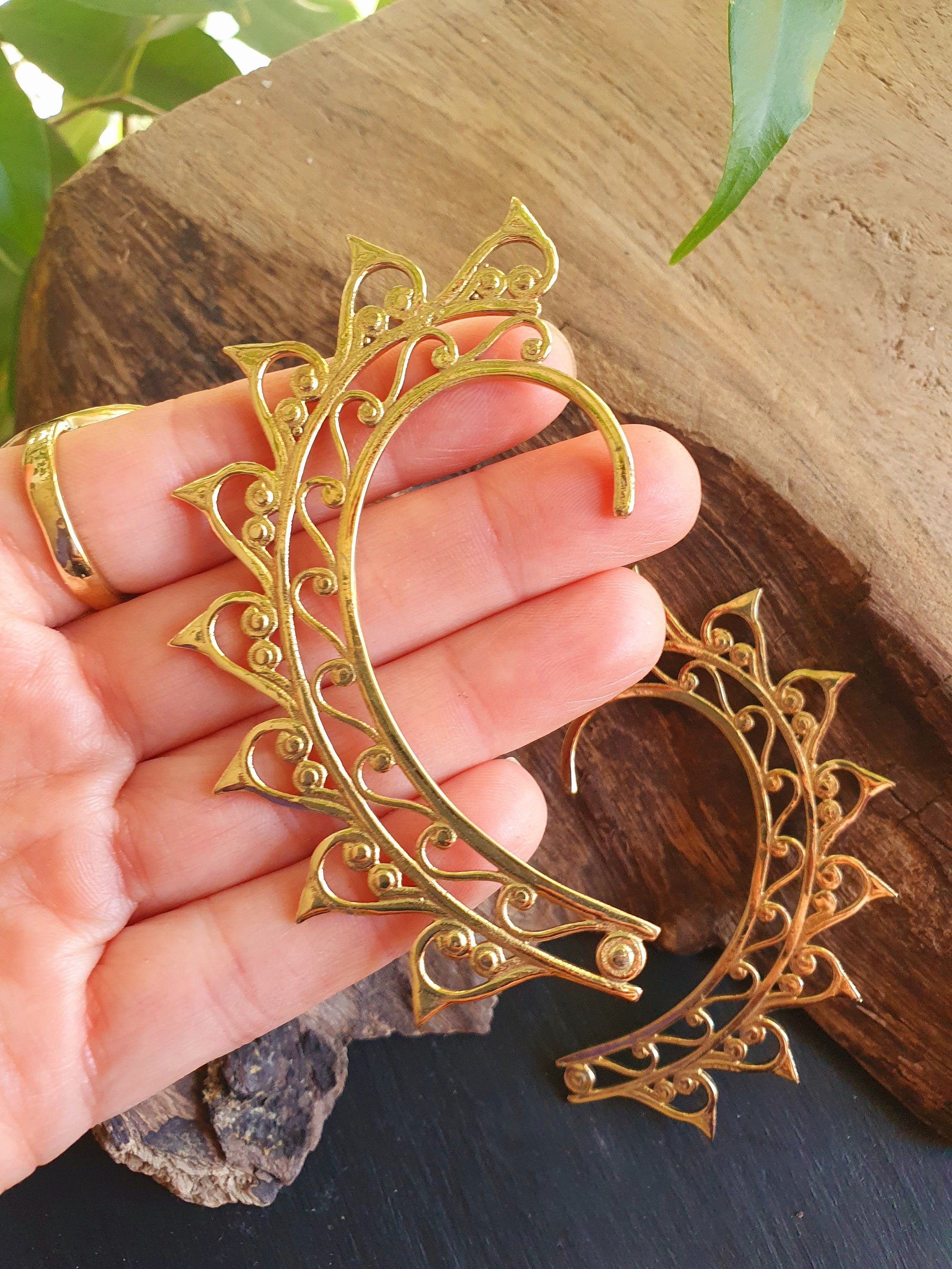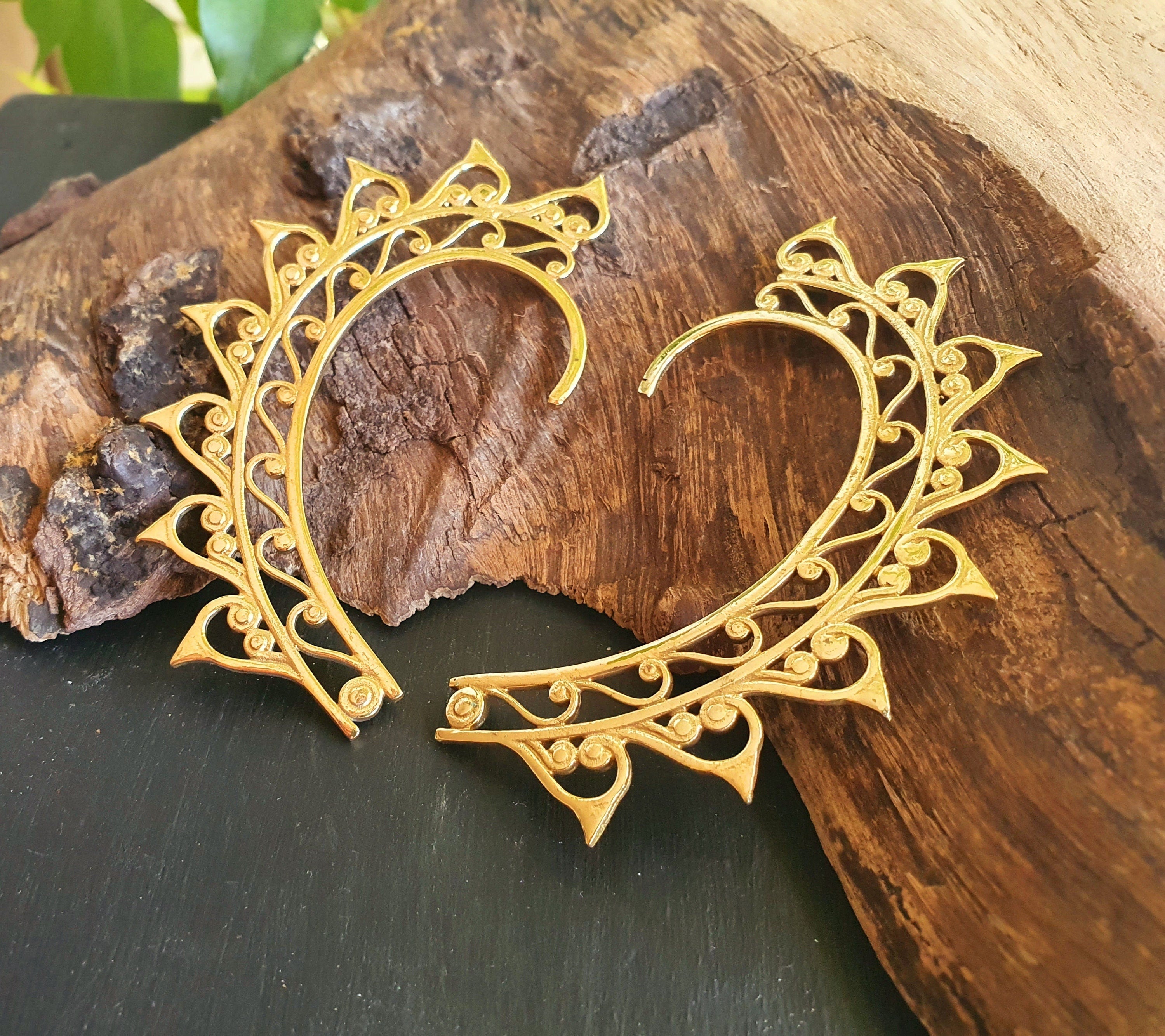 Ear cuff in solid brass with decorative design.