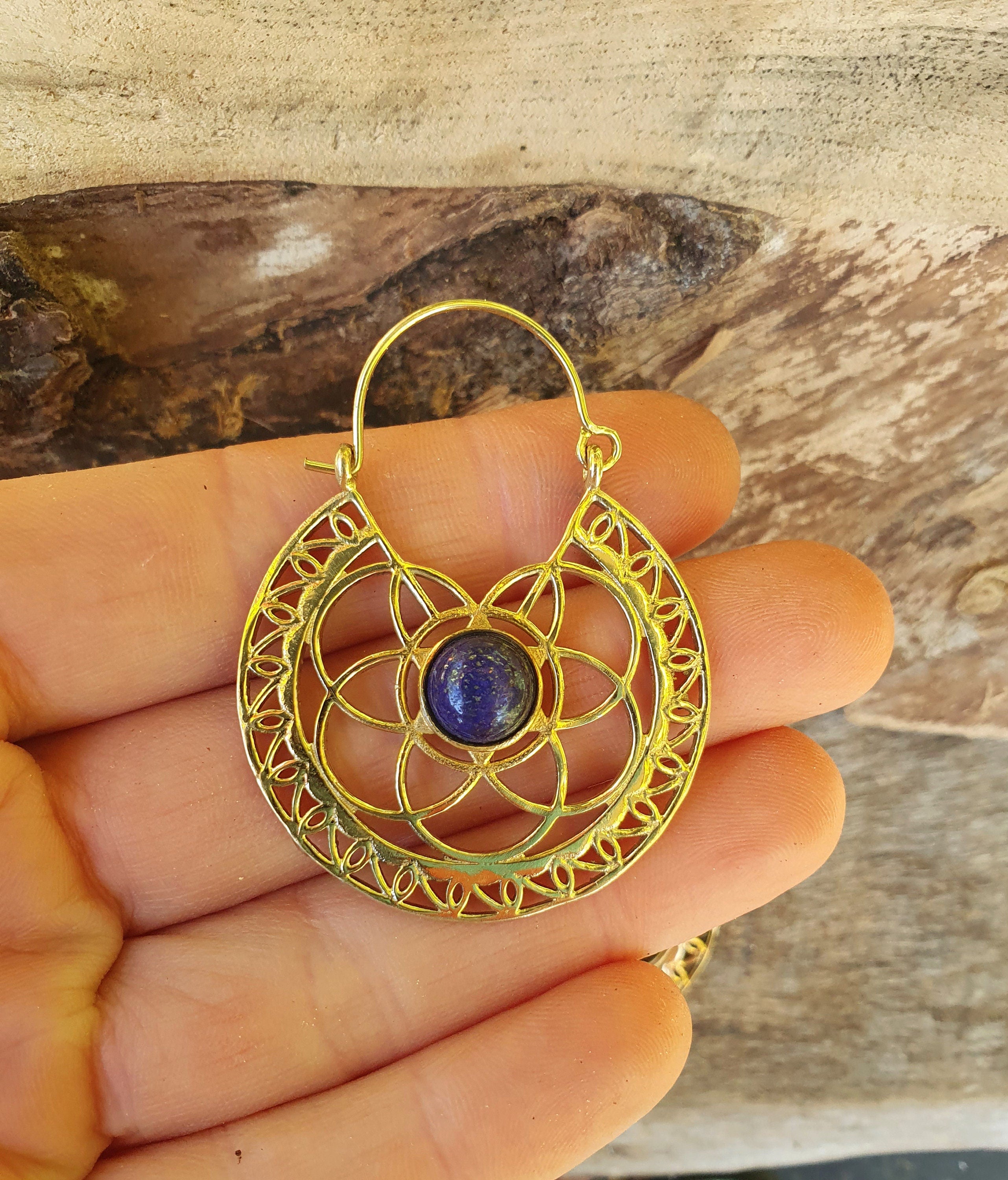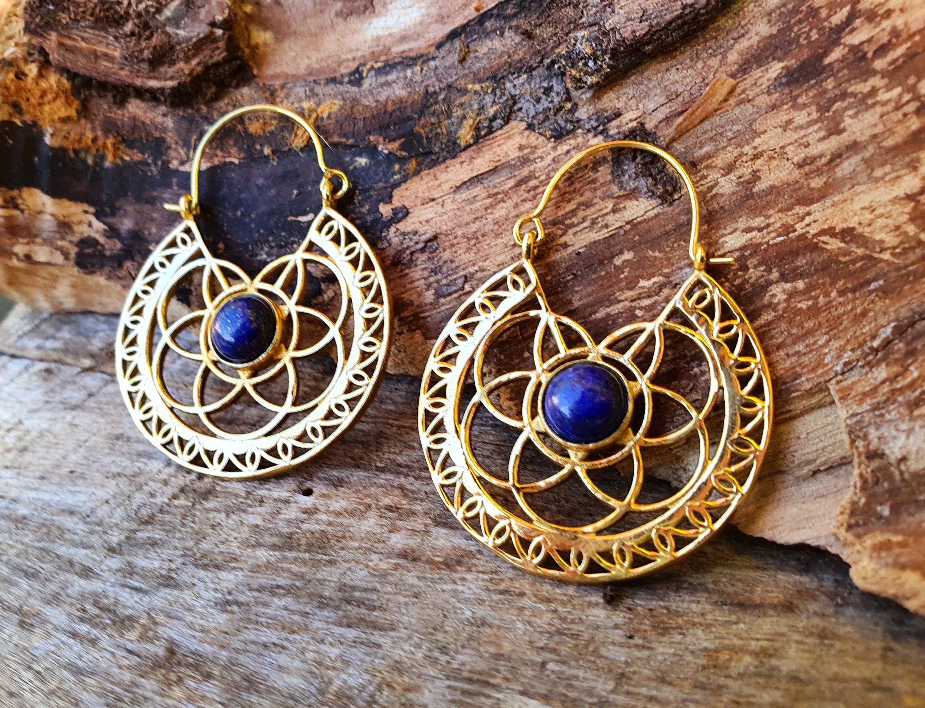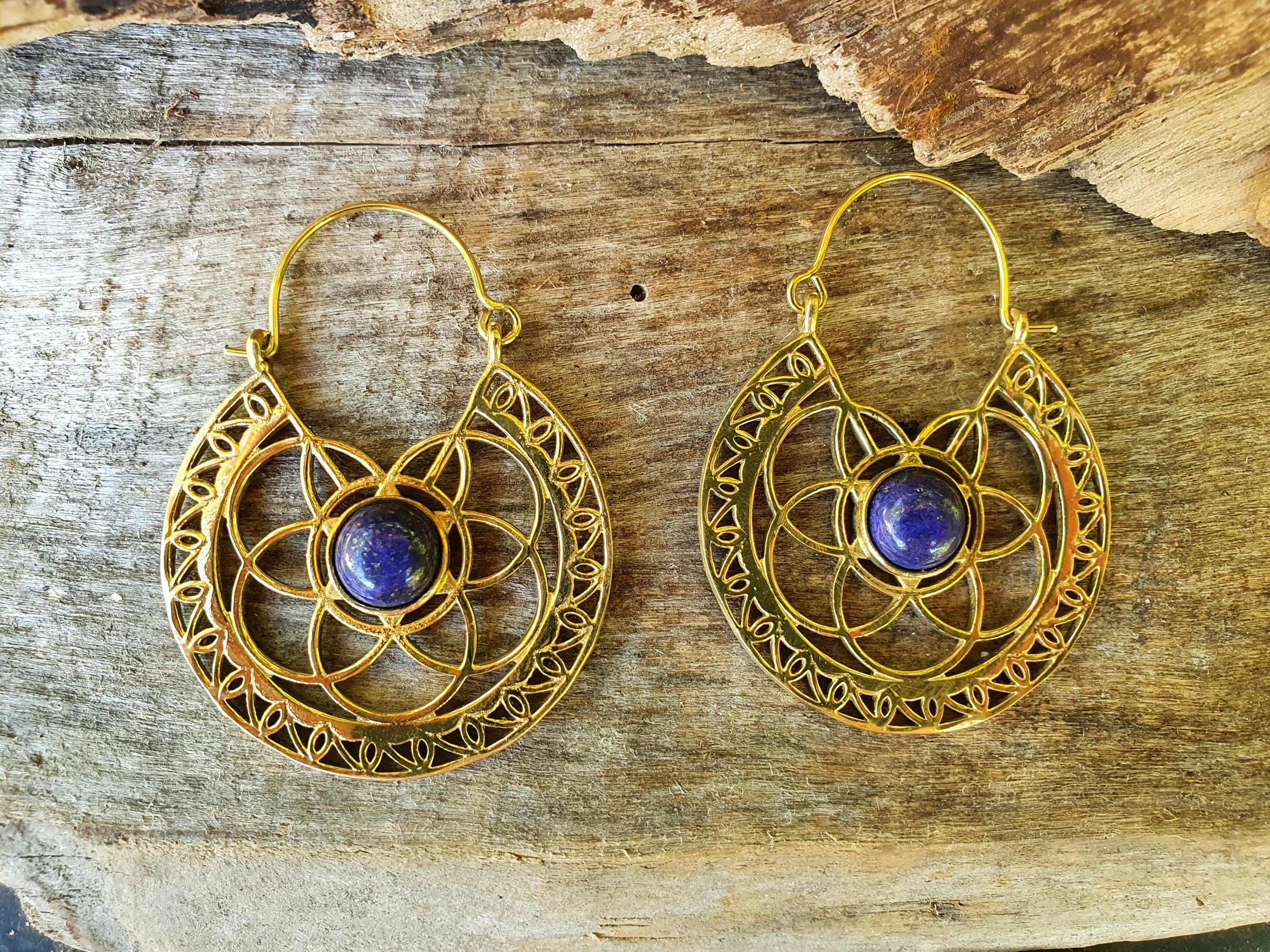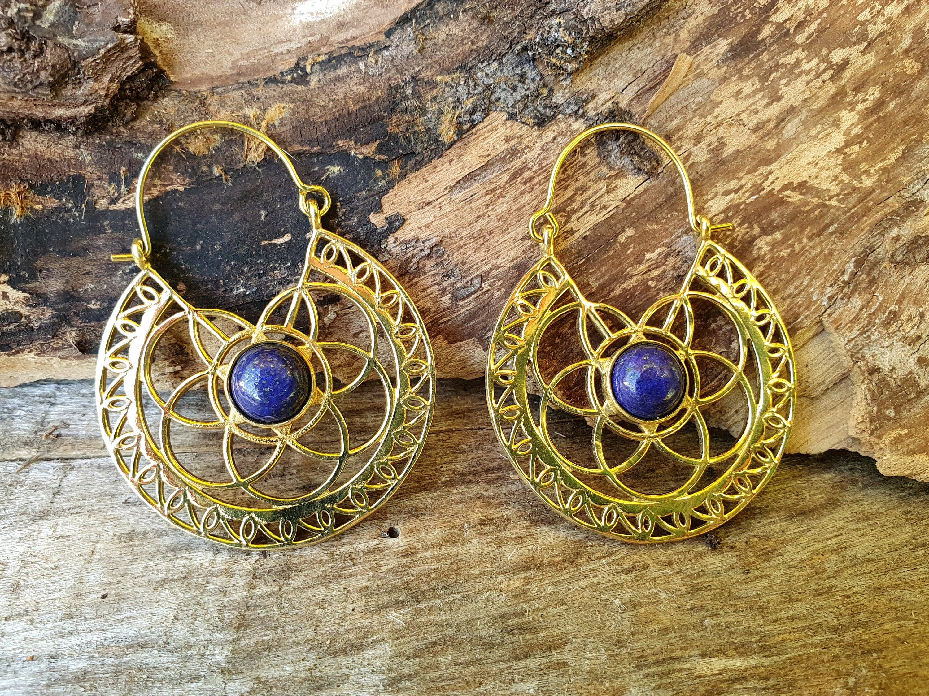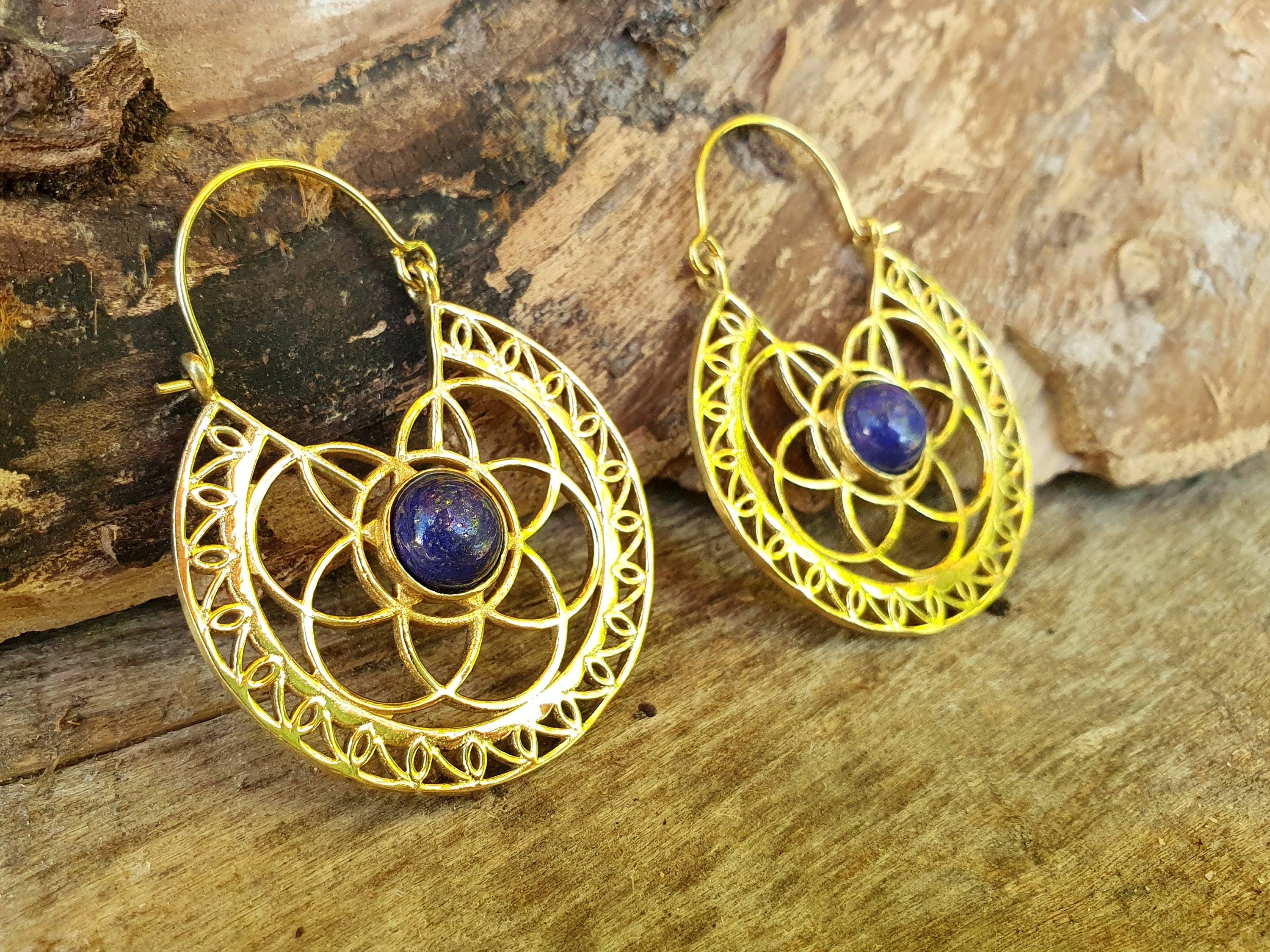 Golden Ethnic Lapis Lazuli Earrings Ethnic