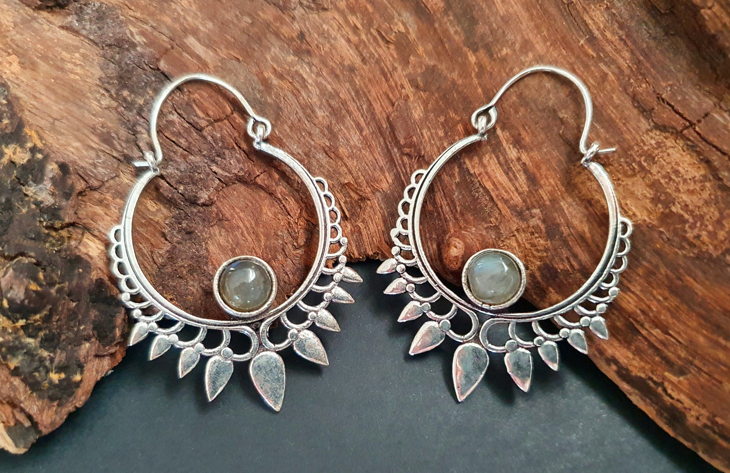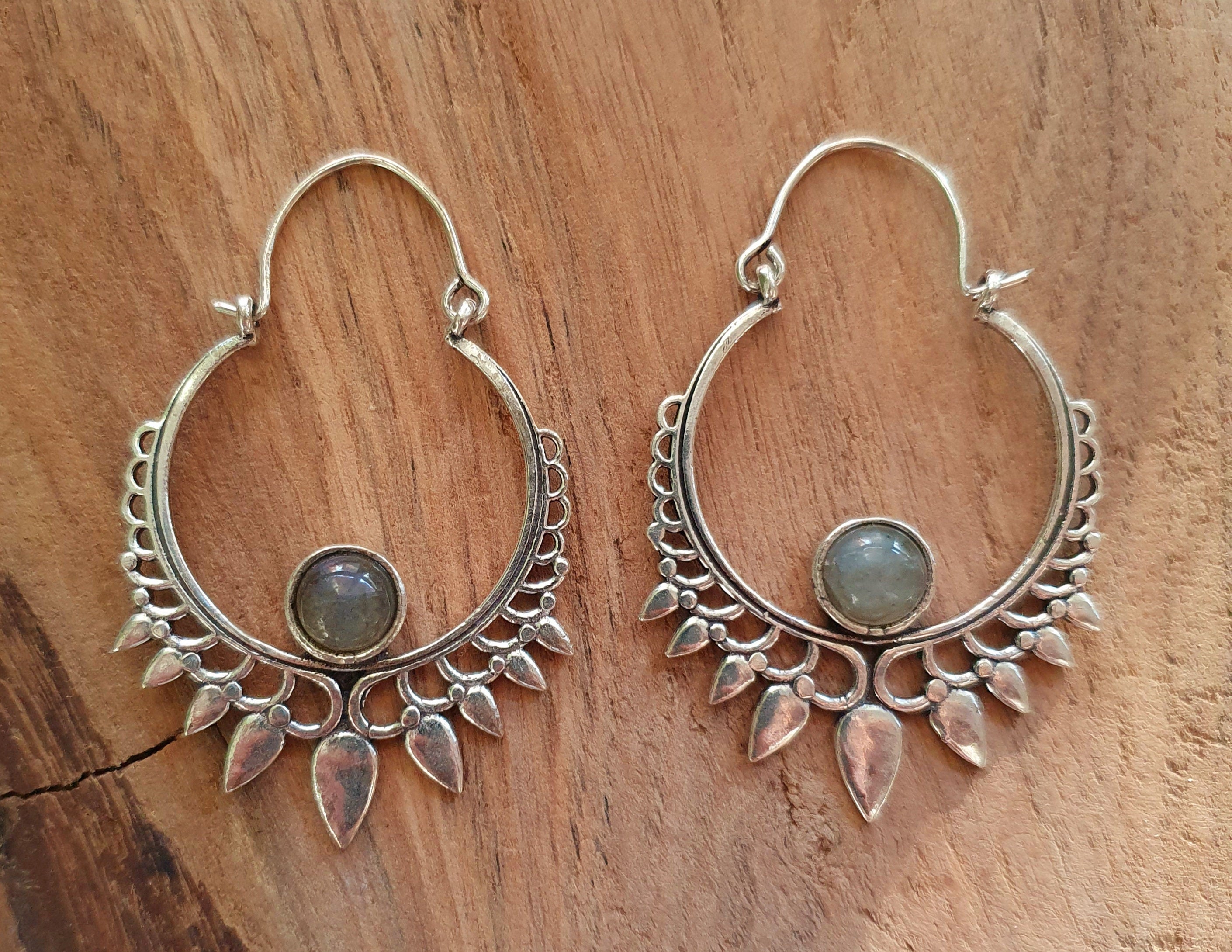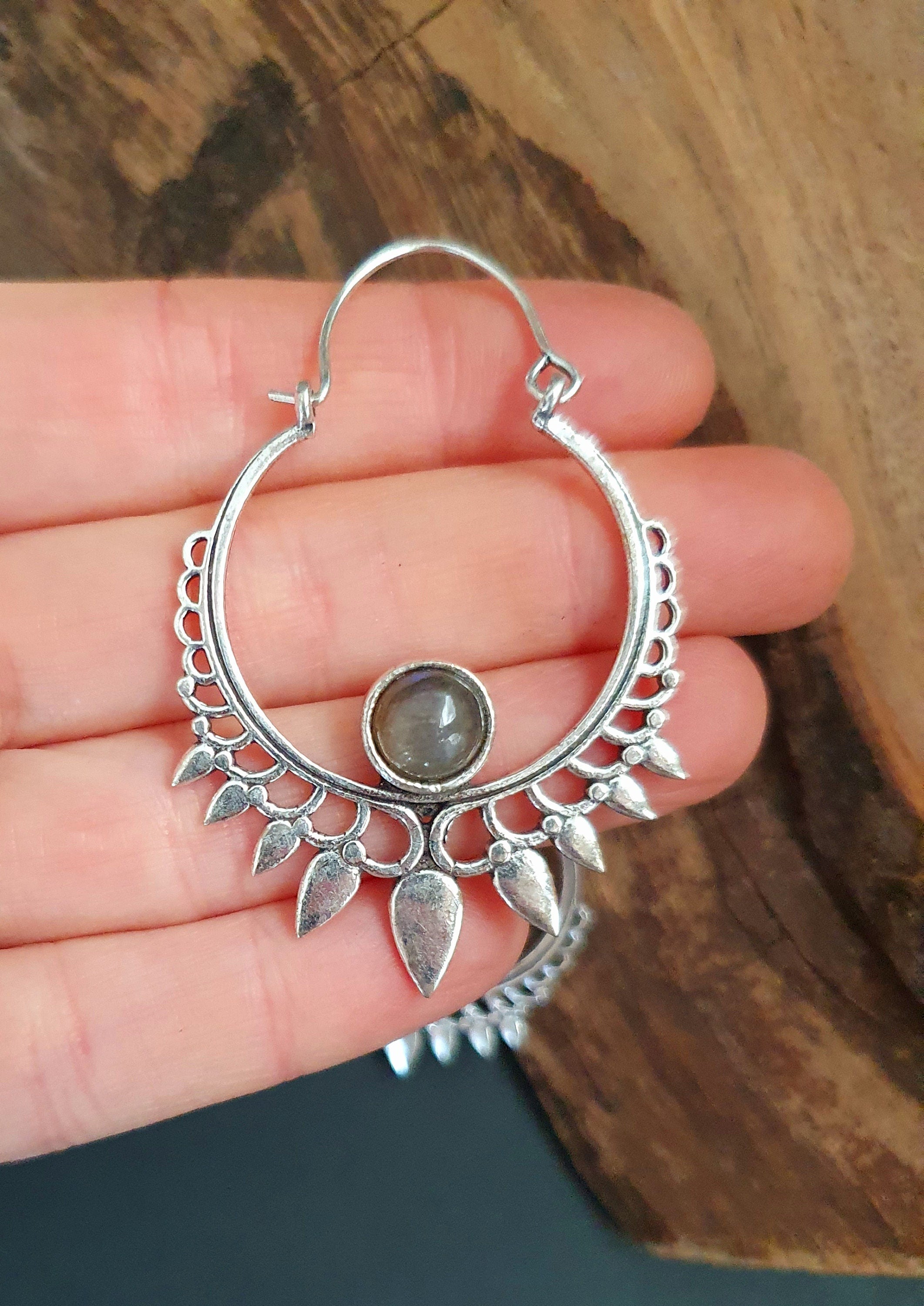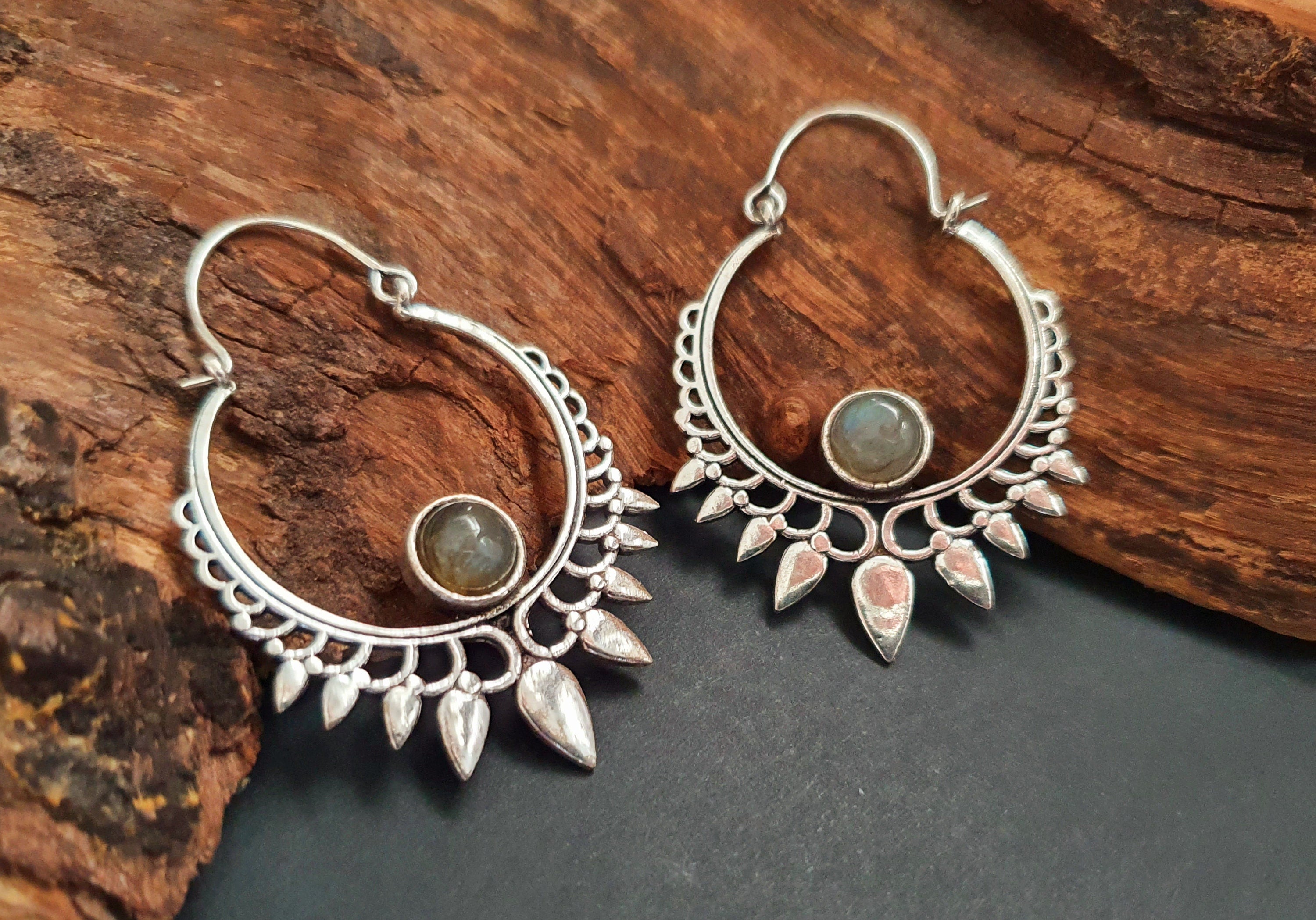 Labradorite Silver Spiky Hoop Earrings Ethnic