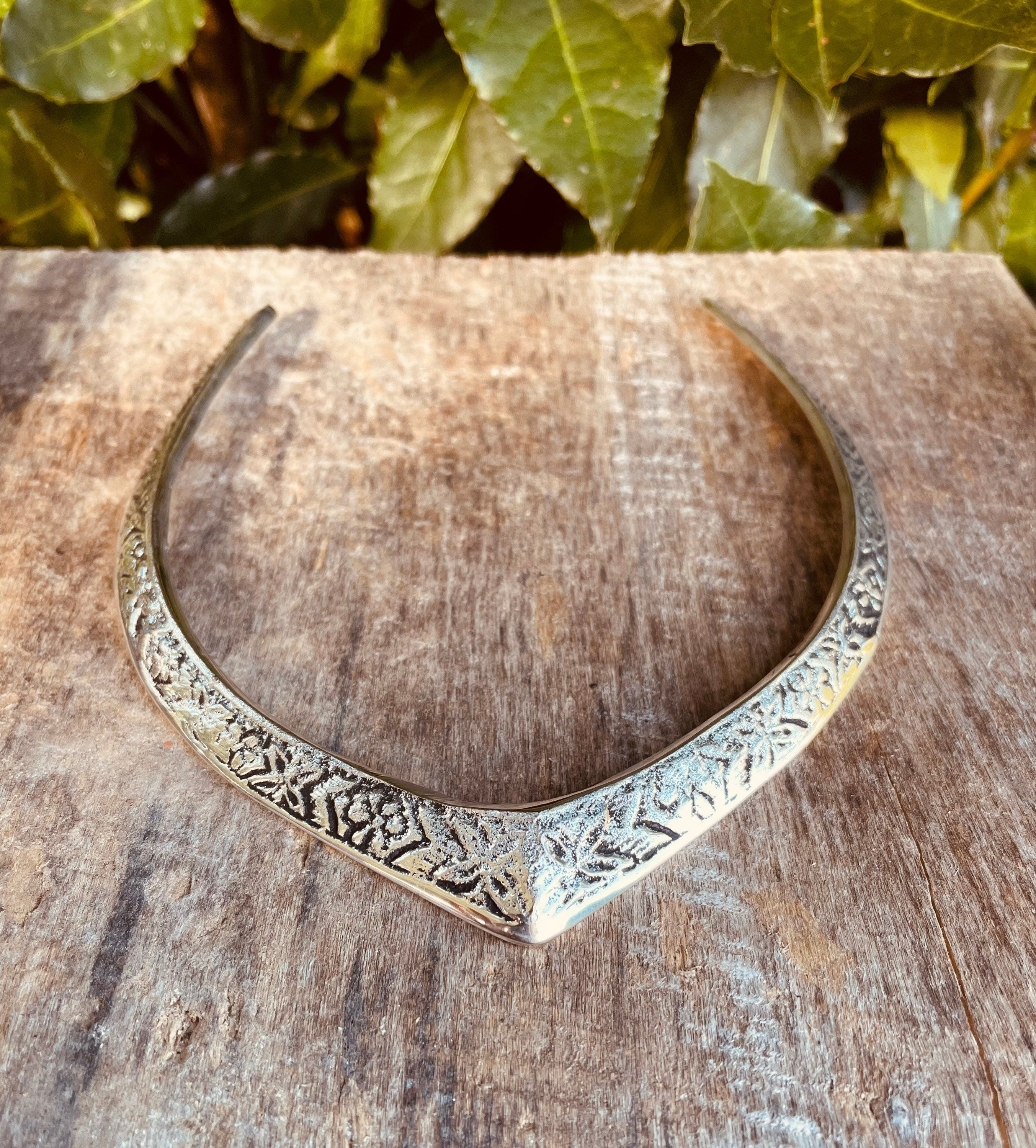 Stunning silver choker ethnic necklace with flowers engraved