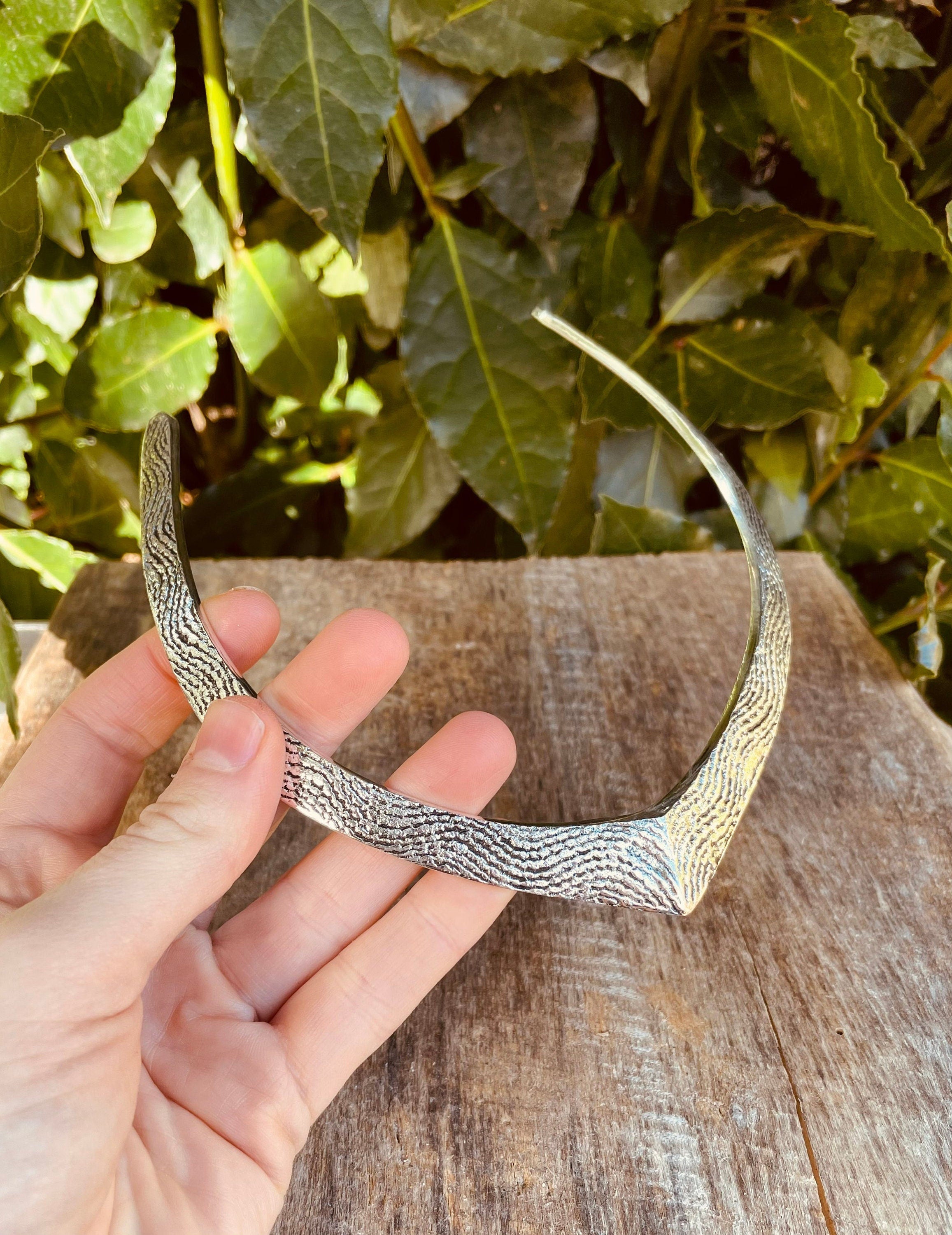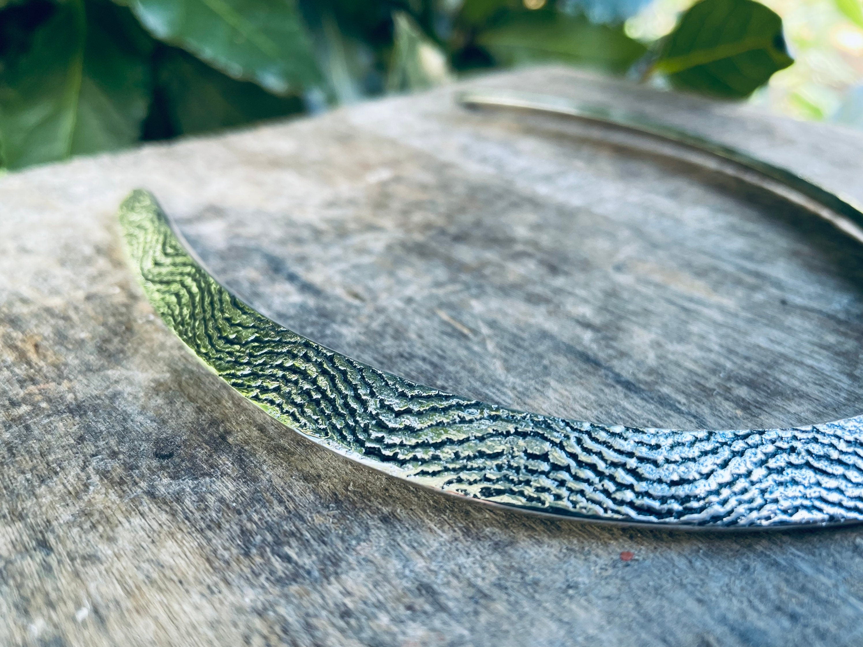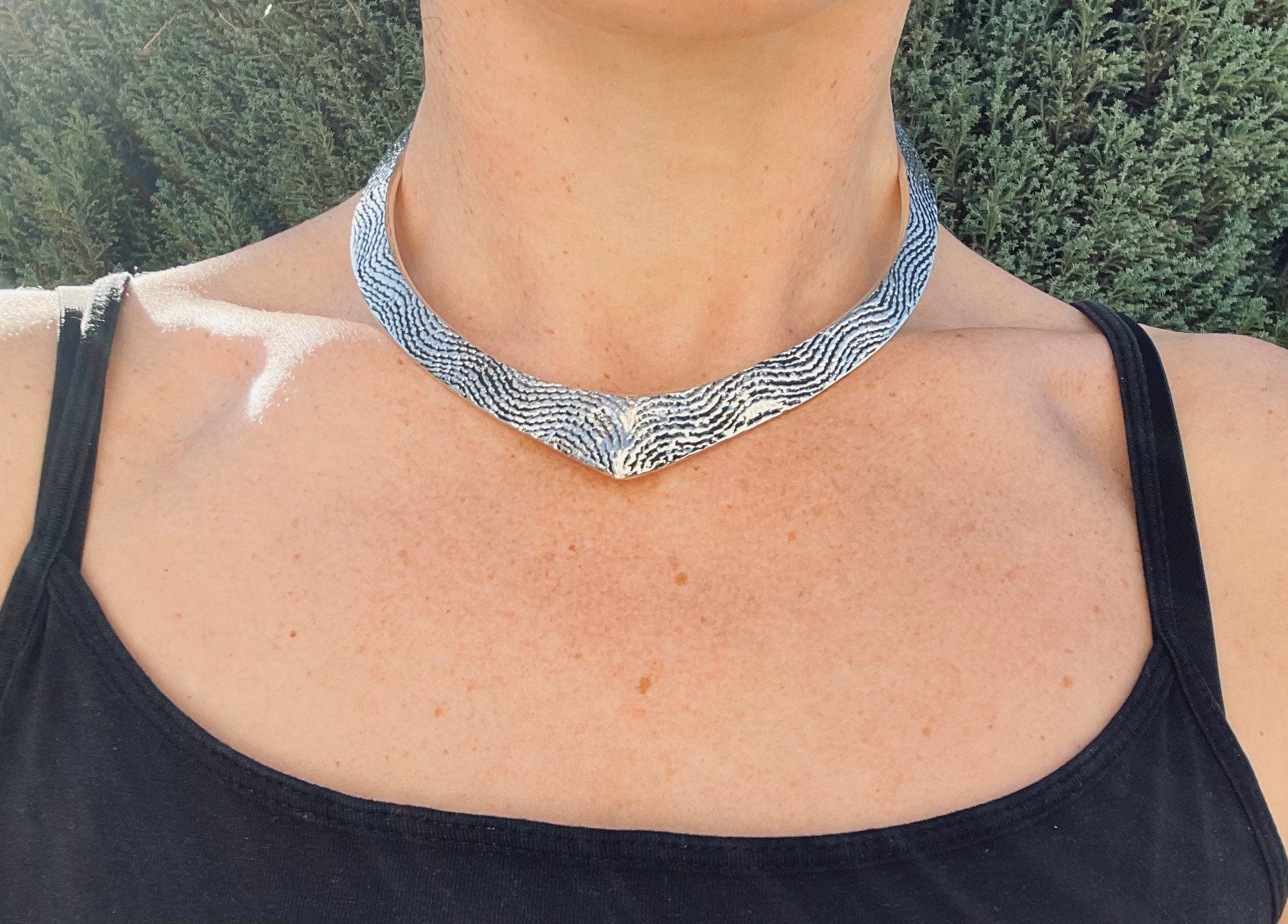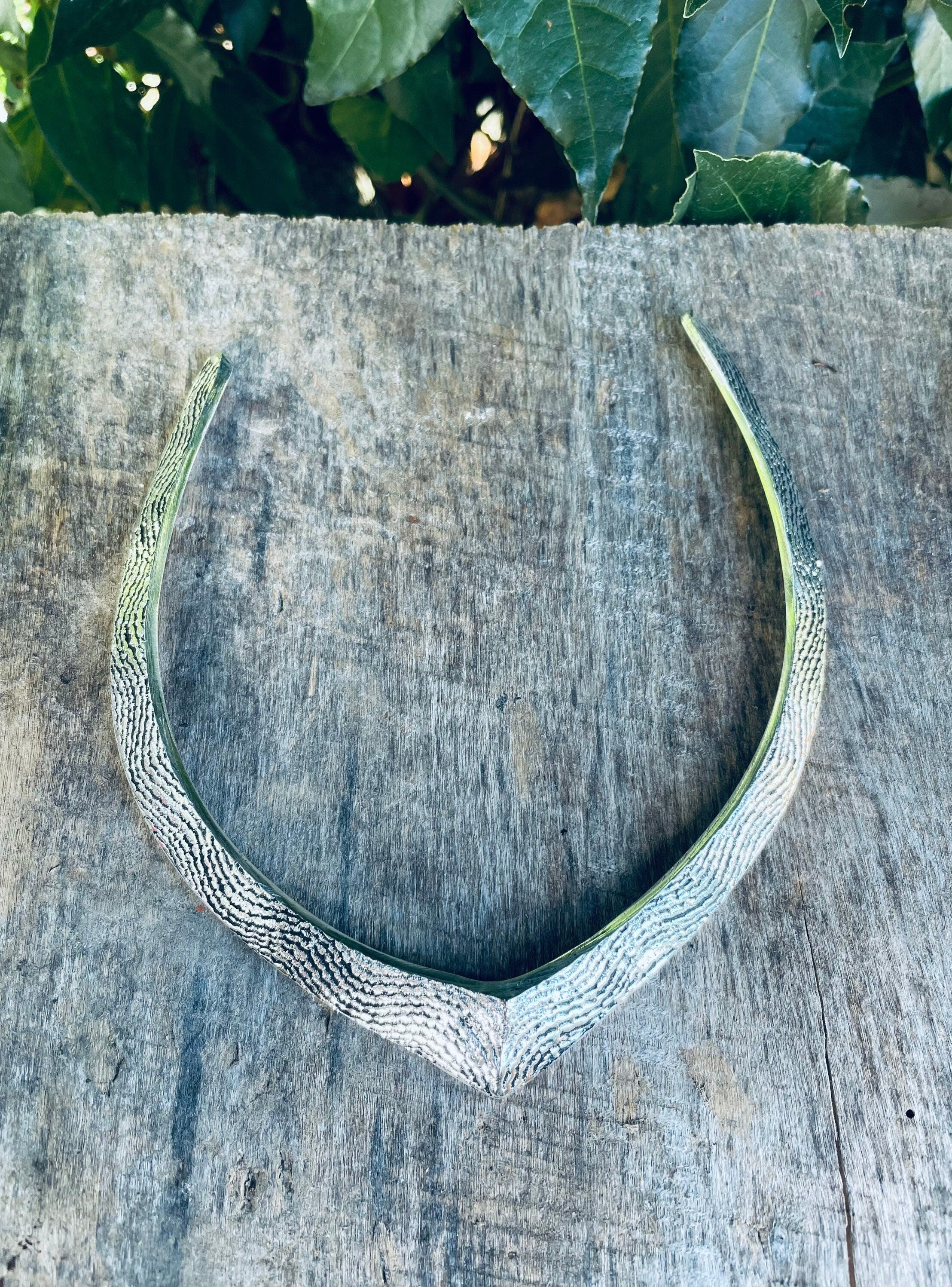 Stunning silver choker ethnic necklace with snake skin effect design engraved.