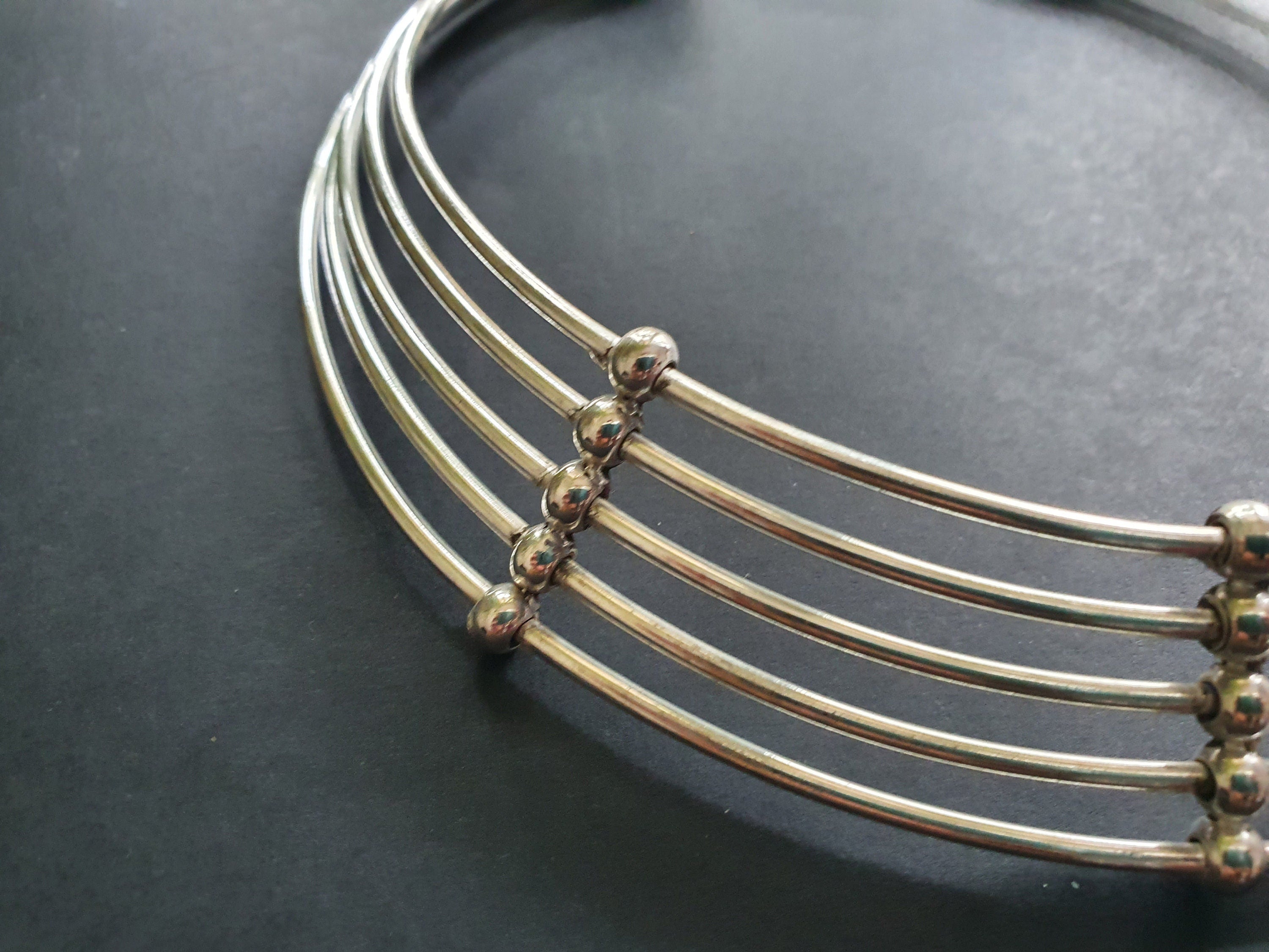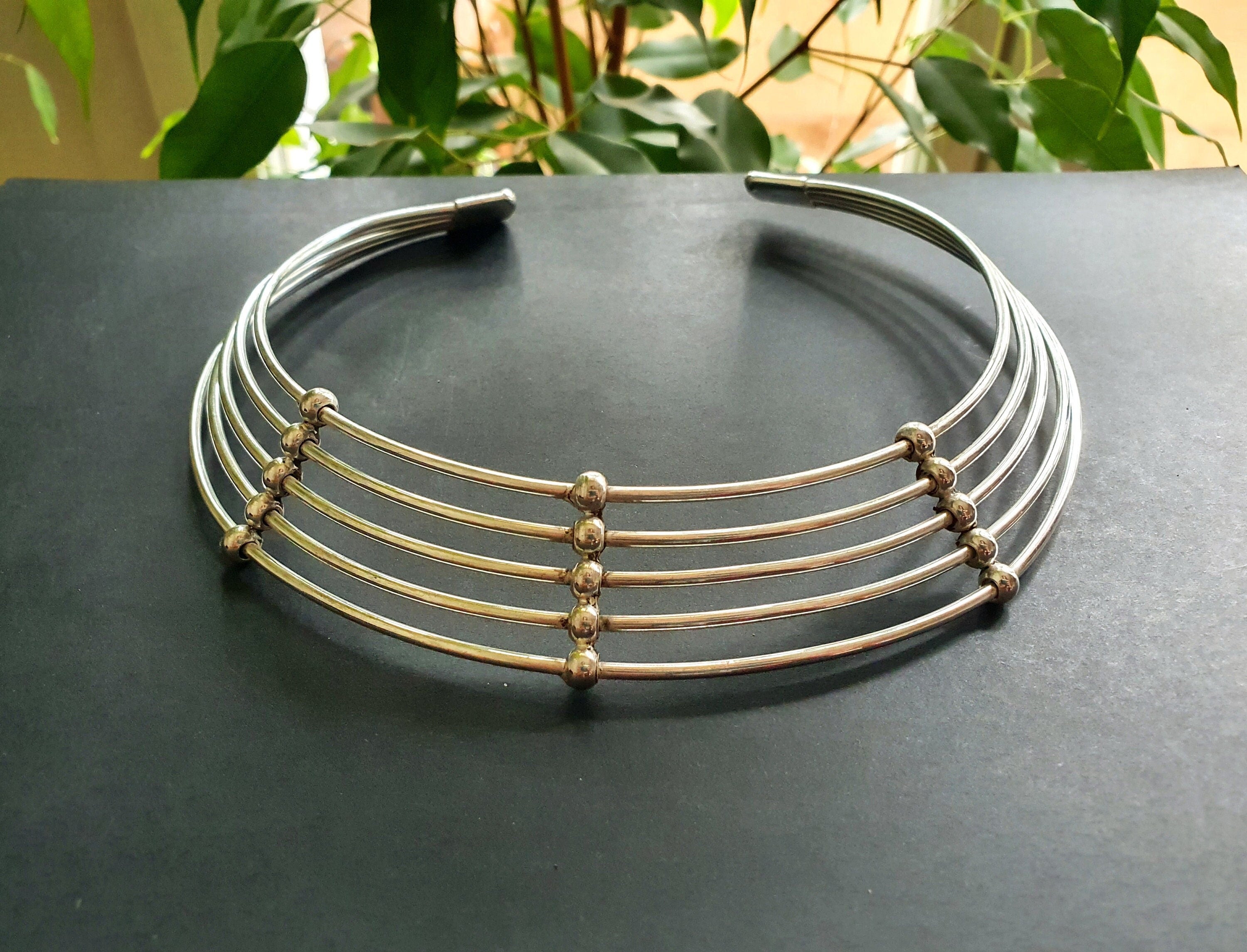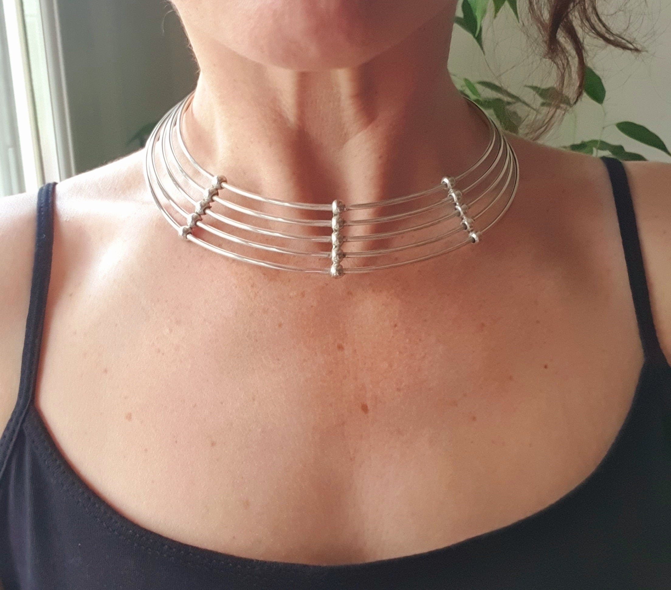 Set with 4 bars and metal balls, this beautiful choker is very elegant.