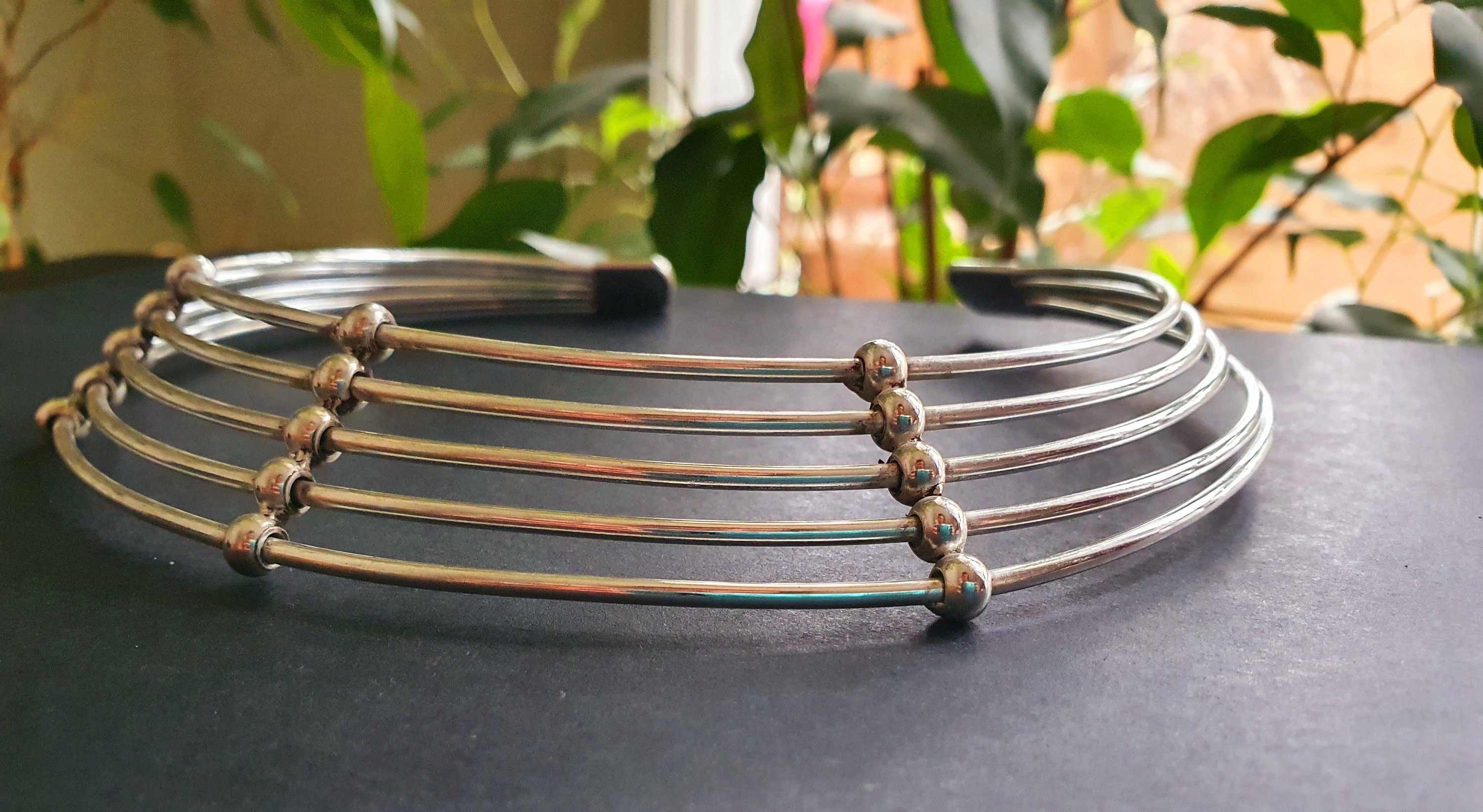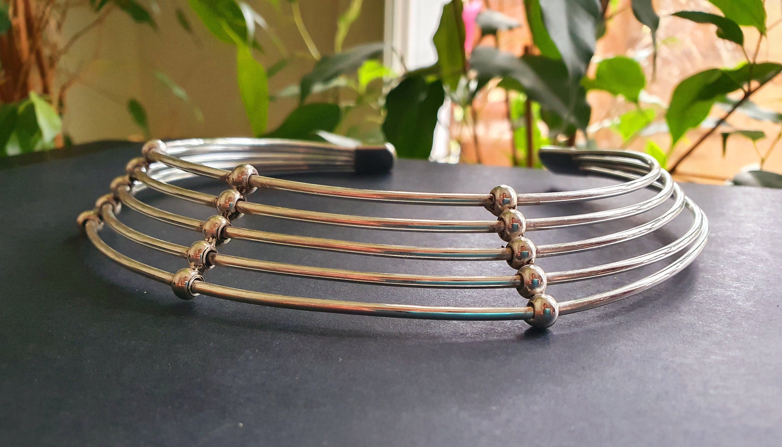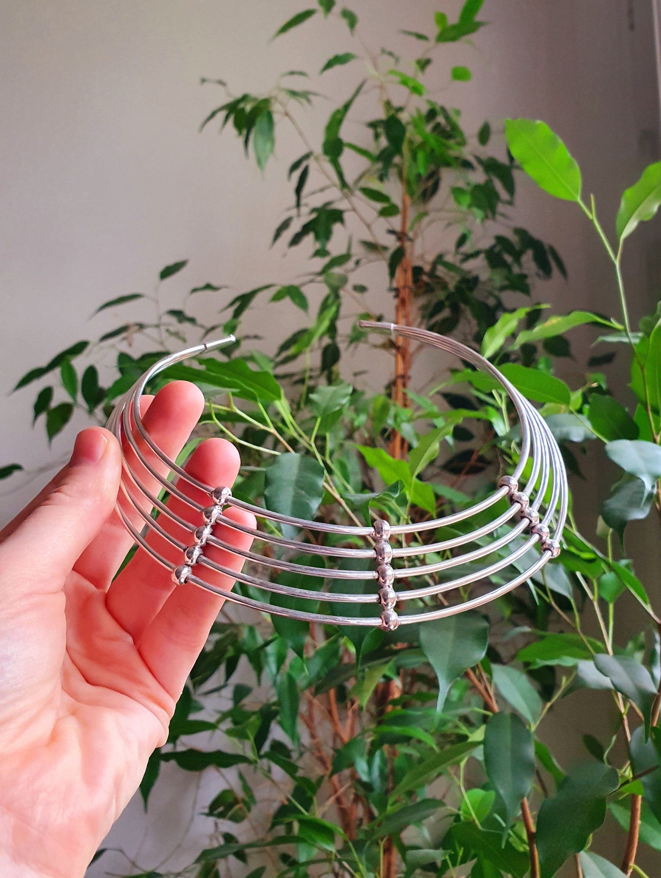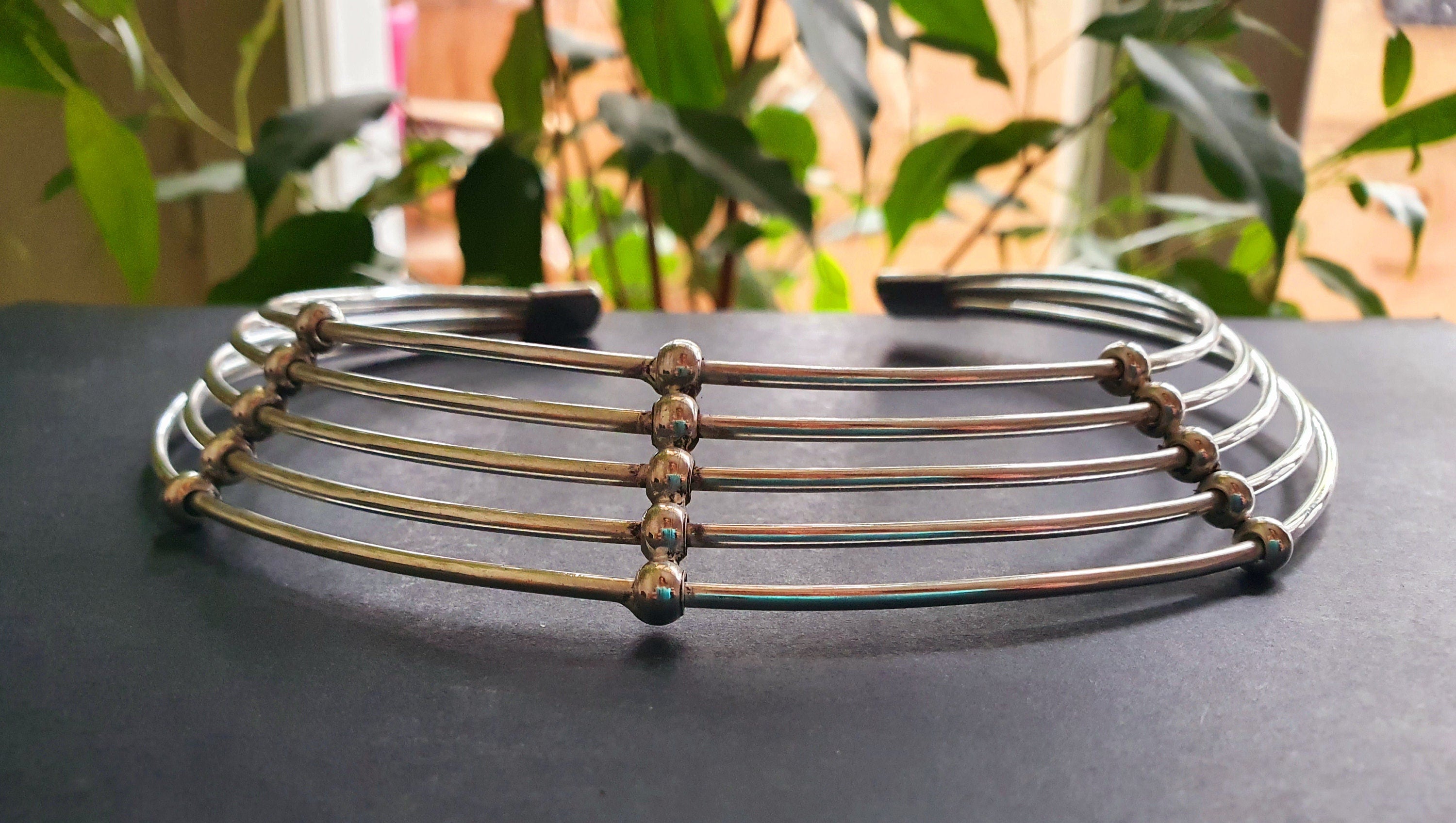 Set with 4 bars and metal balls, this beautiful choker is very elegant.