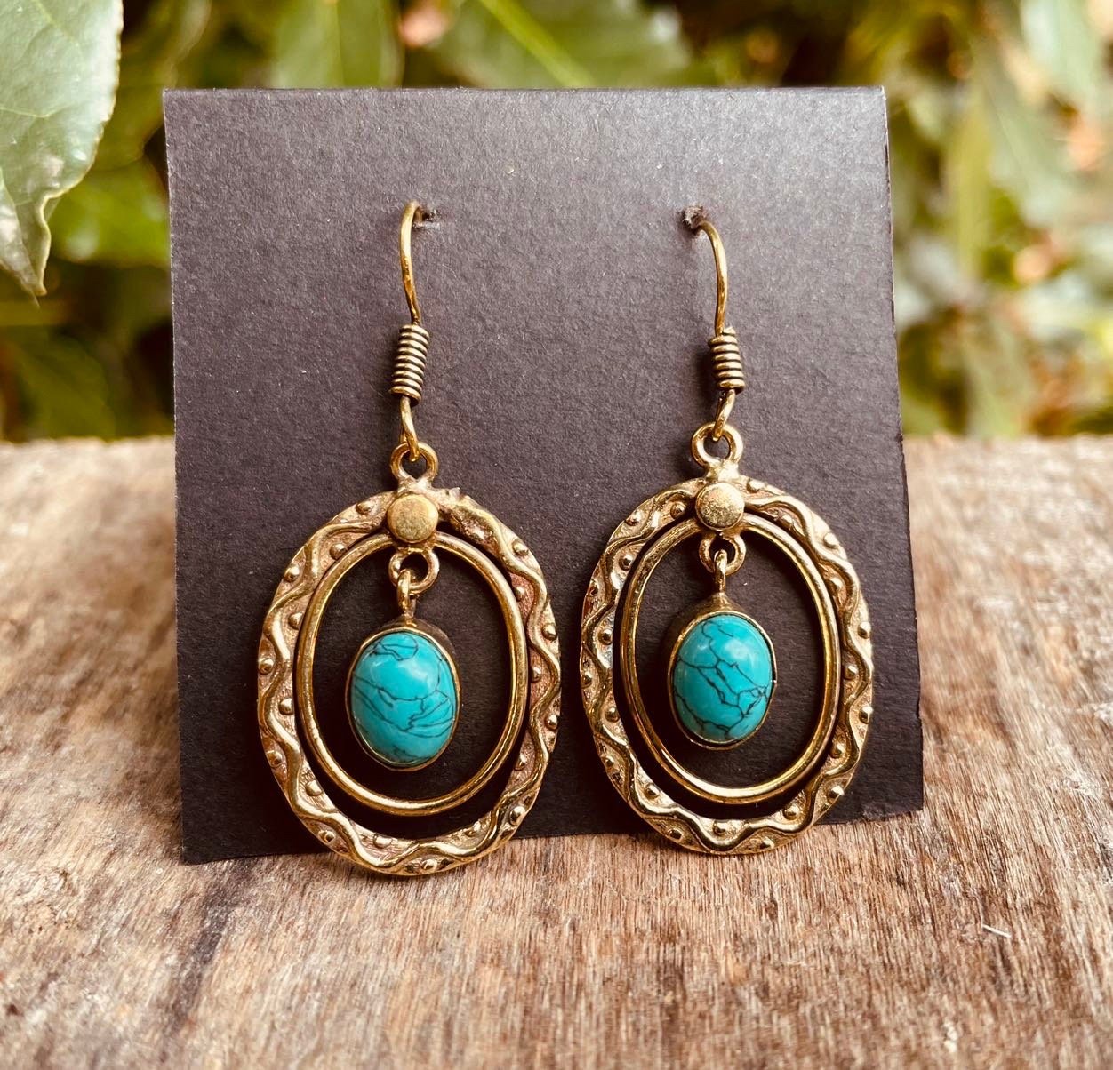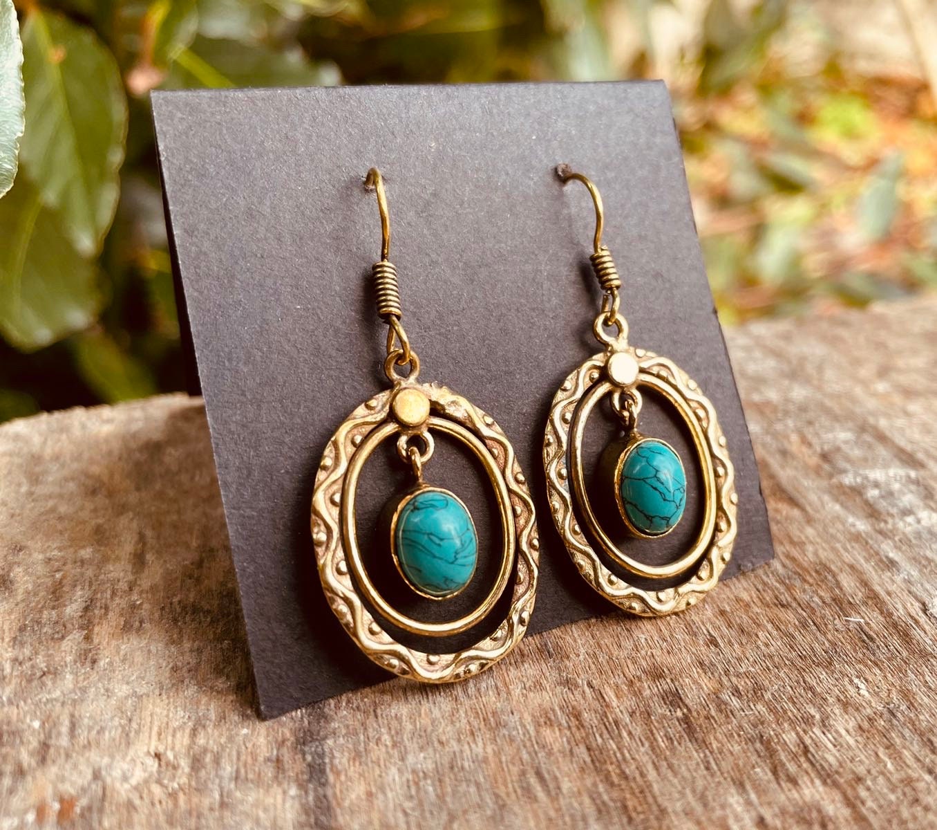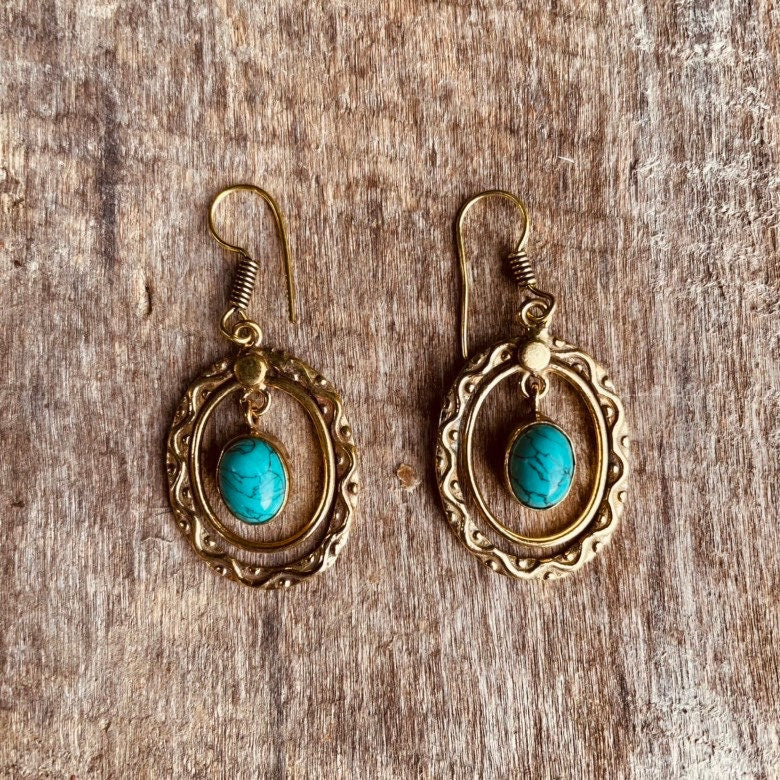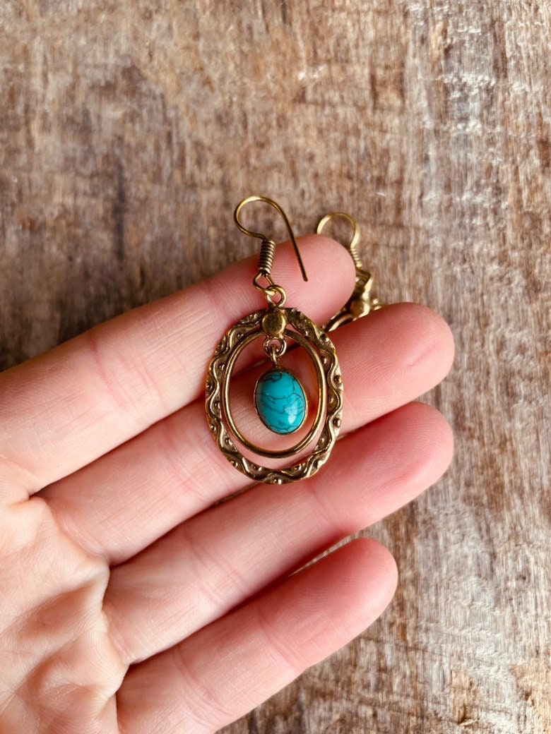 Turquoise Earrings Dangle Brass Ethnic