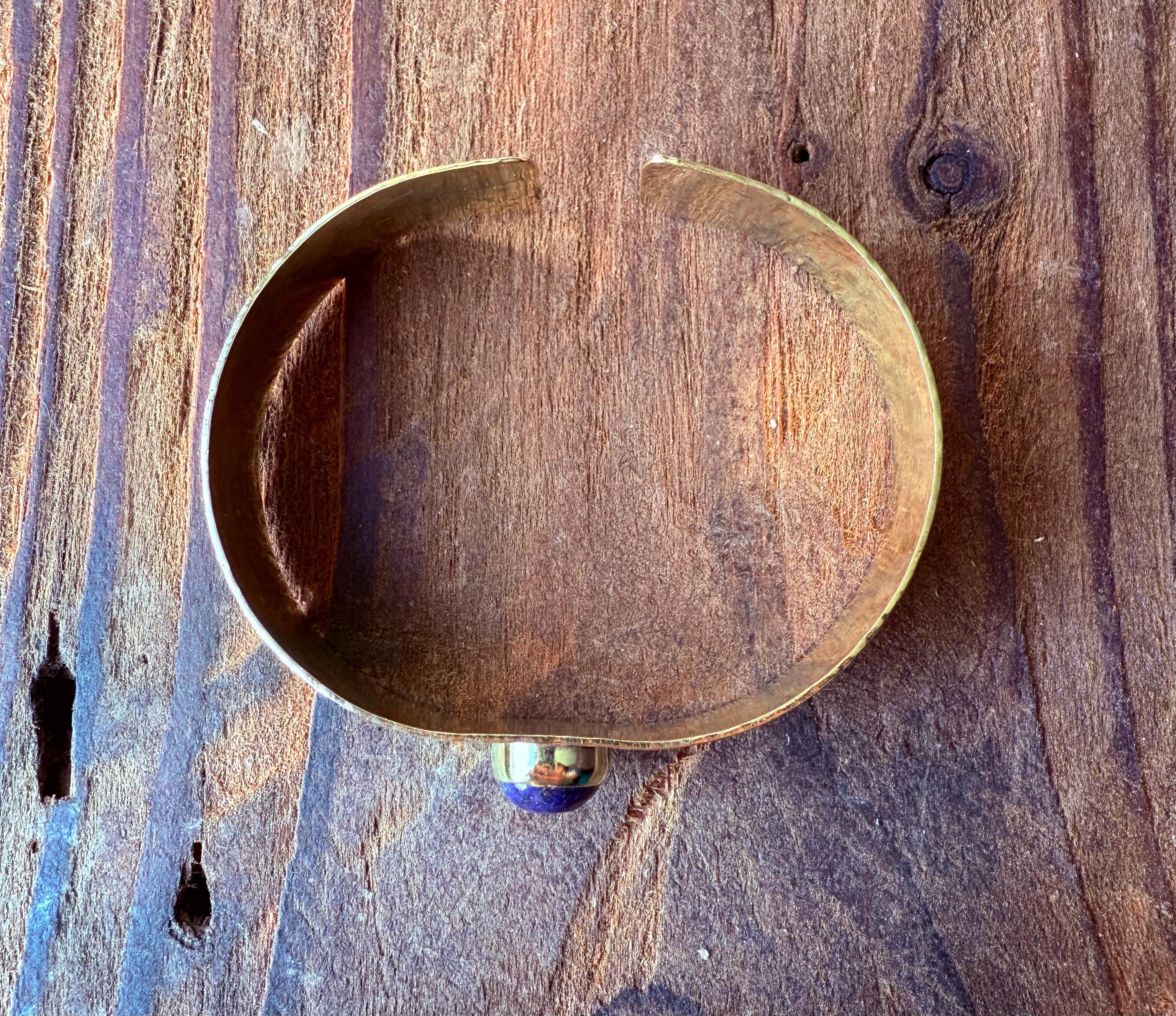 Hammered Brass Bracelet with Lapis Lazuli