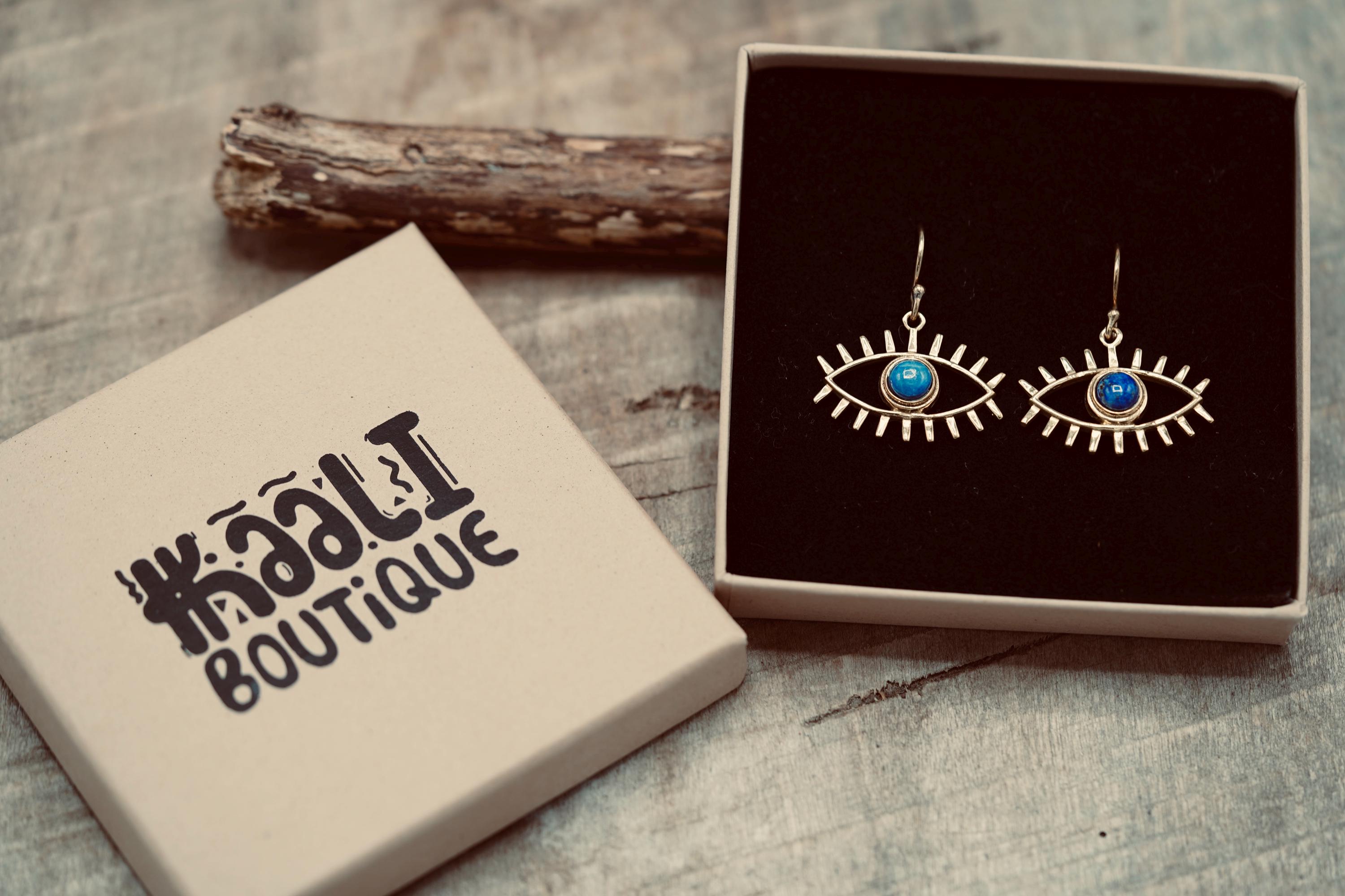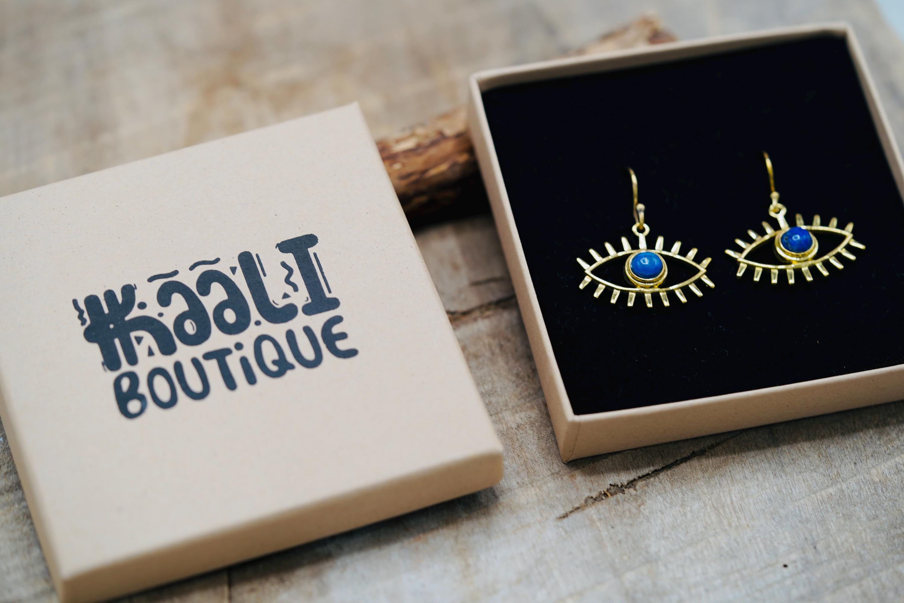 Pendant Eye Brass Earrings with Black Onyx stone
