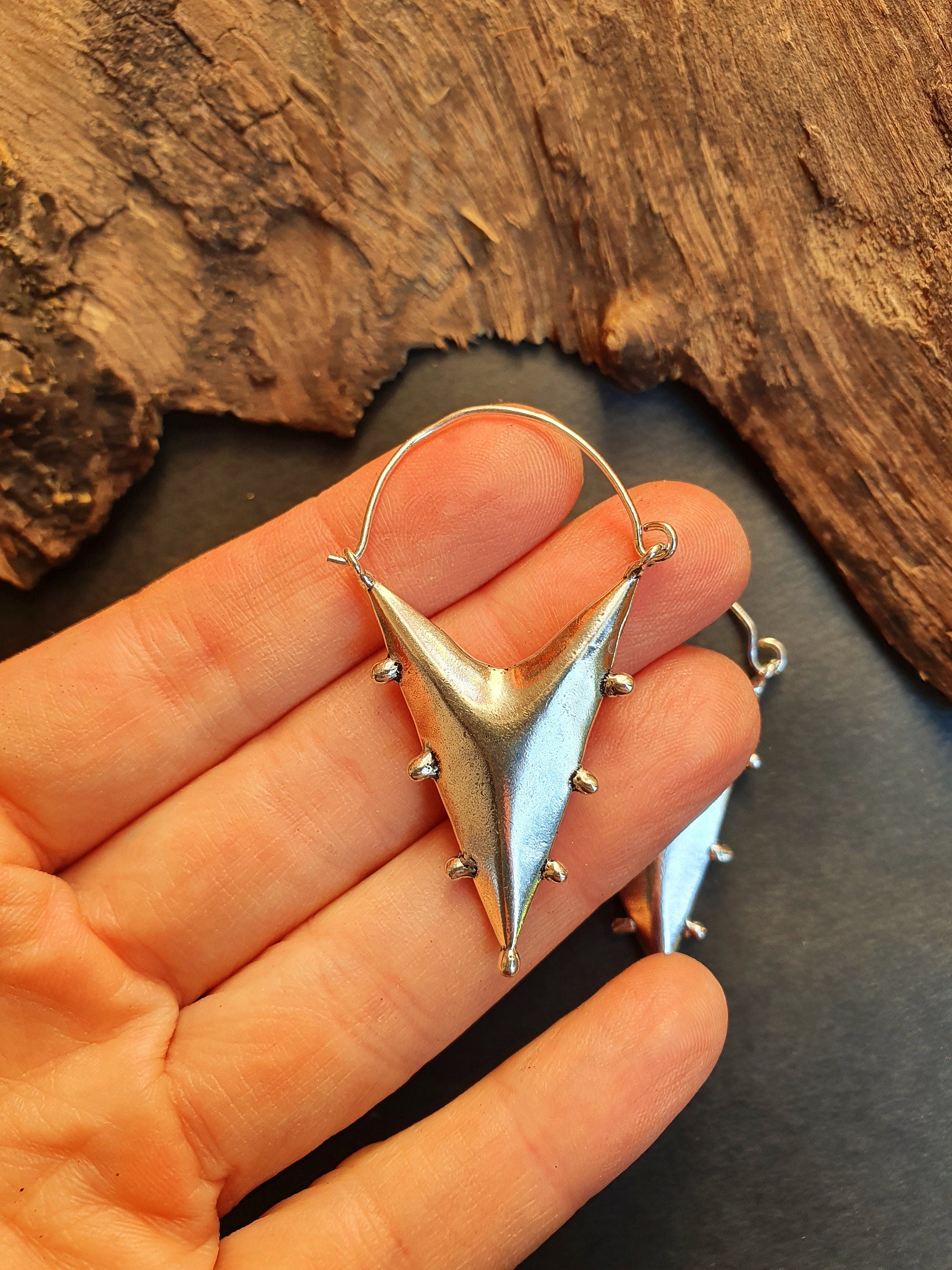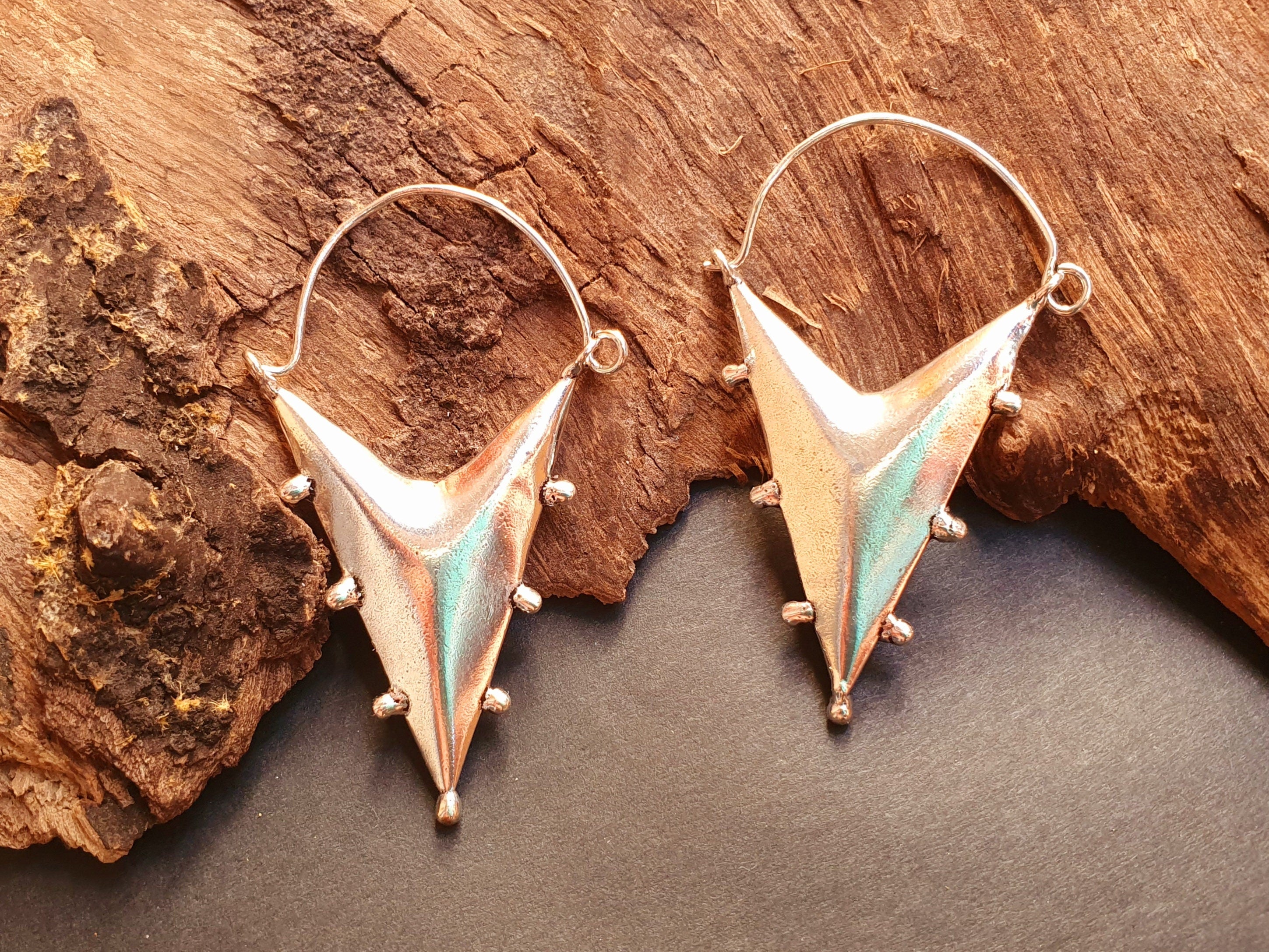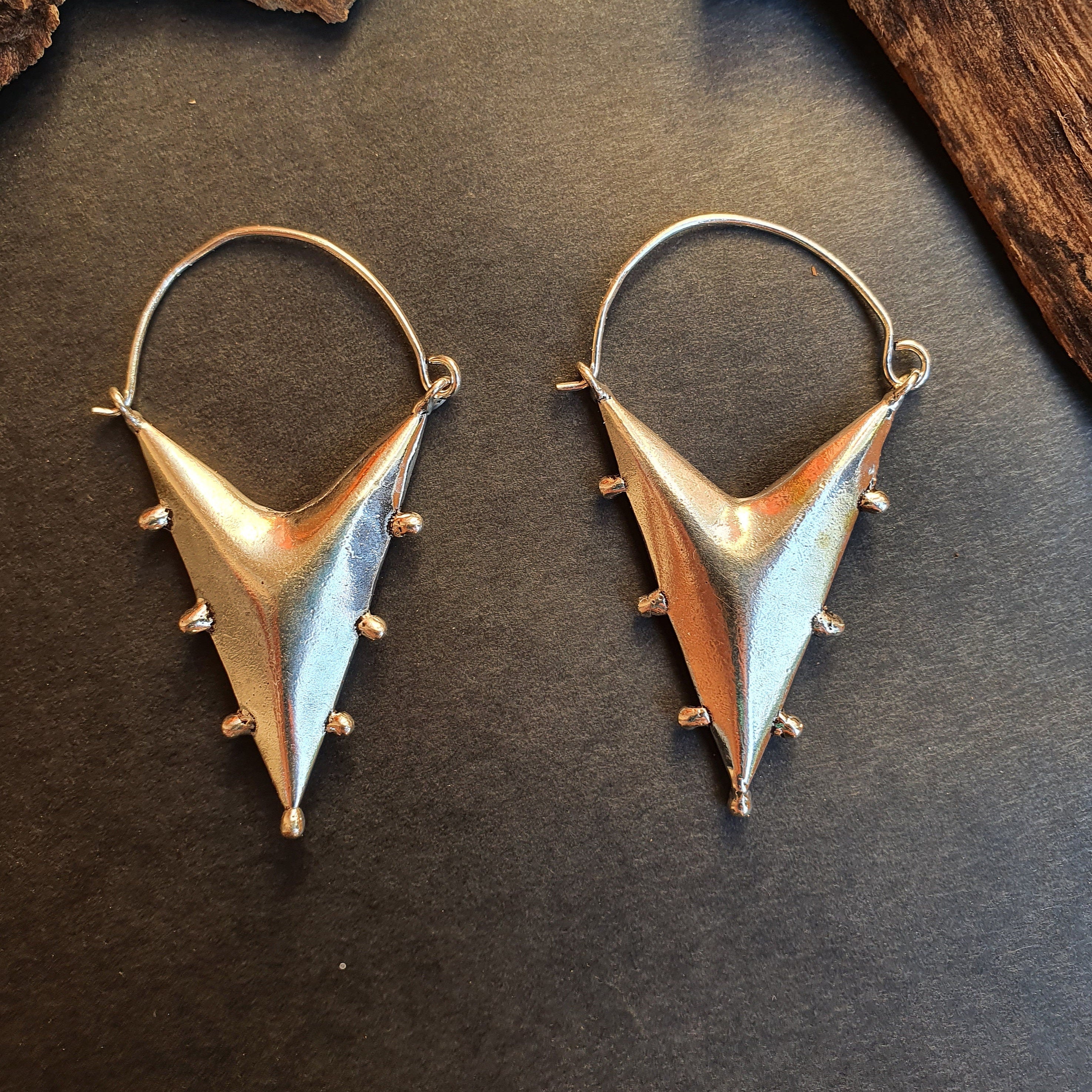 Boucles d'oreilles pendantes triangulaires en laiton argenté style steampunk tribal