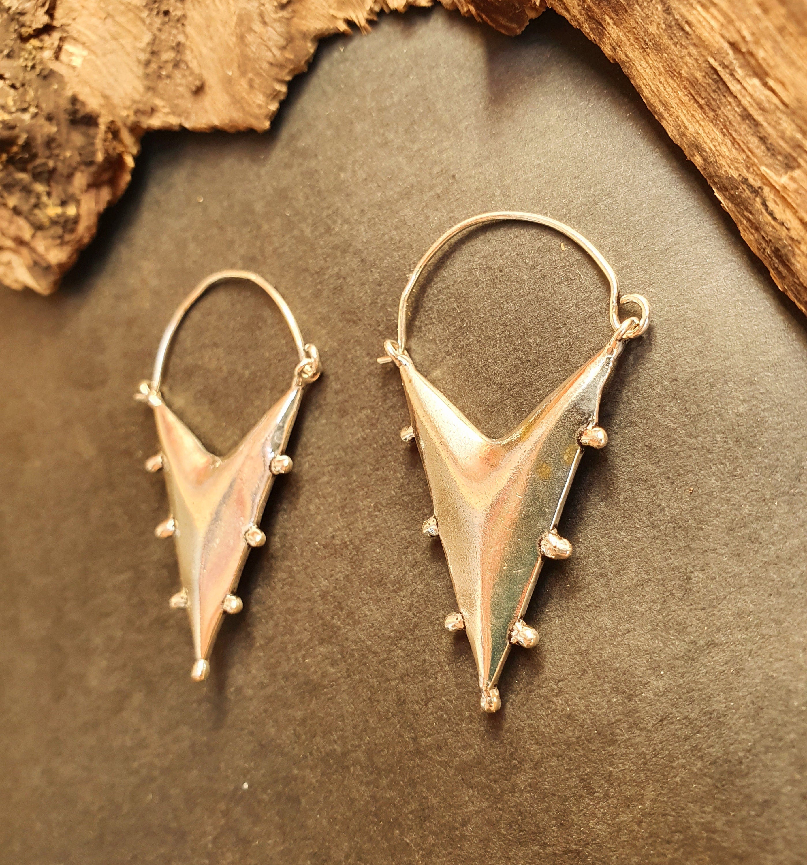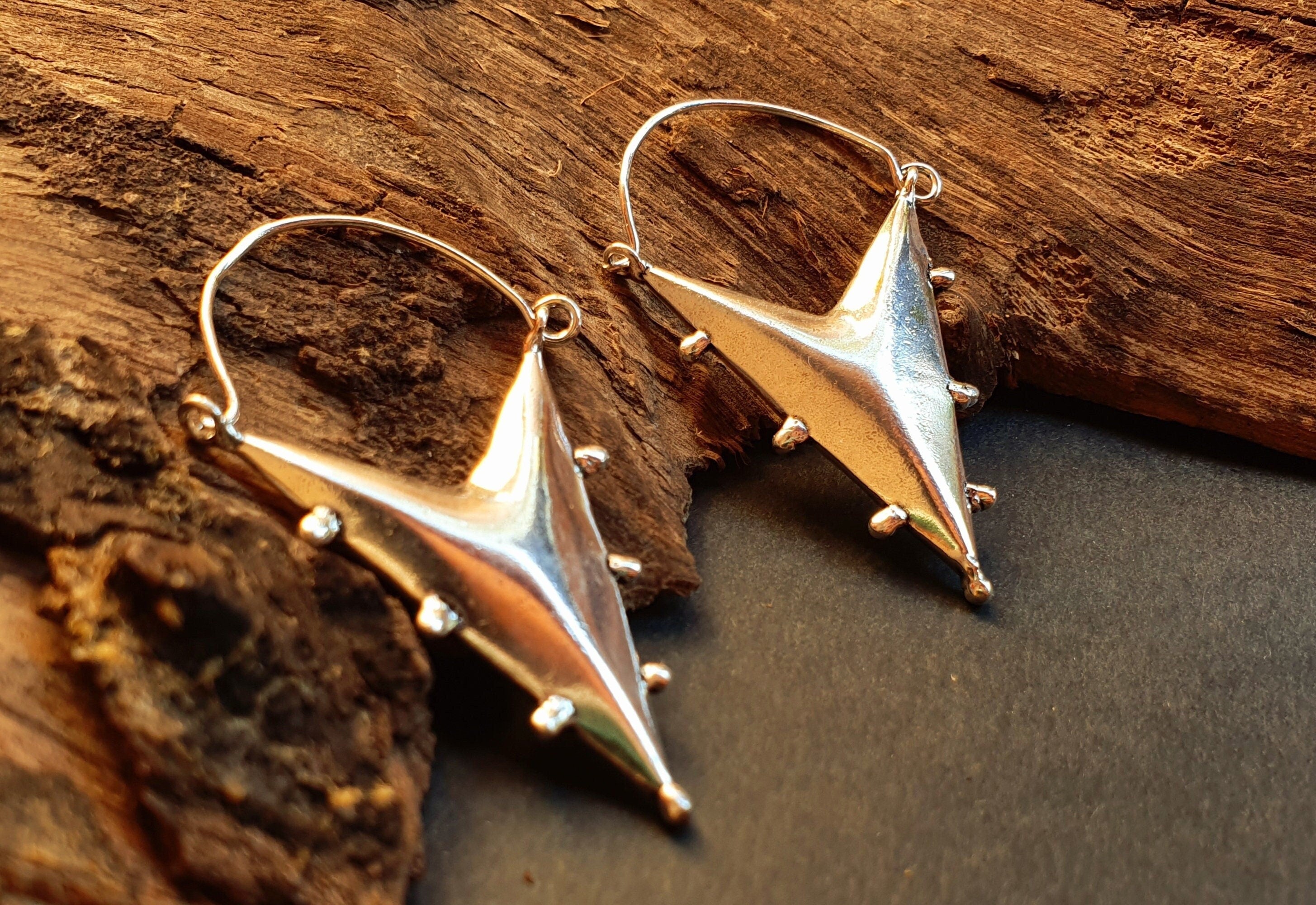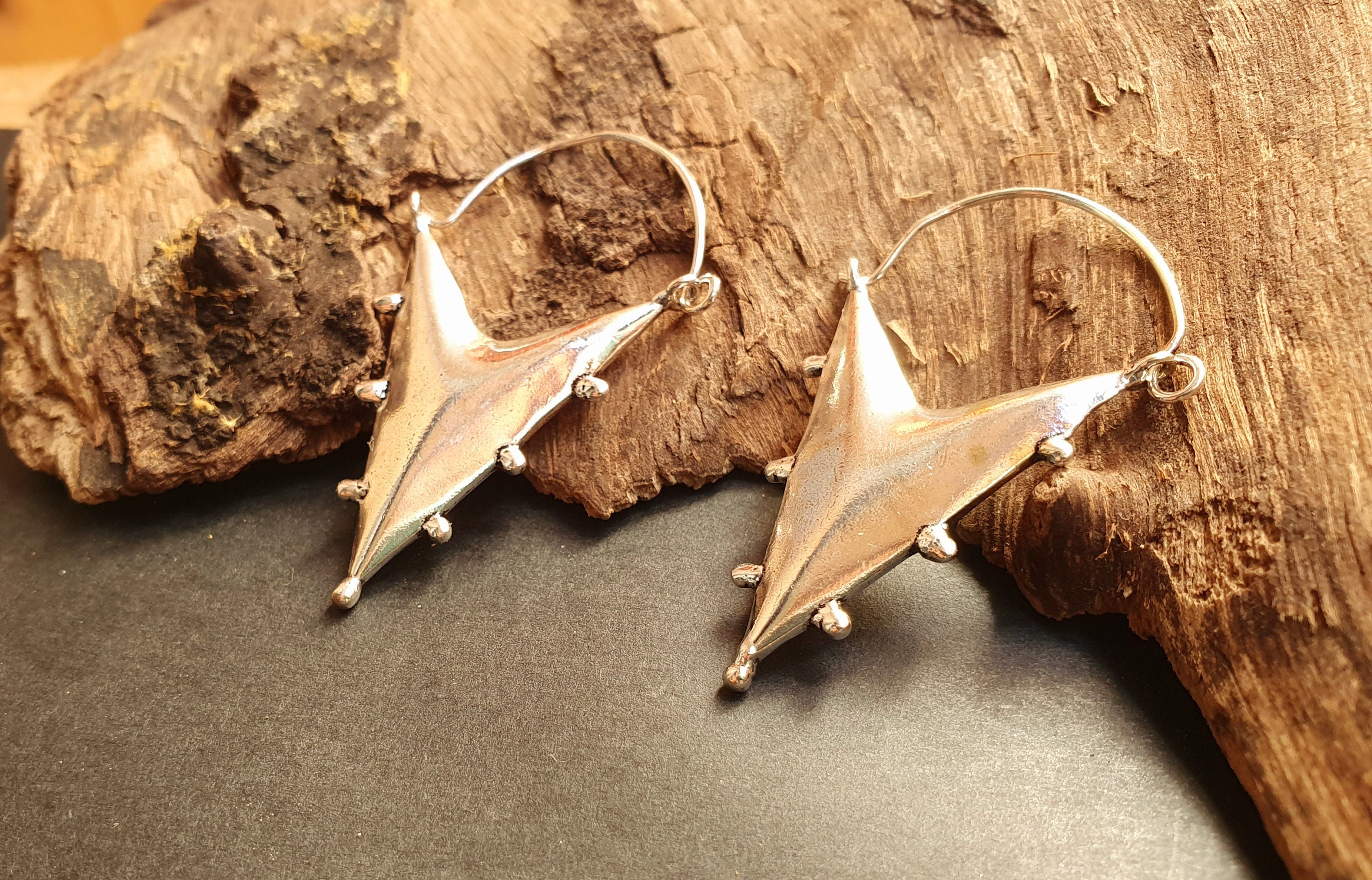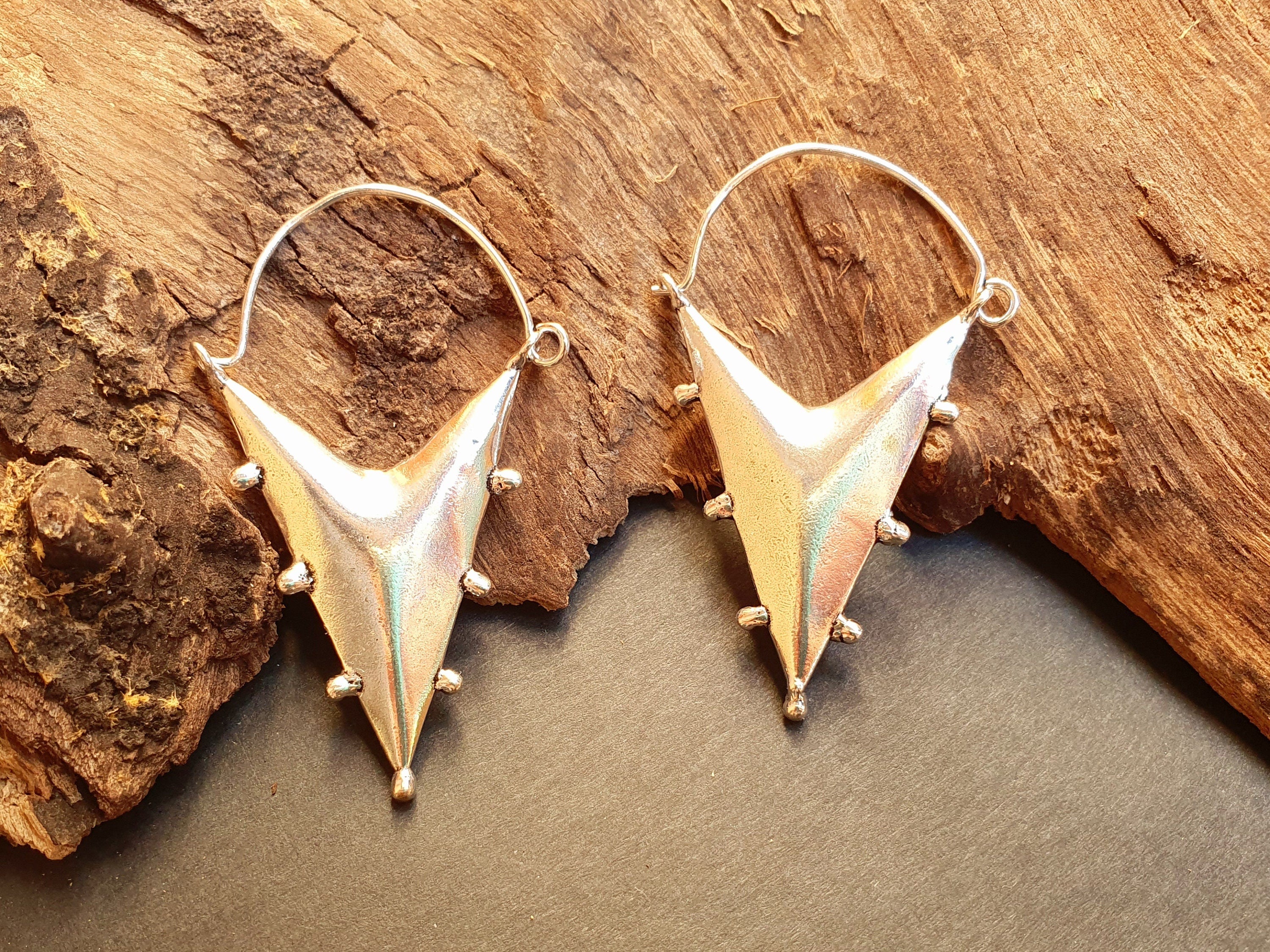 Boucles d'oreilles pendantes triangulaires en laiton argenté style steampunk tribal