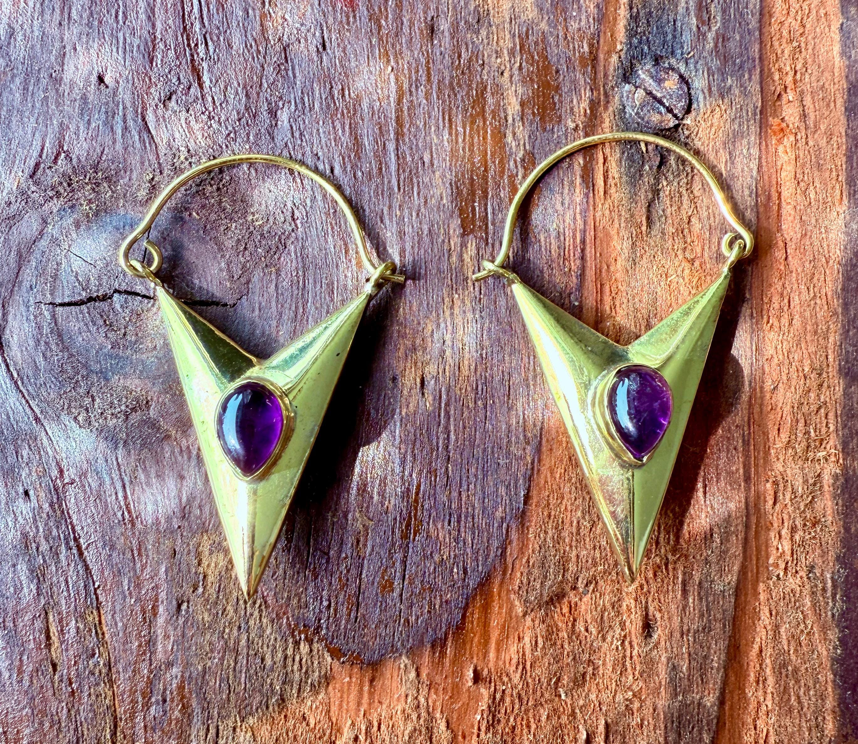 Amethyst & Brass Earrings
