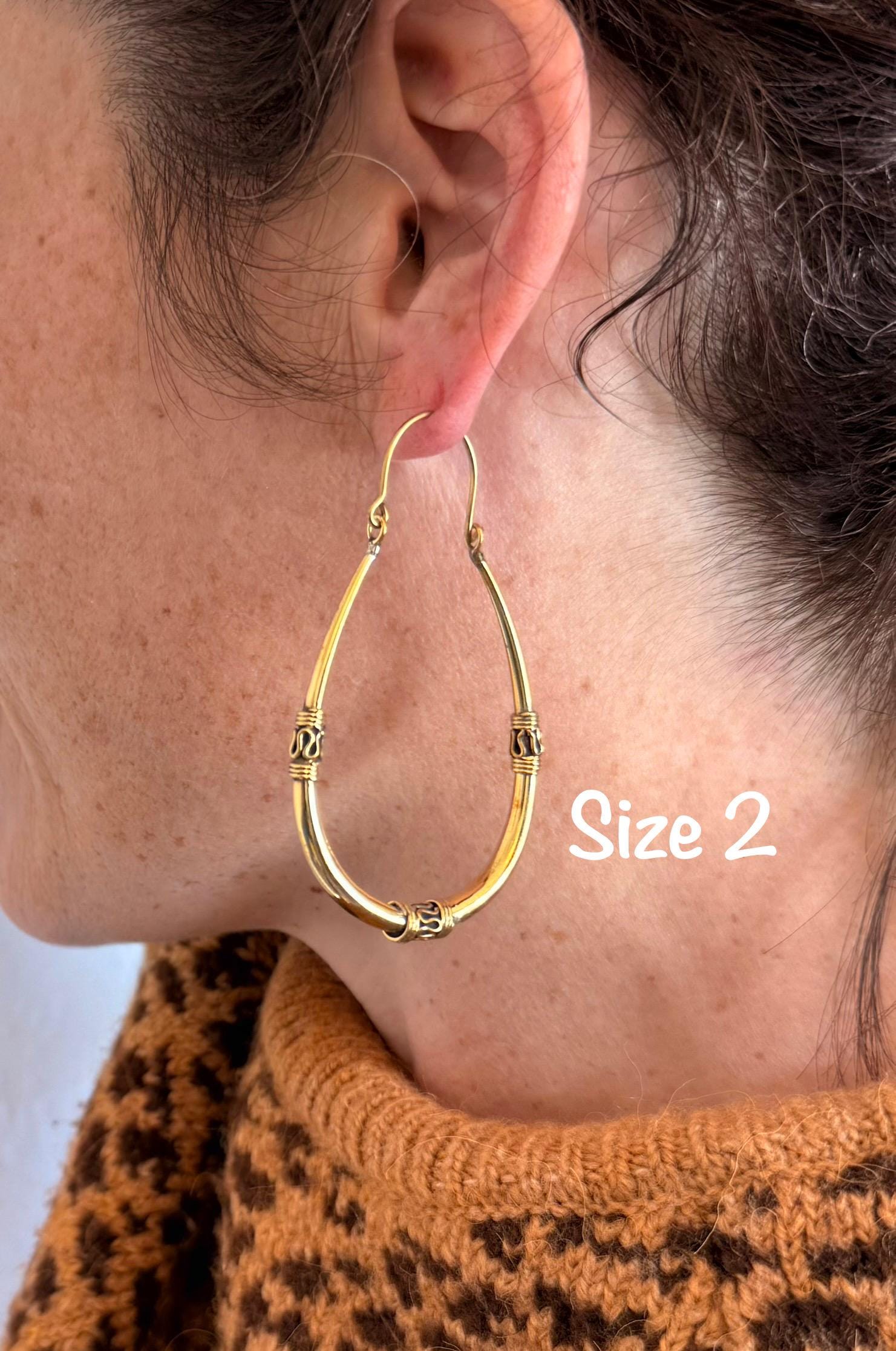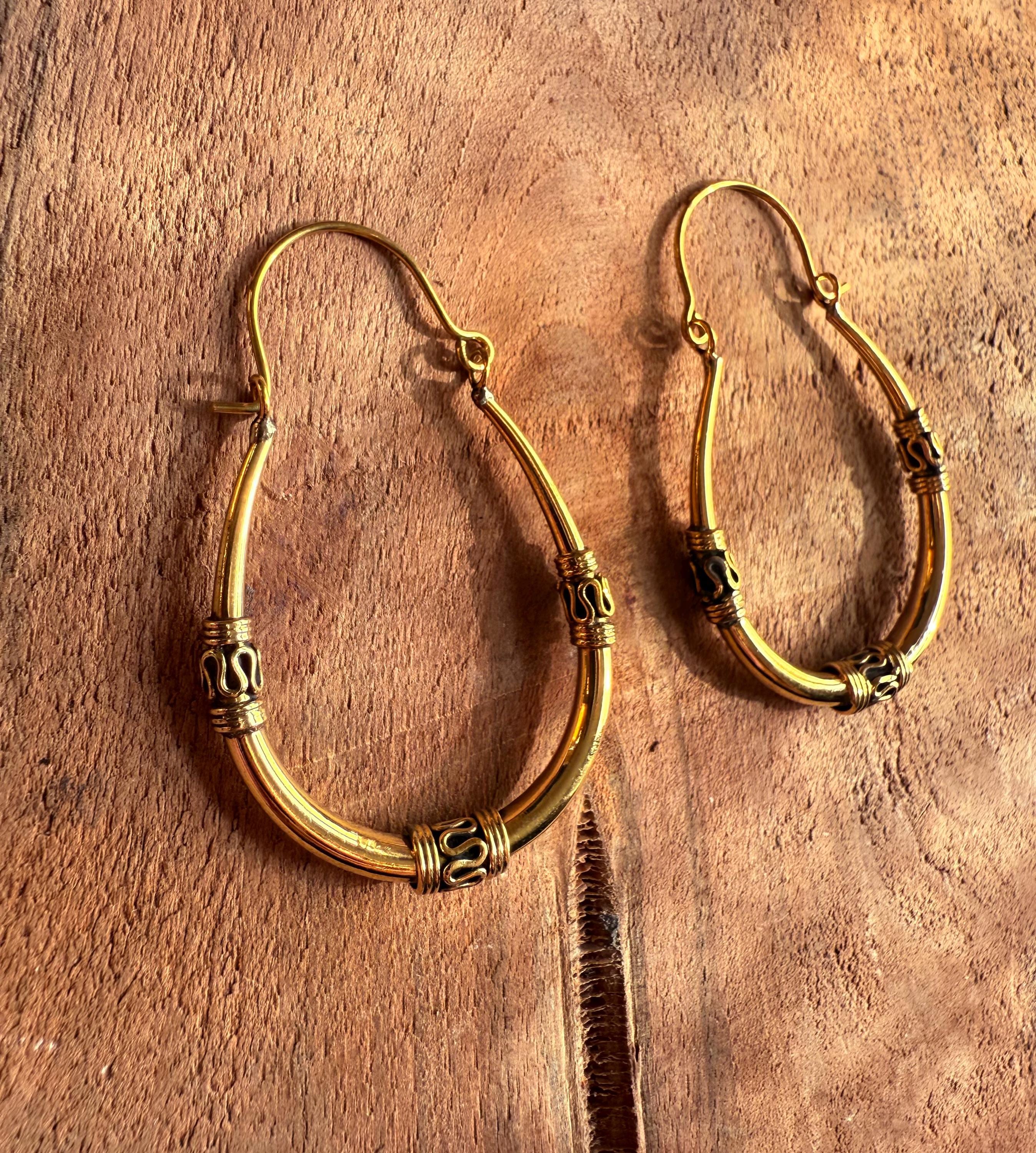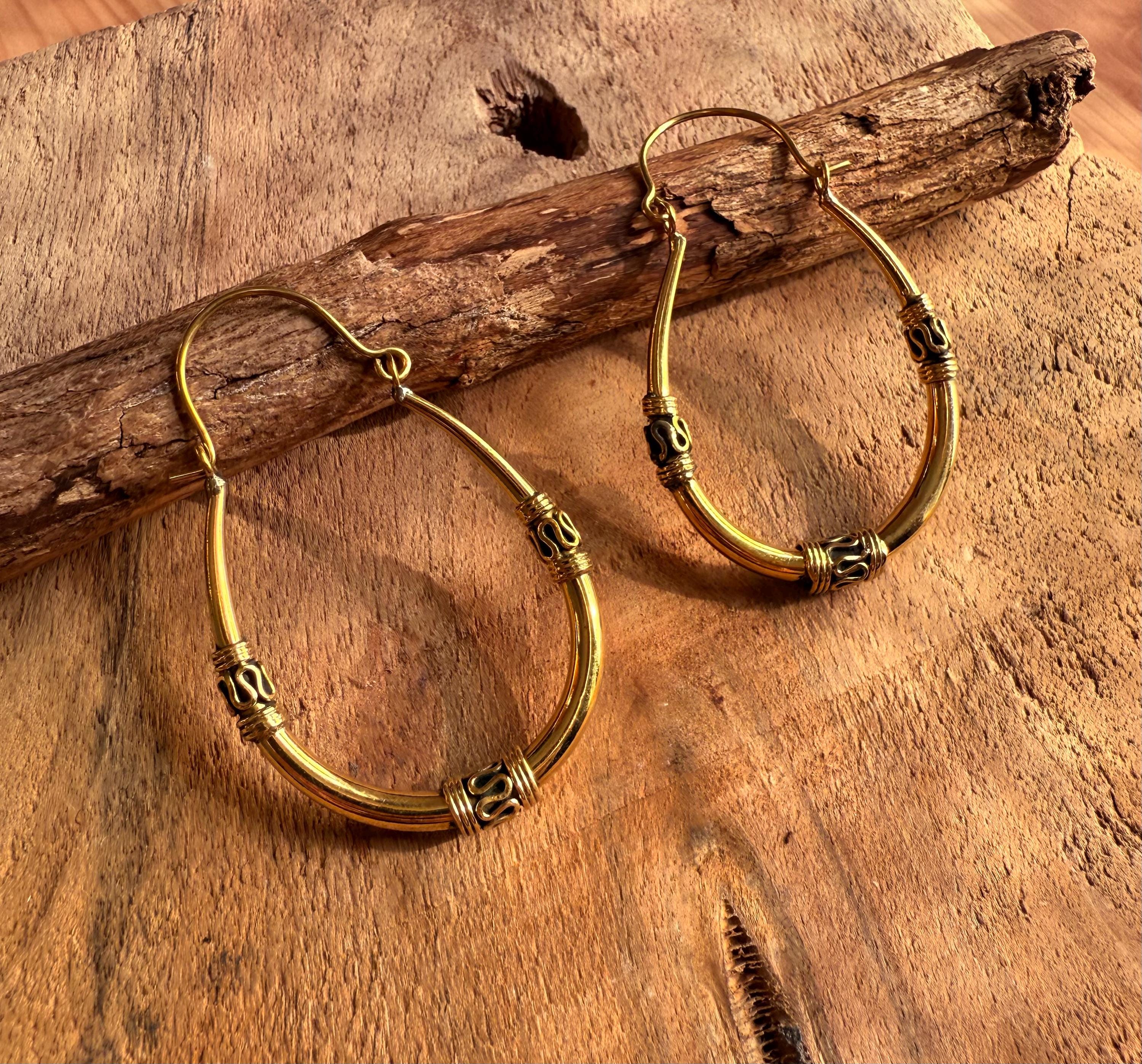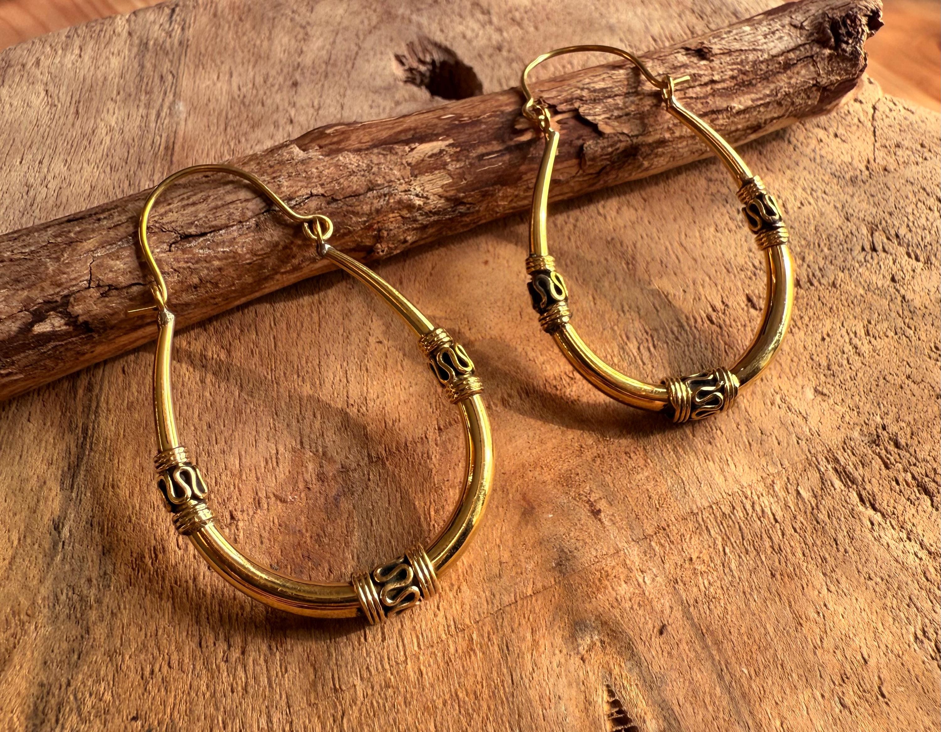 Discover the allure of our Bali Golden Oval Hoop Earrings crafted from high-quality brass for a rustic, ethnic, boho, and hippie-inspired look. These statement earrings are perfect for festival outfits, bohemian ensembles, or adding a touch of tribal elegance to your everyday style.