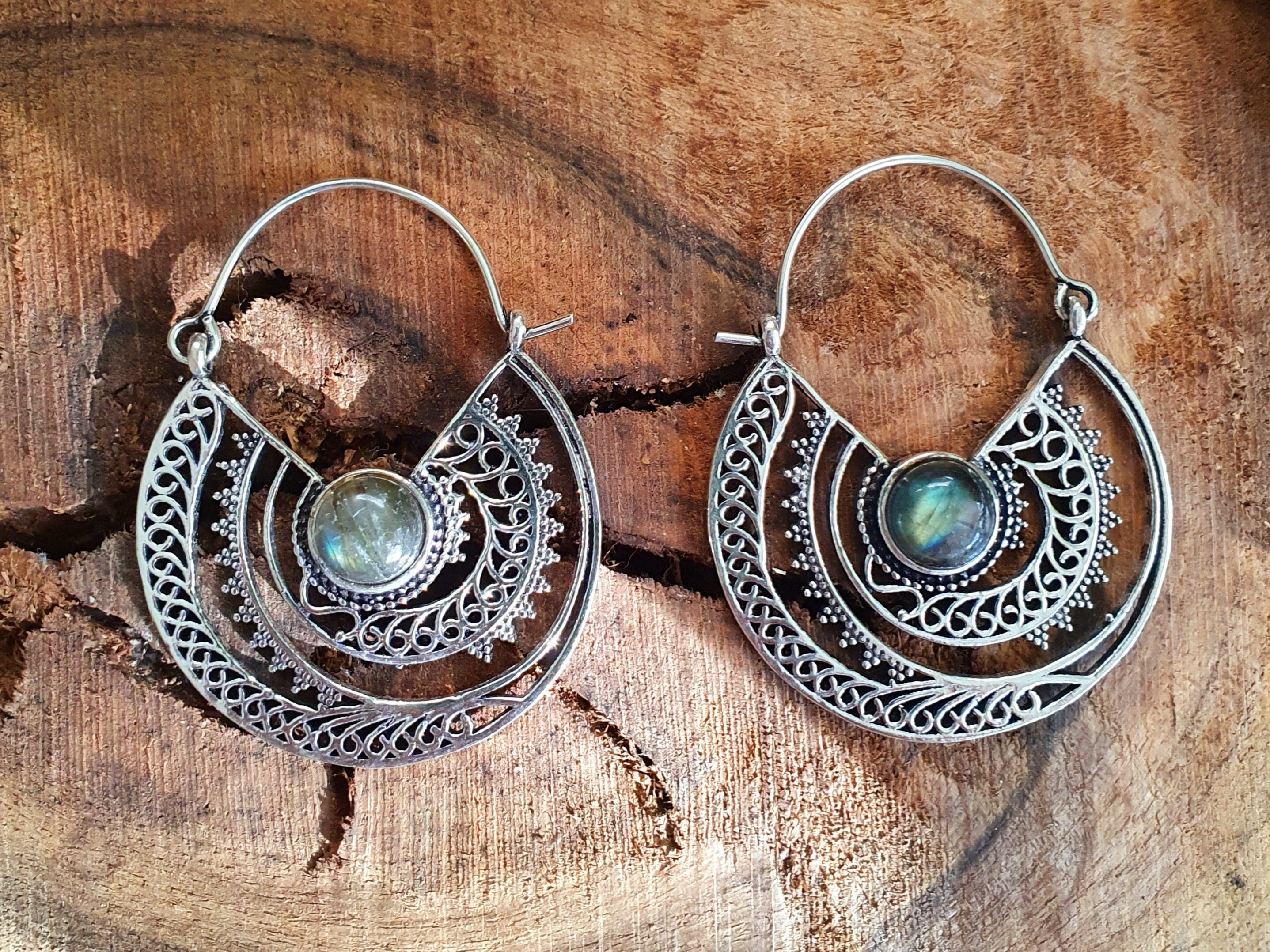 Silver Ethnic Labradorite Earrings Ethnic