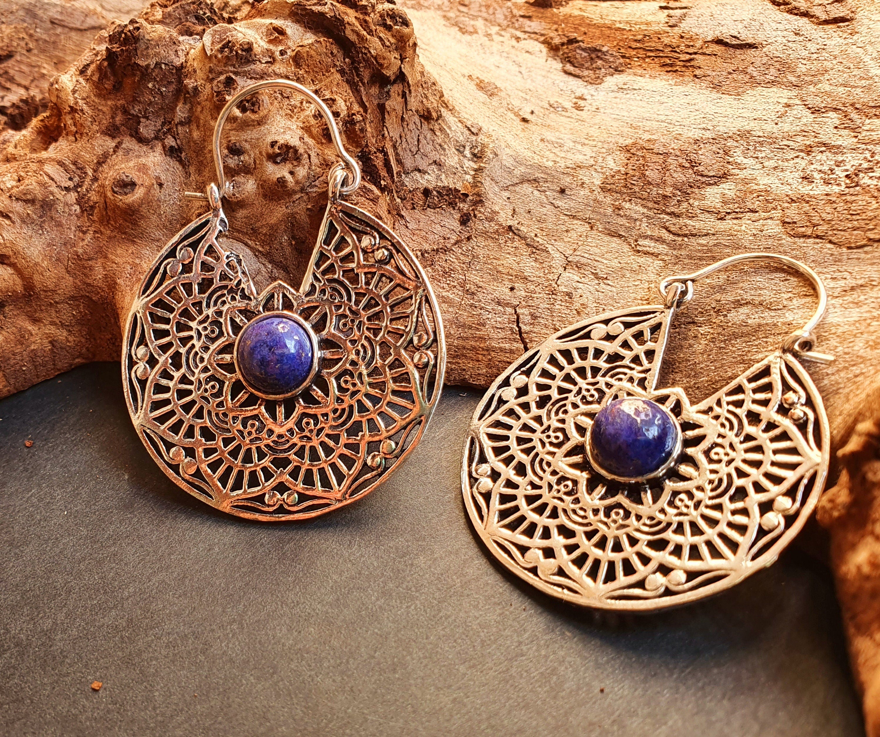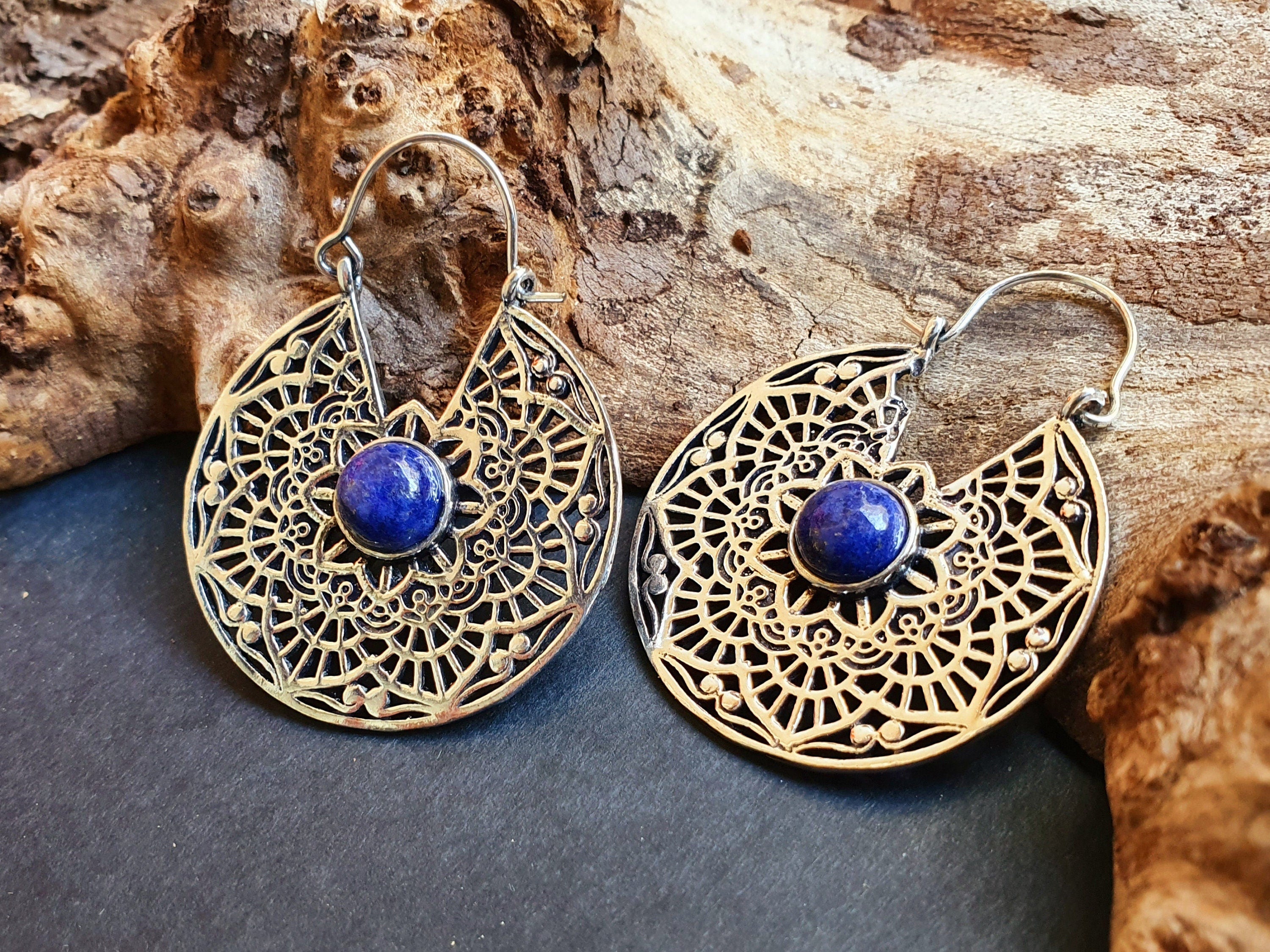 Silver Ethnic Lapis Lazuli Earrings Ethnic